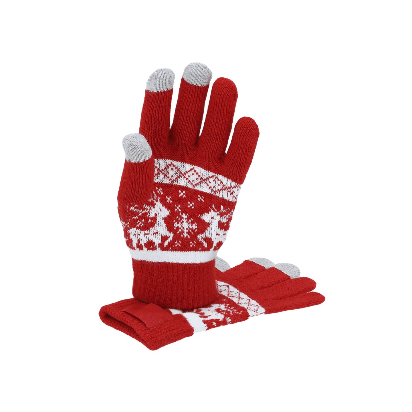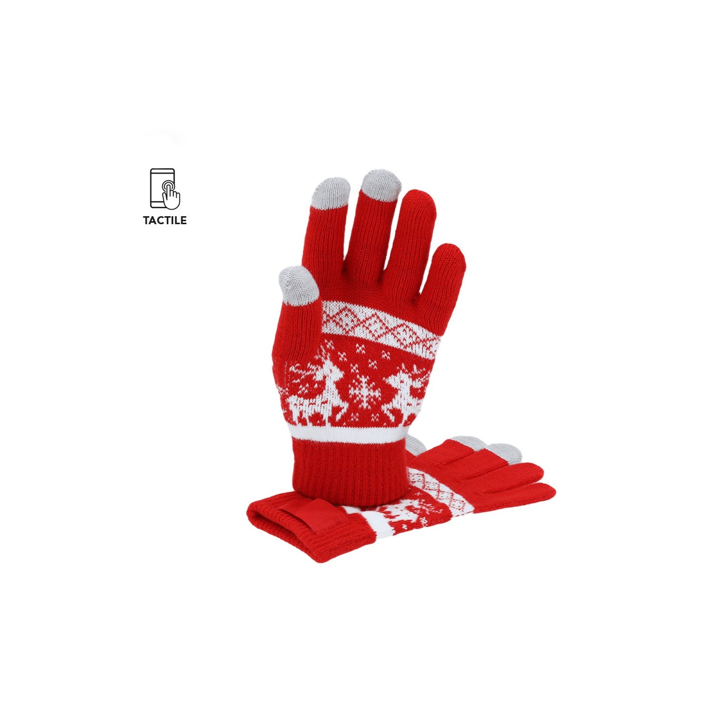 Guantes navideños en acrílico suave con función táctil en dedos. Incluyen etiqueta para personalizar con logotipo. Perfectos para mantener el estilo en Navidad.