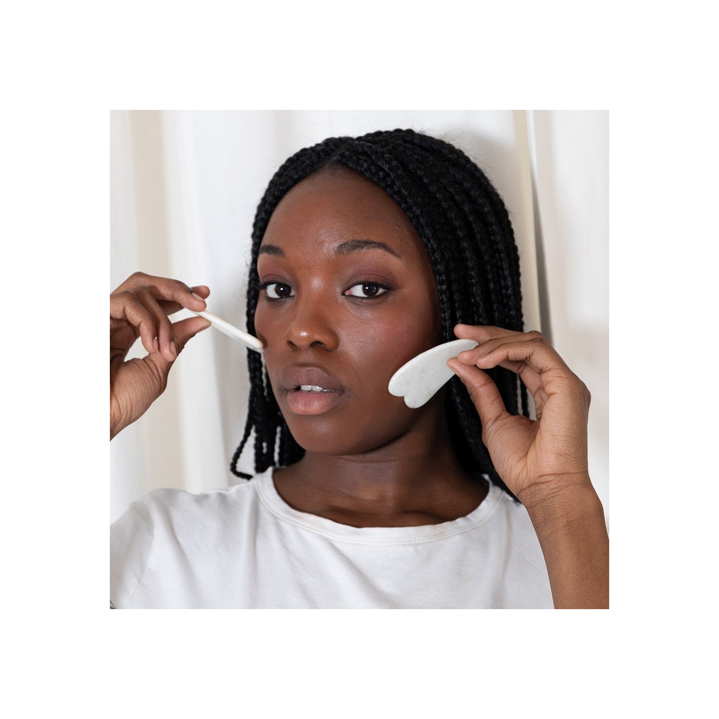 El guasha facial es conocido por sus beneficios para la piel, como la mejora de la circulación sanguínea, la reducción de la hinchazón y la promoción de un cutis más radiante y saludable.