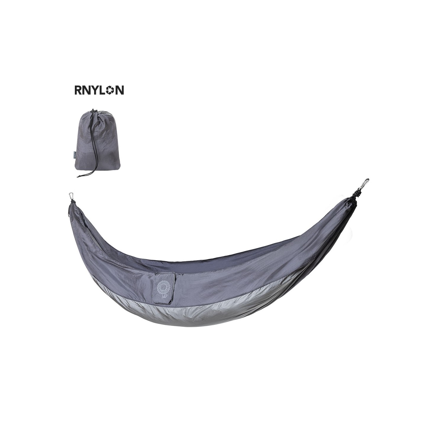 La Hamaca Camping es de nylon reciclado de 270x140cm, resistente y cómoda. Soporta 200kg. Regalo sostenible y relajante para disfrutar al aire libre.