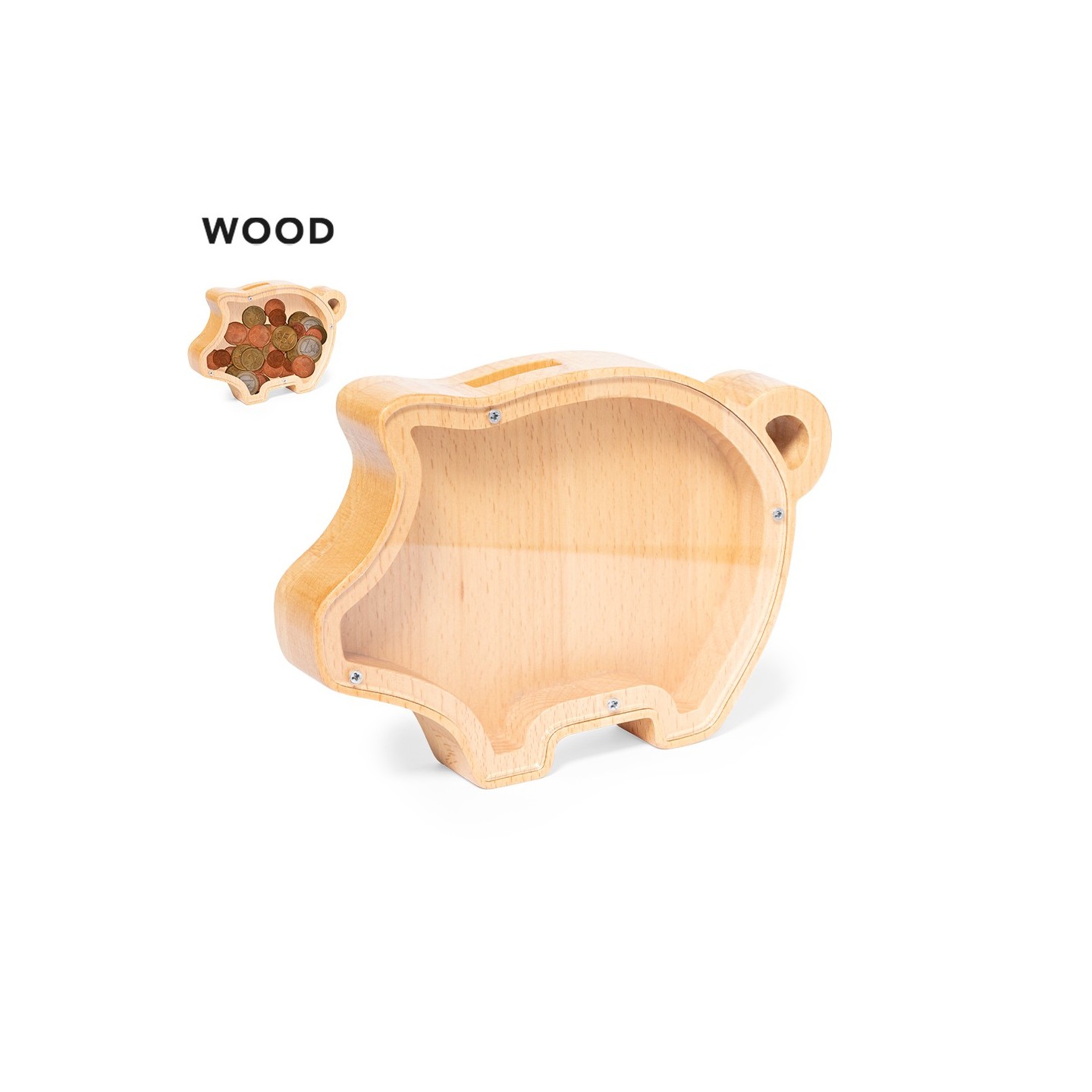 La Hucha Jasara, con forma de cerdito y ventana de metacrilato, combina diseño y funcionalidad para hacer del ahorro una experiencia alegre. ¡Personalizable para tu marca!