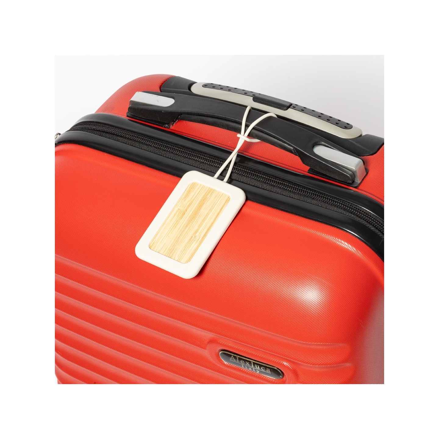 Gracias a su cinta flexible, el Identificador Maletas Holda se adapta fácilmente a cualquier maleta, proporcionando una forma segura de identificar tu equipaje durante tus viajes. Además, cuenta con una placa central en bambú, que le confiere un toque de elegancia y distinción.