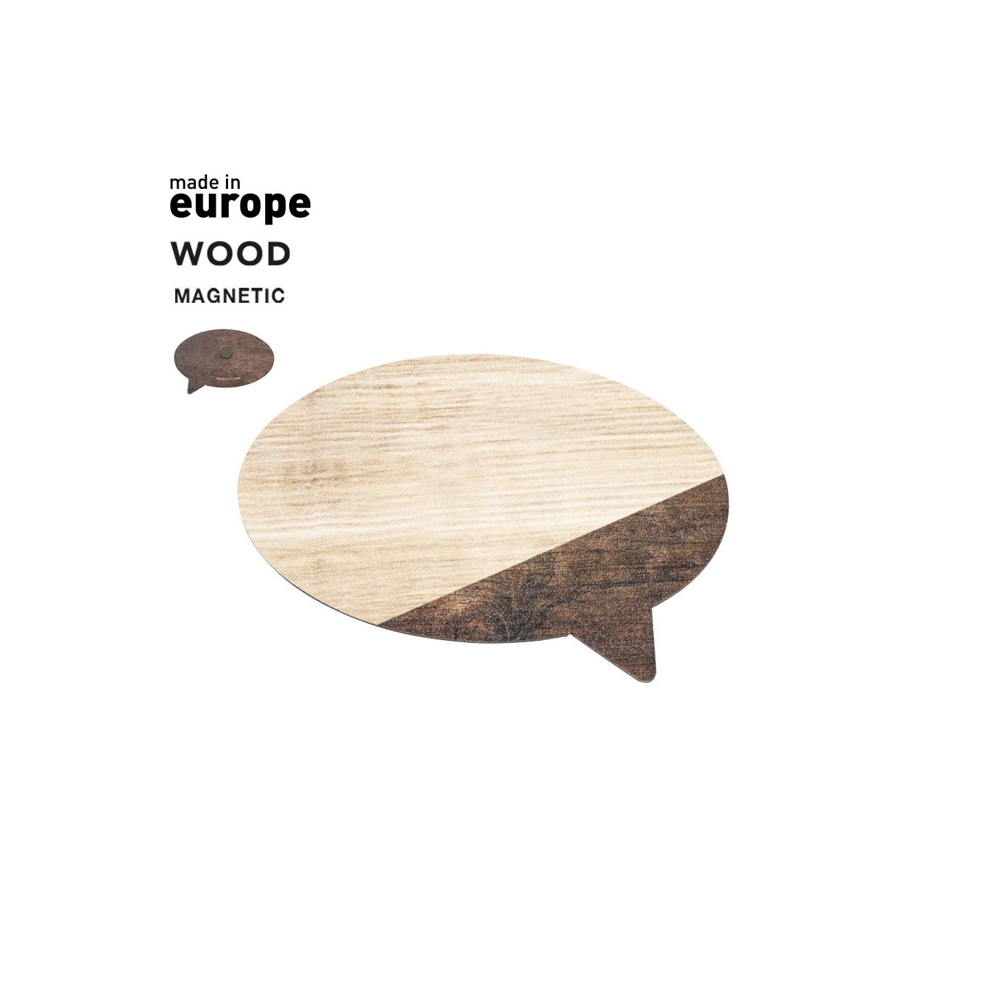 Descubre el original imán bocadillo de nuestra tienda de merchandising y regalos personalizados para empresas. Este imán está fabricado en madera natural con un atractivo acabado bicolor. Su amplia superficie de marcaje te brinda la oportunidad de personalizarlo con tu logo o mensaje especial. Además, lleva el distintivo Made in Europe, asegurando su calidad y origen europeo.
