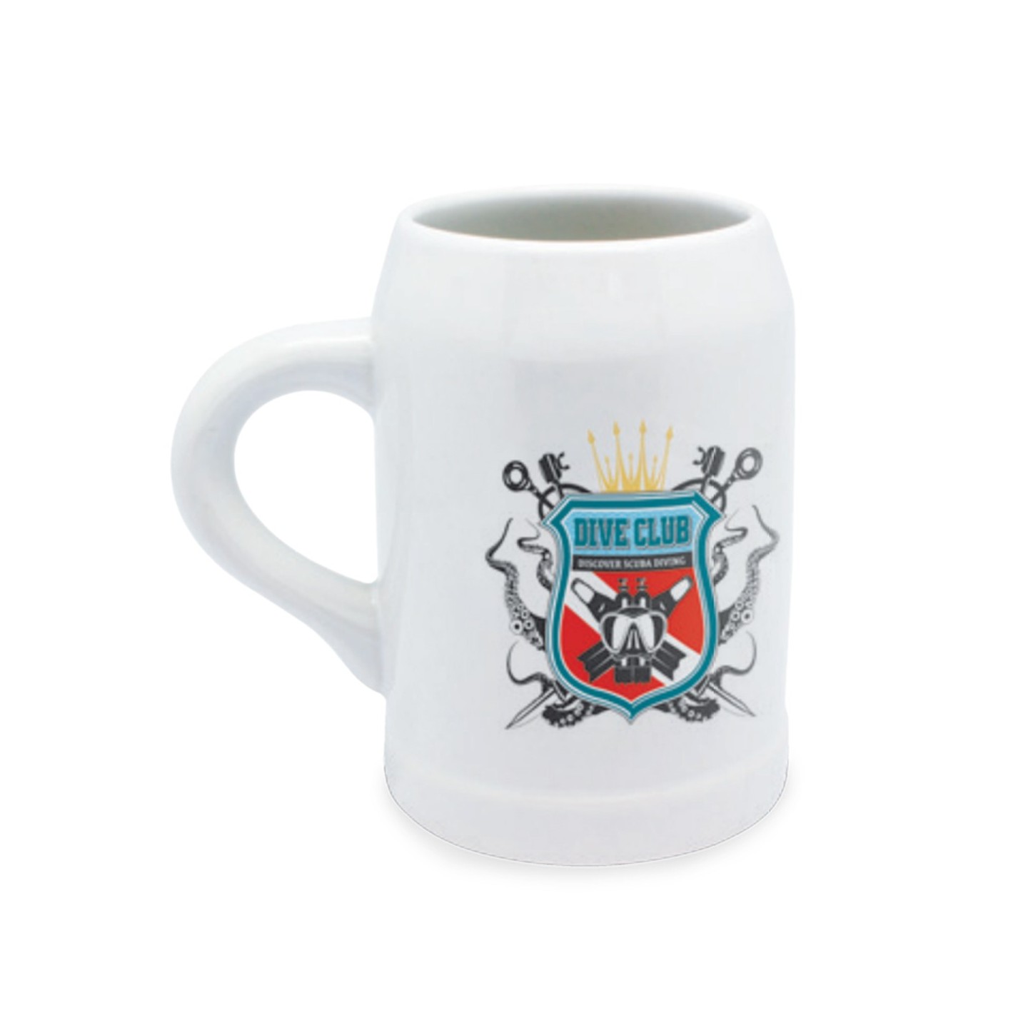 Jarra cervecera de 500 ml fabricada en cerámica, perfecta para sublimación. Personalizable con logotipo. Se vende en múltiplos de 20 unidades