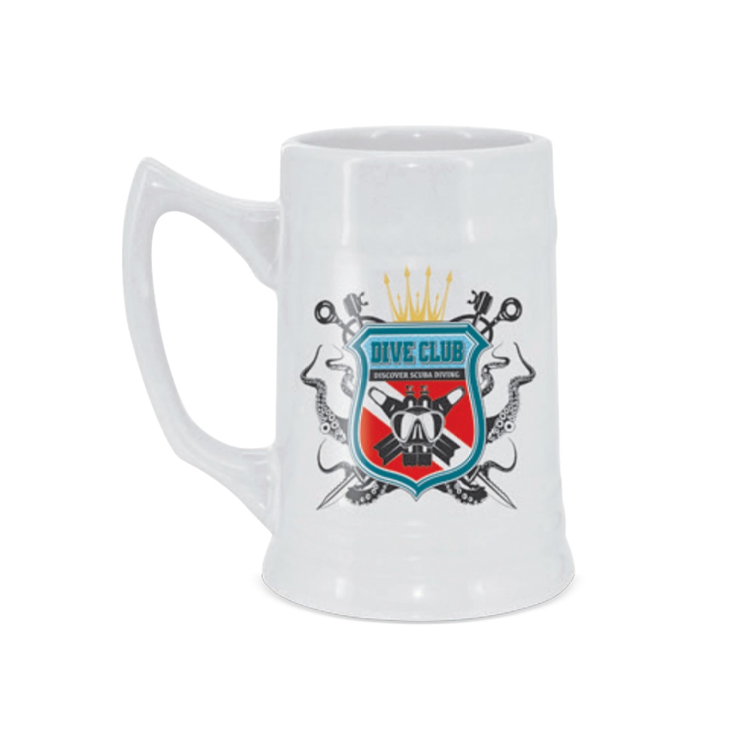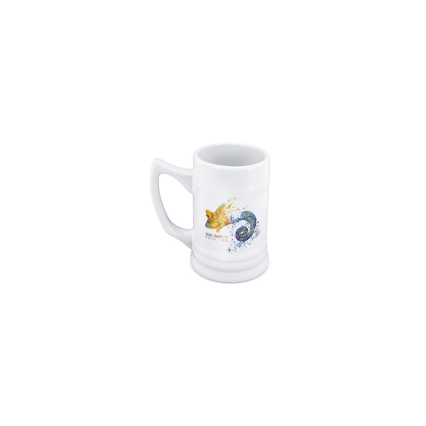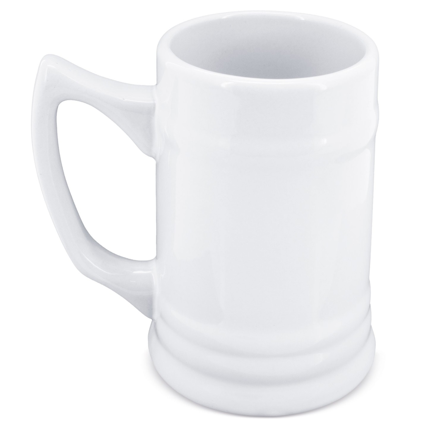 Jarra cerveza 575 ml en cerámica blanca, perfecta para sublimación. Personalizable con logotipo