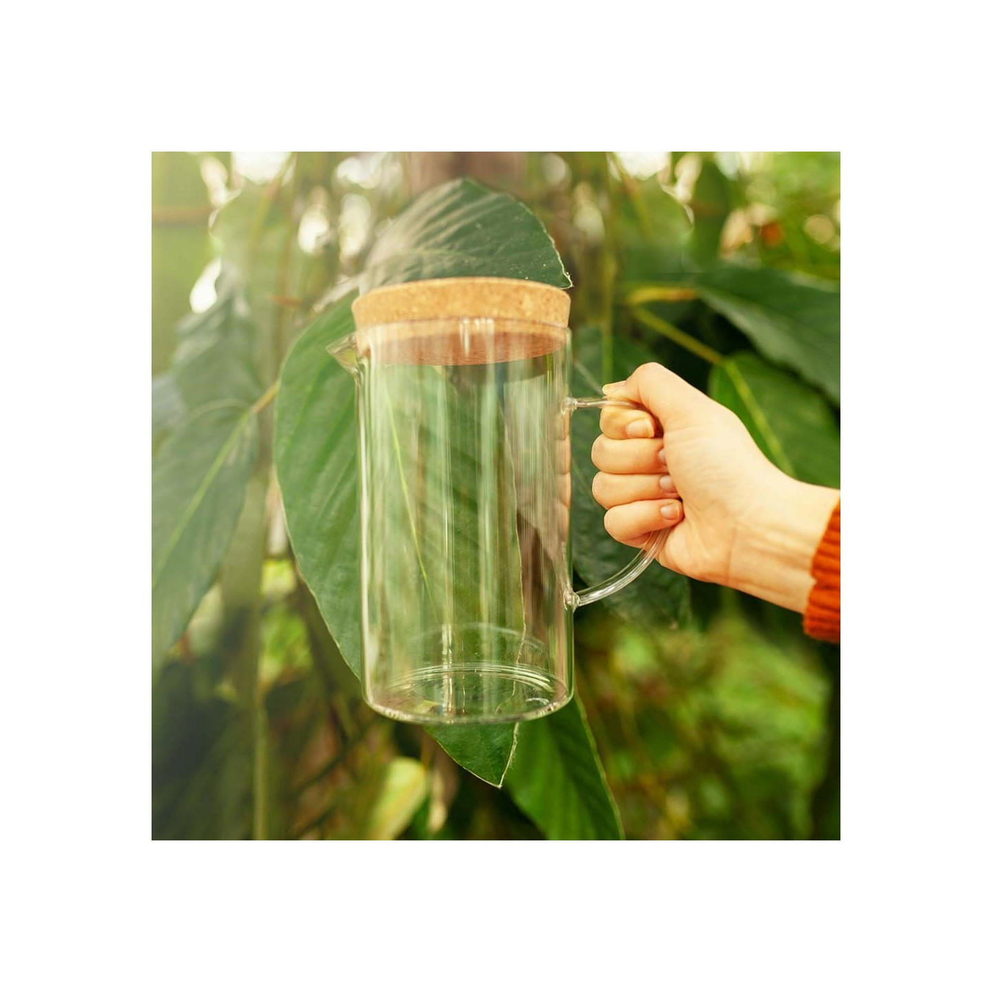 La Jarra Essence cuenta con un tapón de corcho natural que añade un toque rústico y distintivo. Su diseño ergonómico y práctico la hace fácil de manejar y verter, asegurando una experiencia de uso cómoda y segura.