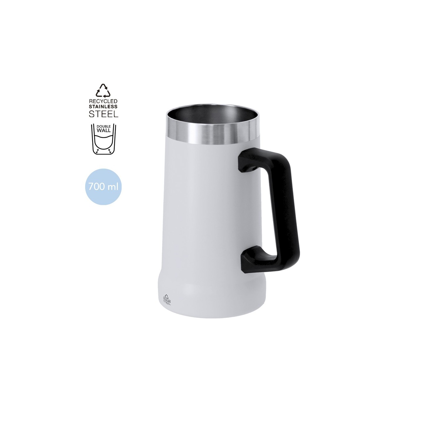 Con medidas de 17.5 cm de altura y un diámetro de 10 cm, y un peso de 350 gr, la jarra GLINOX es ideal para personalizar con tu logotipo, convirtiéndola en un regalo promocional perfecto para empresas. No solo es una opción práctica y ecológica, sino también un excelente artículo de merchandising para dar a conocer tu marca de manera responsable y atractiva.