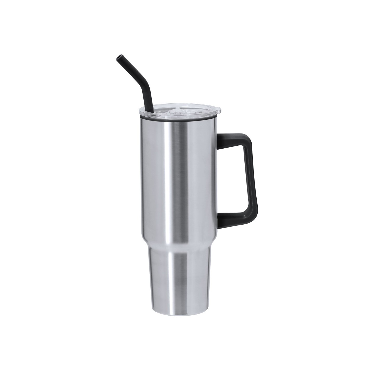 La Jarra Térmica Lansin de 1,2 L en acero inoxidable es personalizable. Con tapadera a presión, dosificador y pajita, es perfecta para disfrutar tus bebidas favoritas.