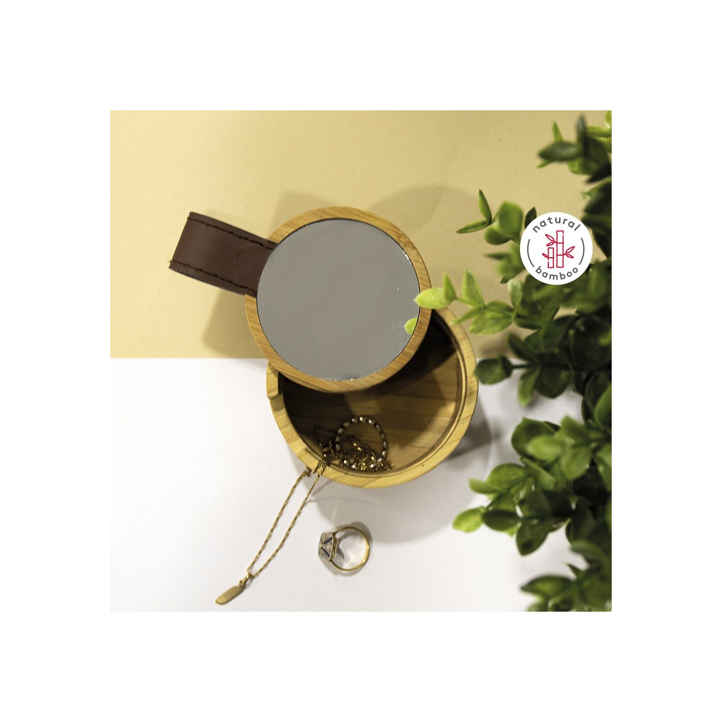 El Joyero Glare es elegante y funcional, fabricado en bambú natural con espejo interior. Organiza tus joyas con estilo y sostenibilidad