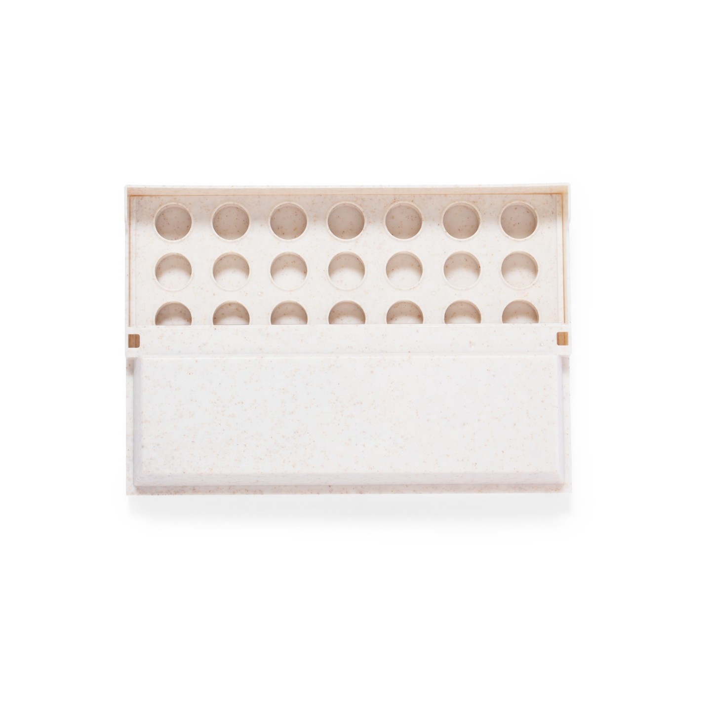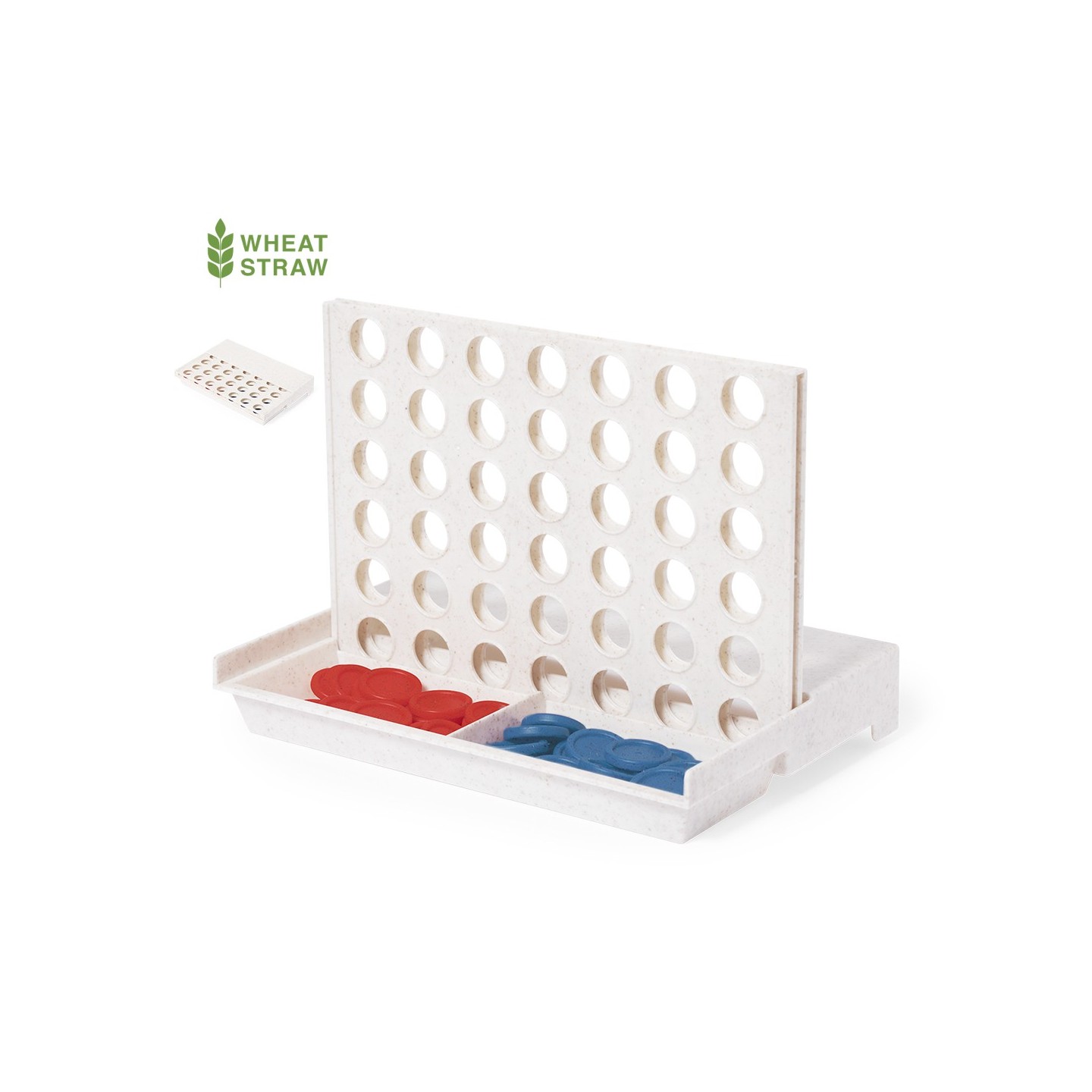 Juego Cissex personalizable, de mesa en caña de trigo con 42 piezas circulares. Diviértete logrando 4 fichas en fila. Montaje fácil y presentado en caja kraft.