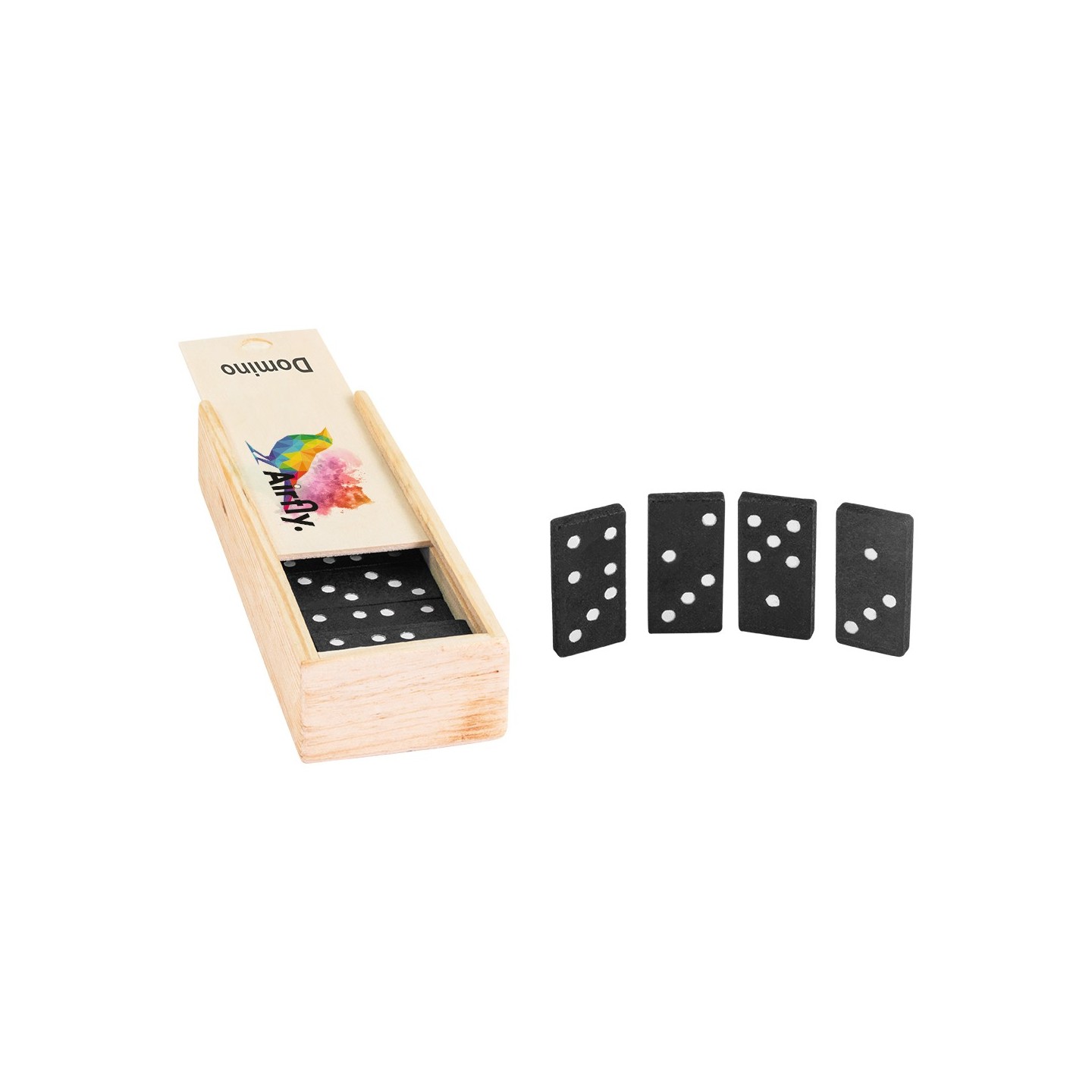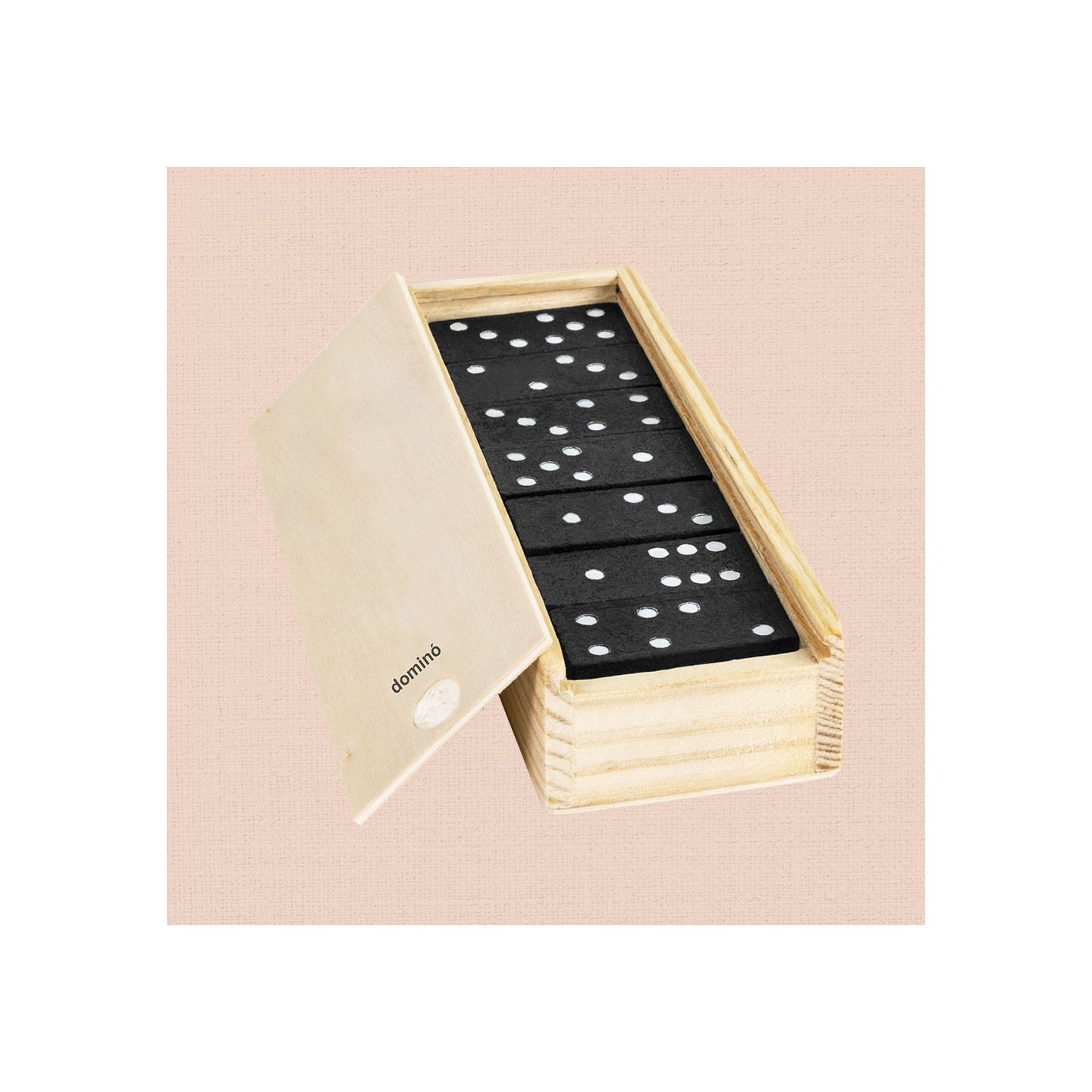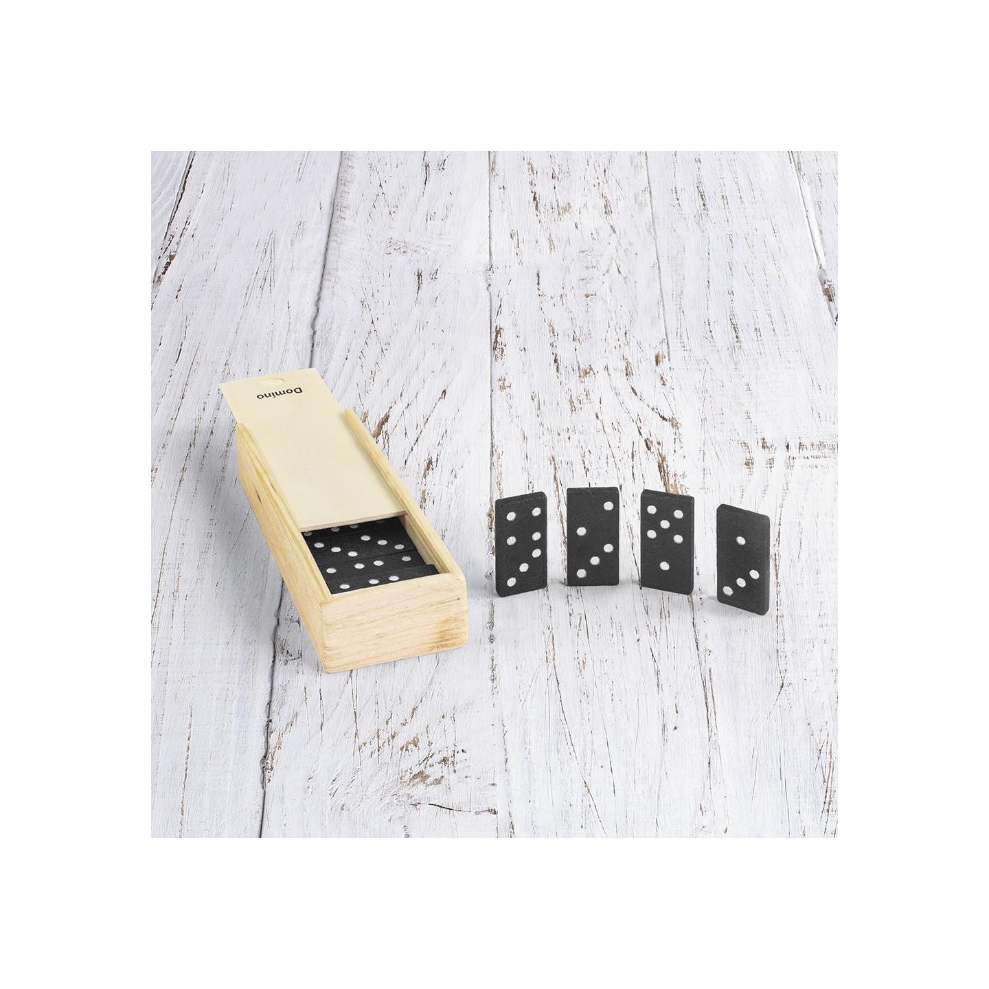 Juego de Dominó con 28 piezas de madera natural en un set clásico. Tradición y entretenimiento en una elegante caja para regalos corporativos.