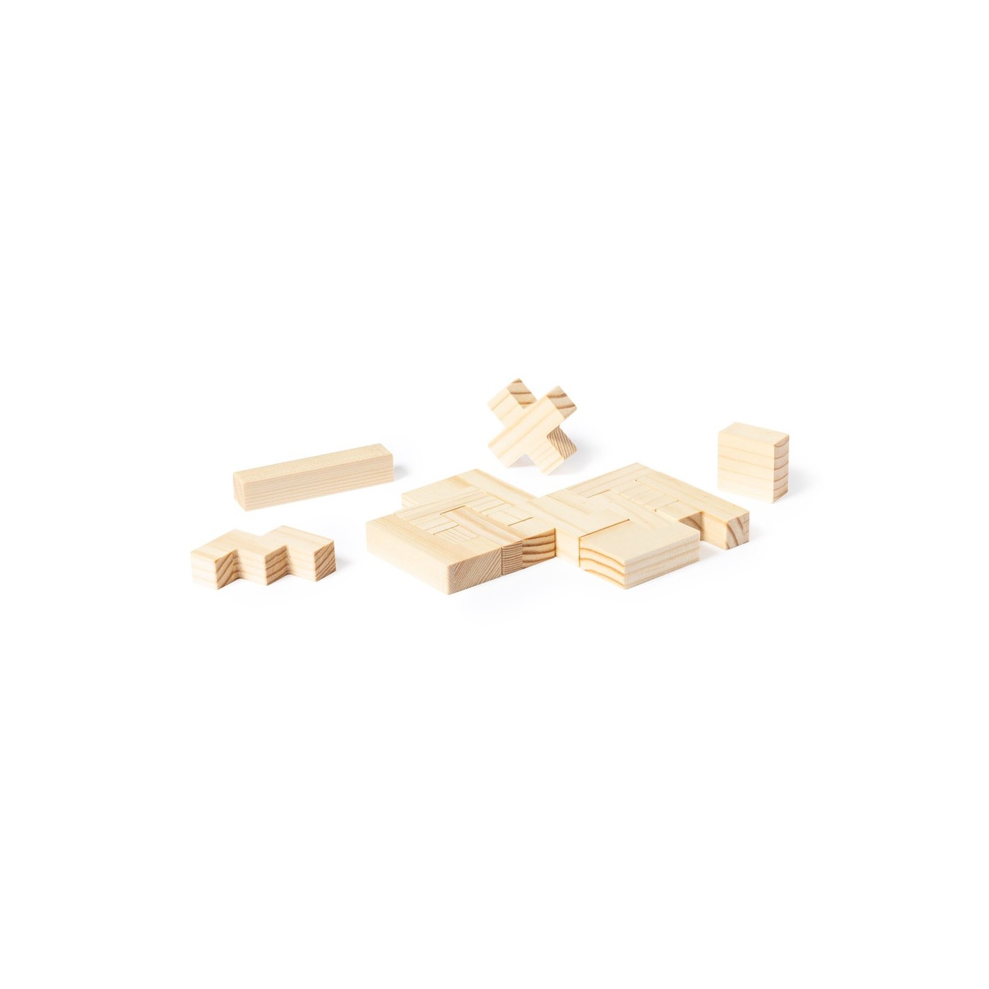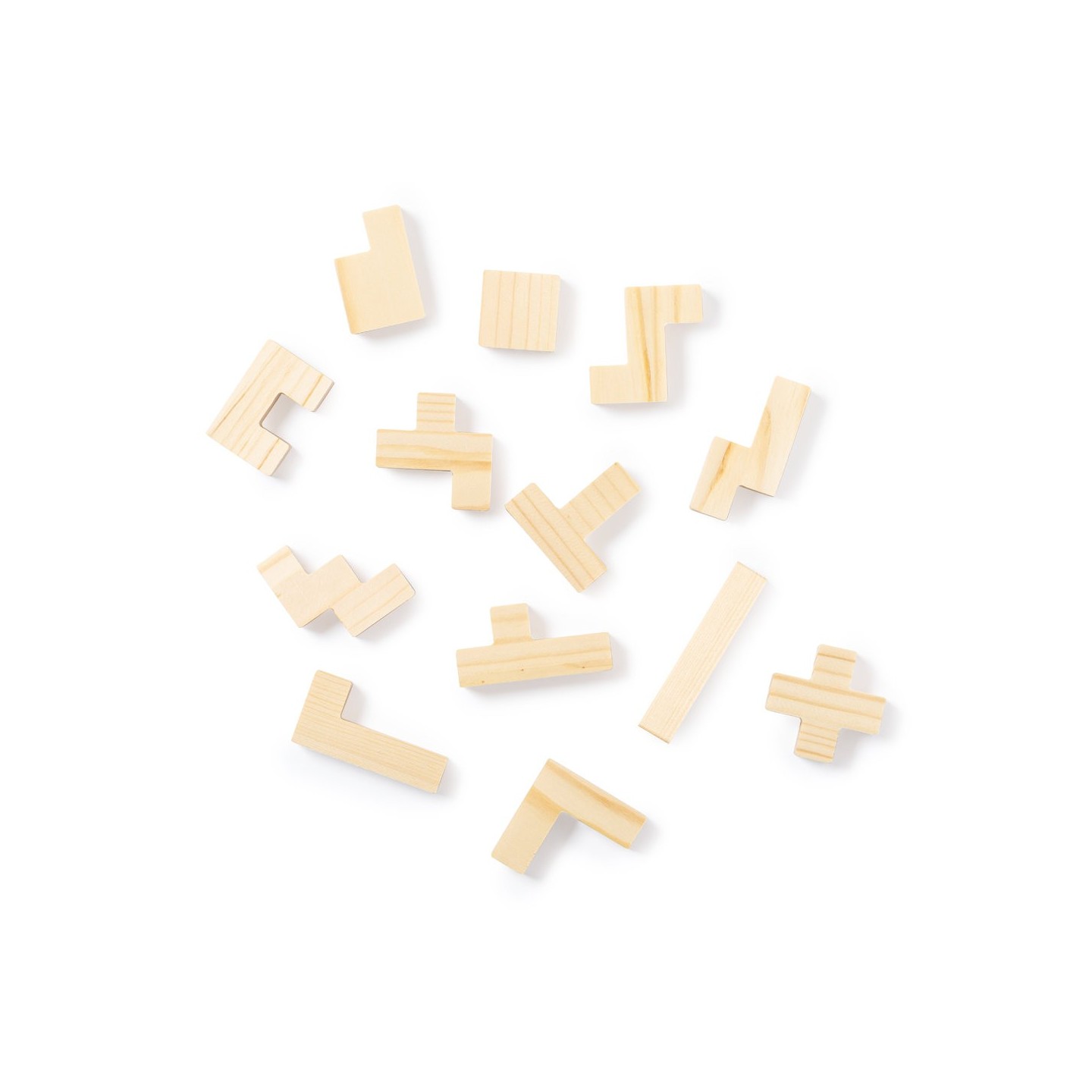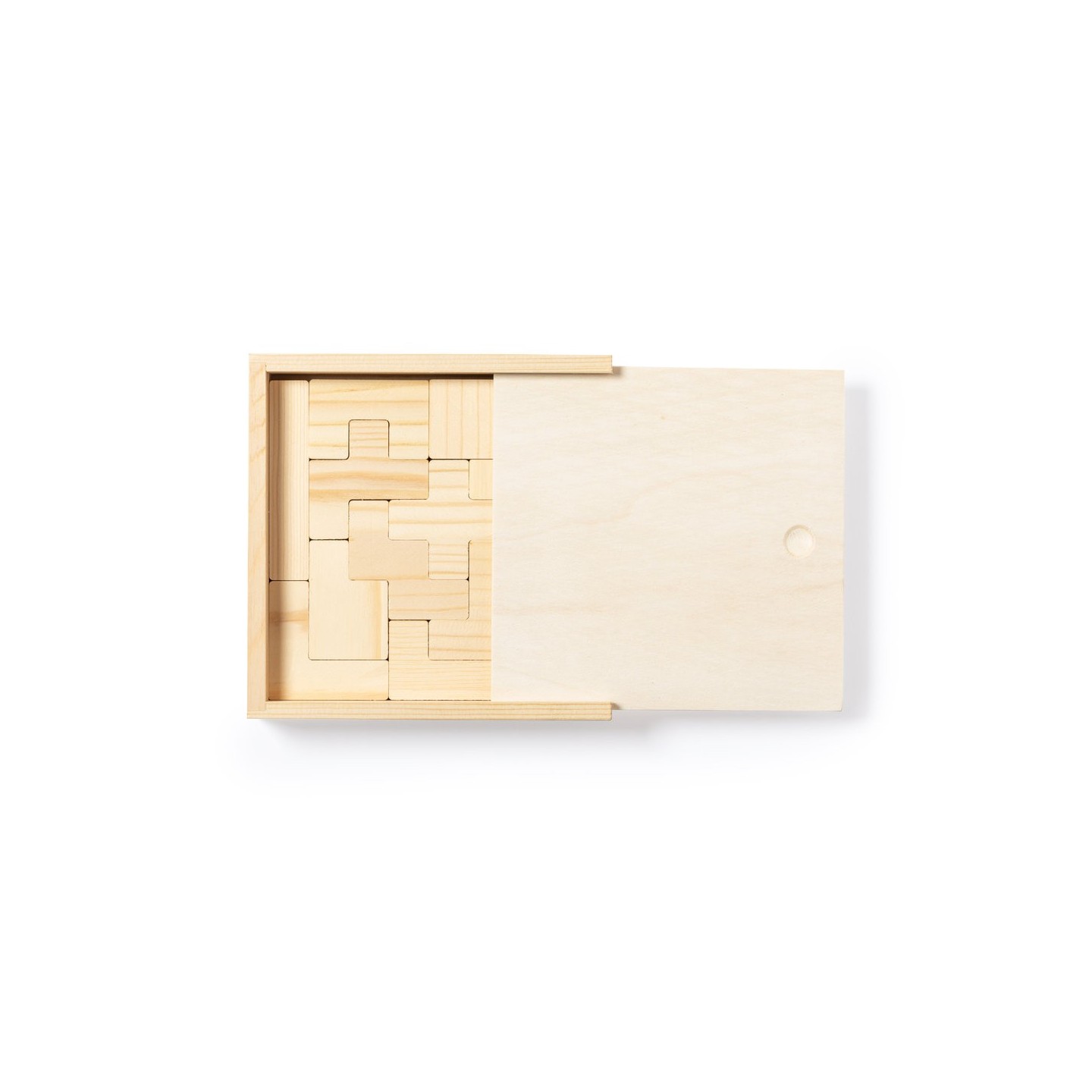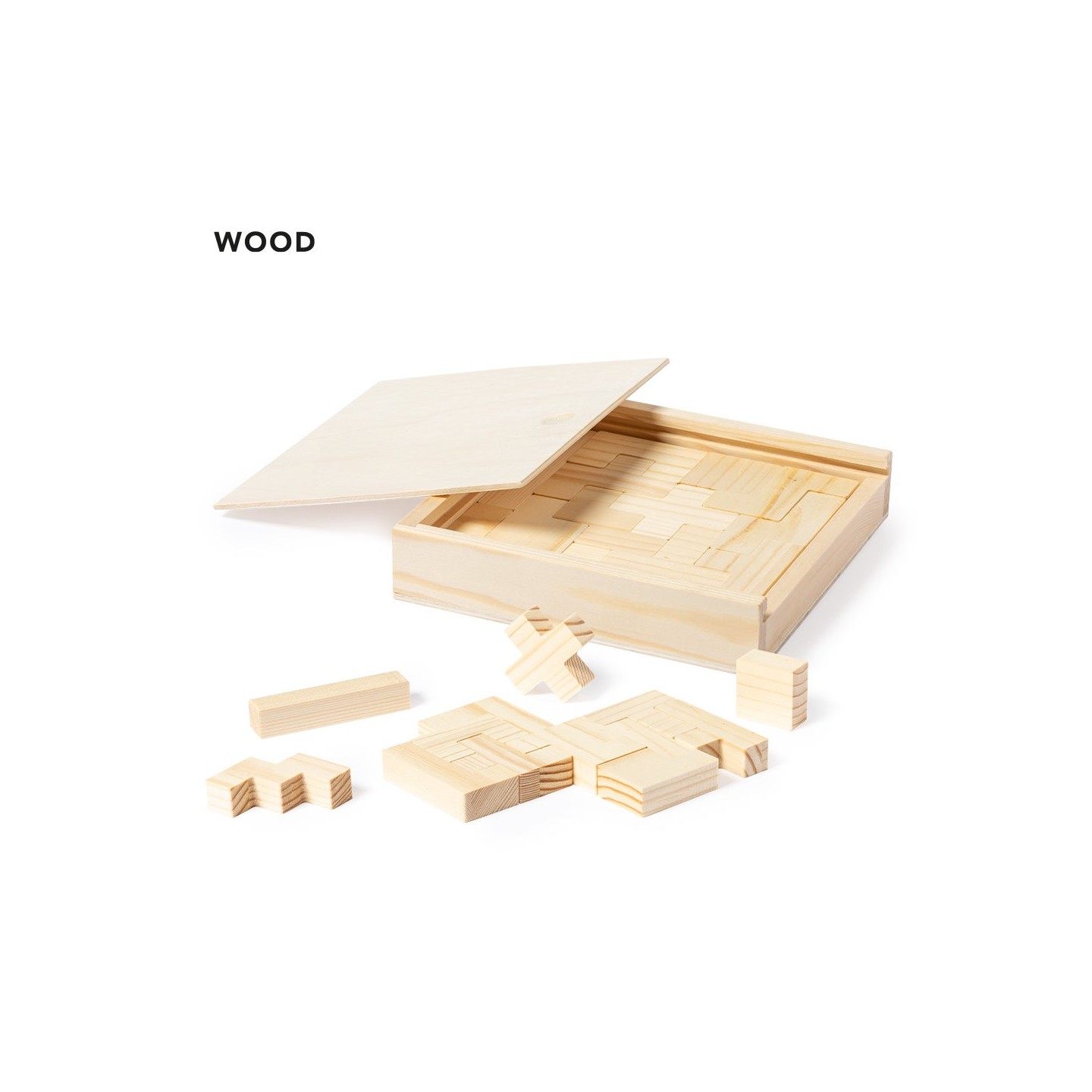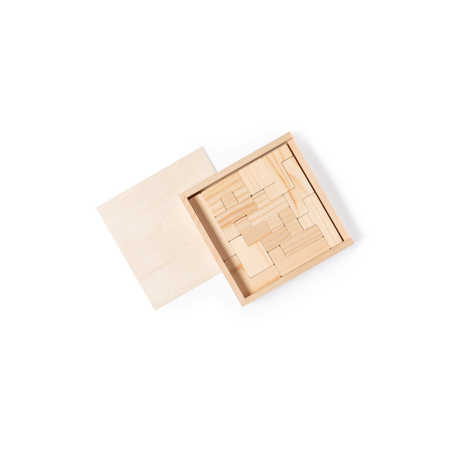 Juego de habilidad fabricado en resistente madera. Con 13 piezas en caja de madera con tapa. Presentación en caja individual de diseño kraft.