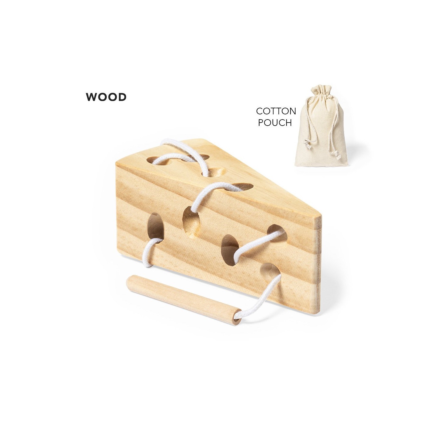 Juego de habilidad fabricado en resistente madera de pino natural y en bolsa de transporte 100% algodón con cordones de cierre.