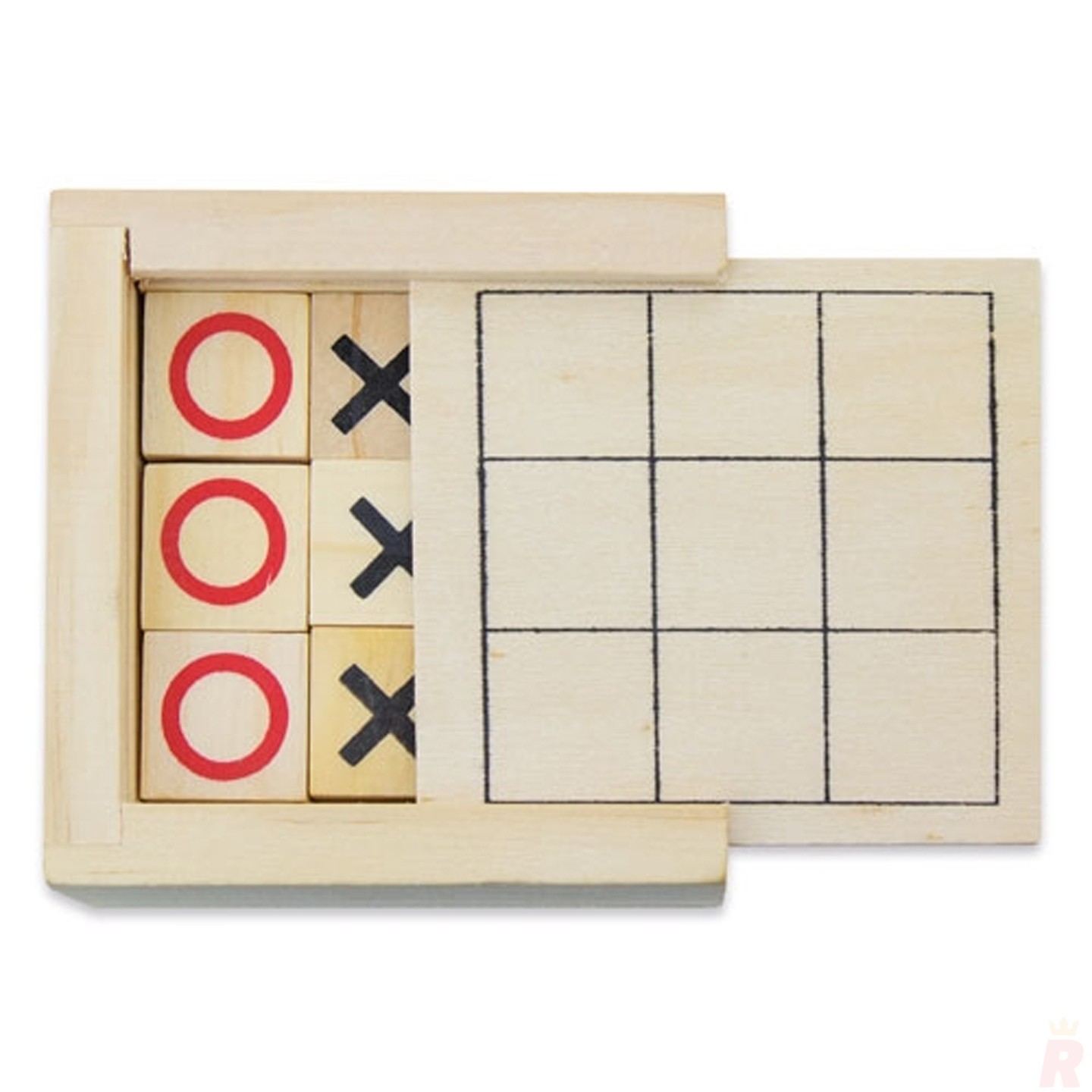 Juego clásico 3 en Raya, realizado en madera natural con diseño elegante. Estimula estrategia y decisión. Perfecto como regalo promocional personalizable con logotipo.