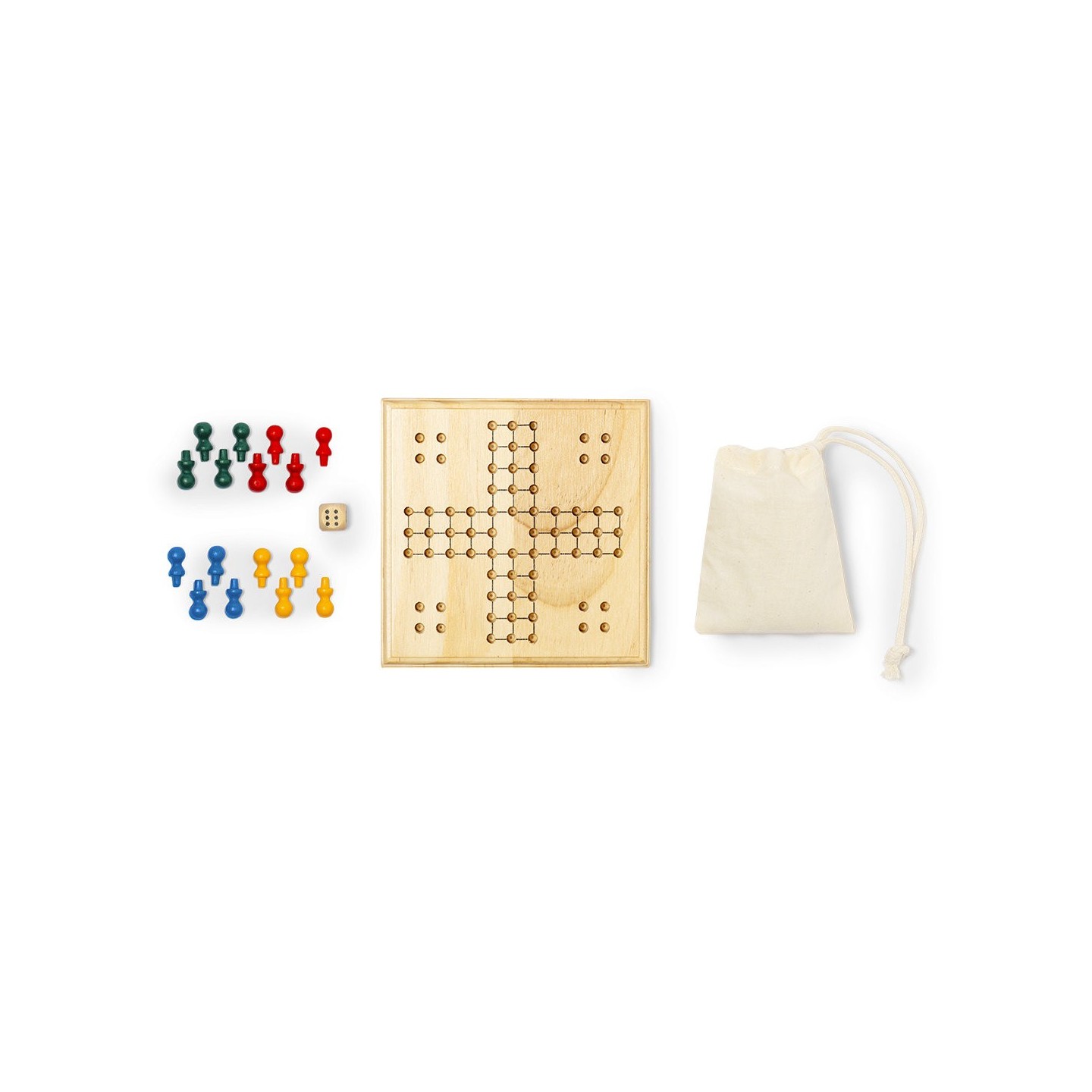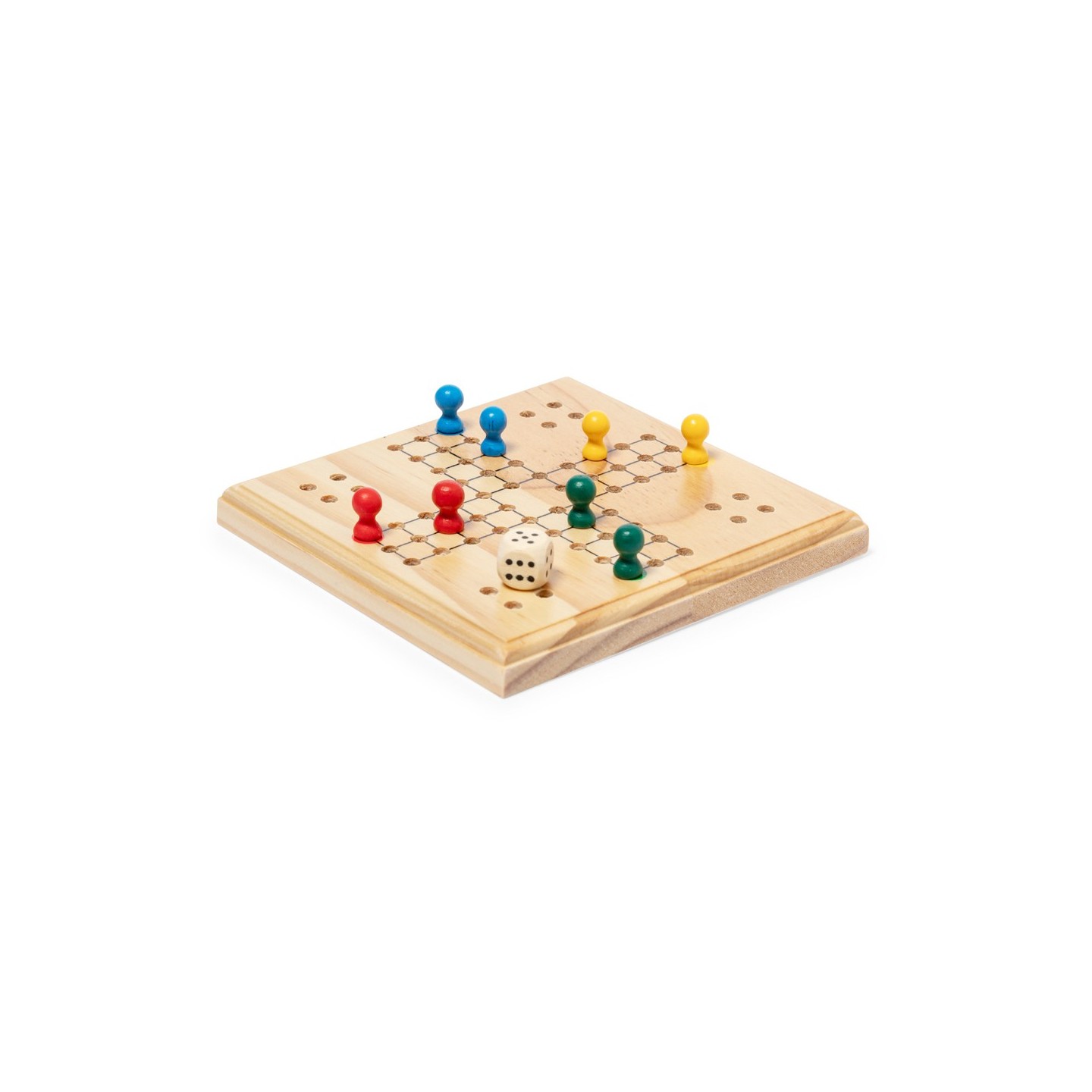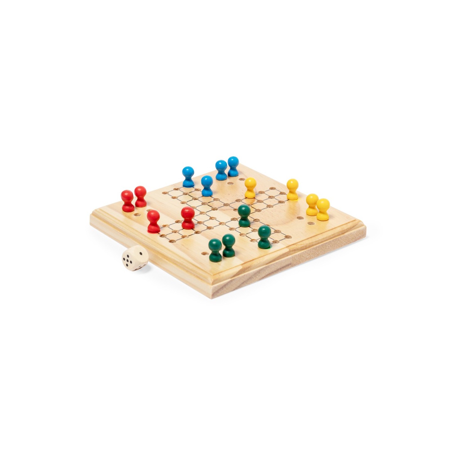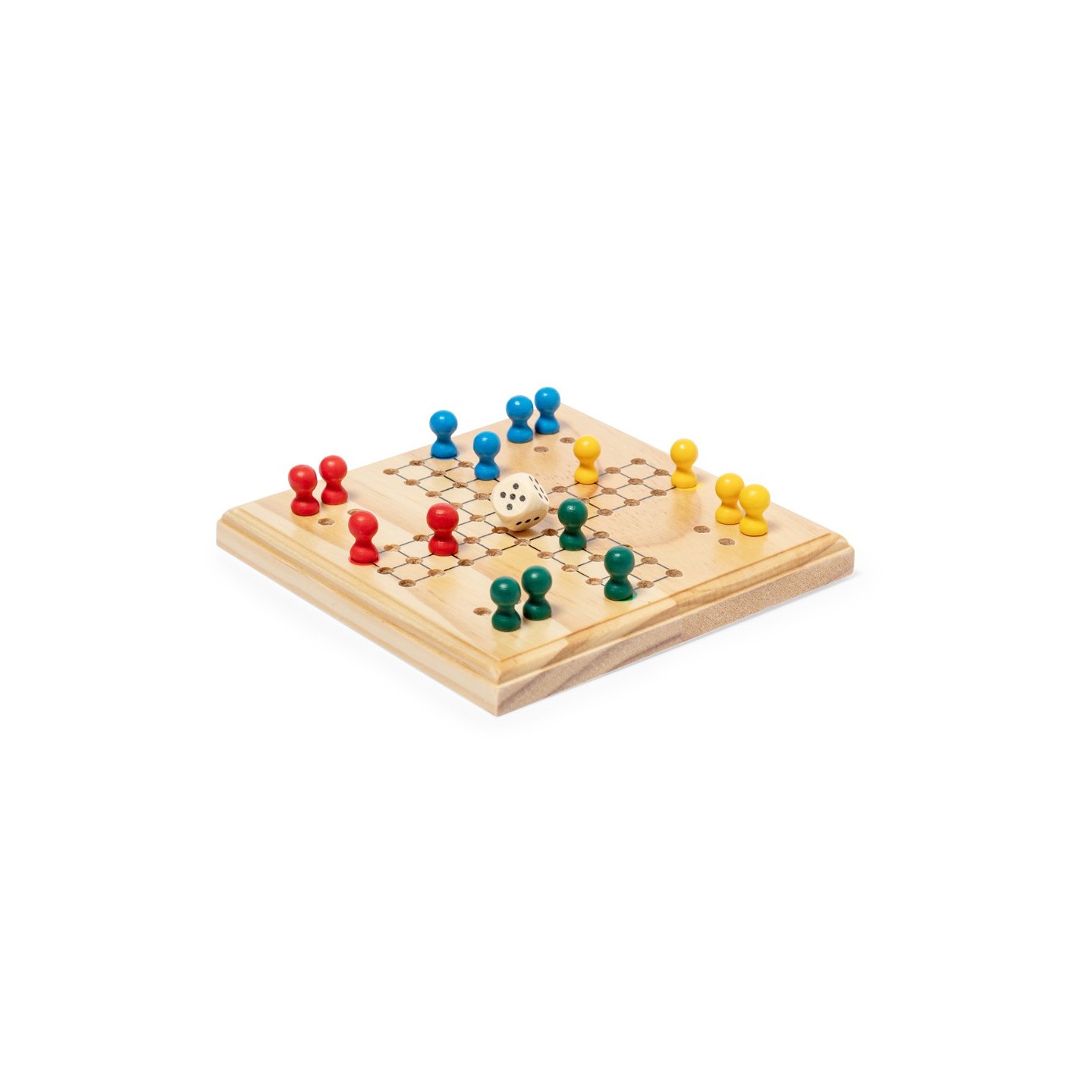 Este entretenido juego de parchís, meticulosamente fabricado en madera, es el complemento perfecto para reuniones familiares o veladas entre amigos. Con un tablero y 16 fichas de 4 colores diferentes, además de un dado, ofrece horas de diversión para entre 2 y 4 jugadores.