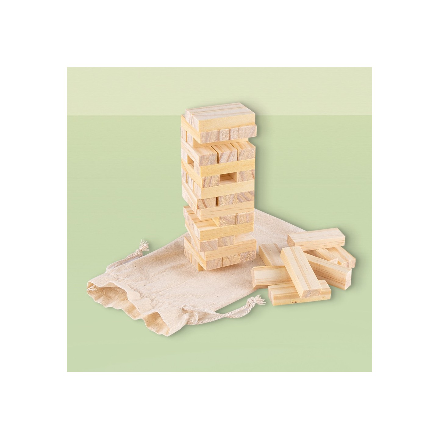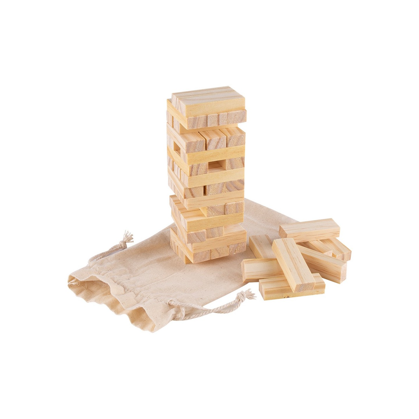 Descubre la elegancia y destreza con el Juego Torre Naxos, 45 piezas de madera en bolsa de algodón (5,5x5,5x17,5 cm). Ideal para regalos empresariales únicos.