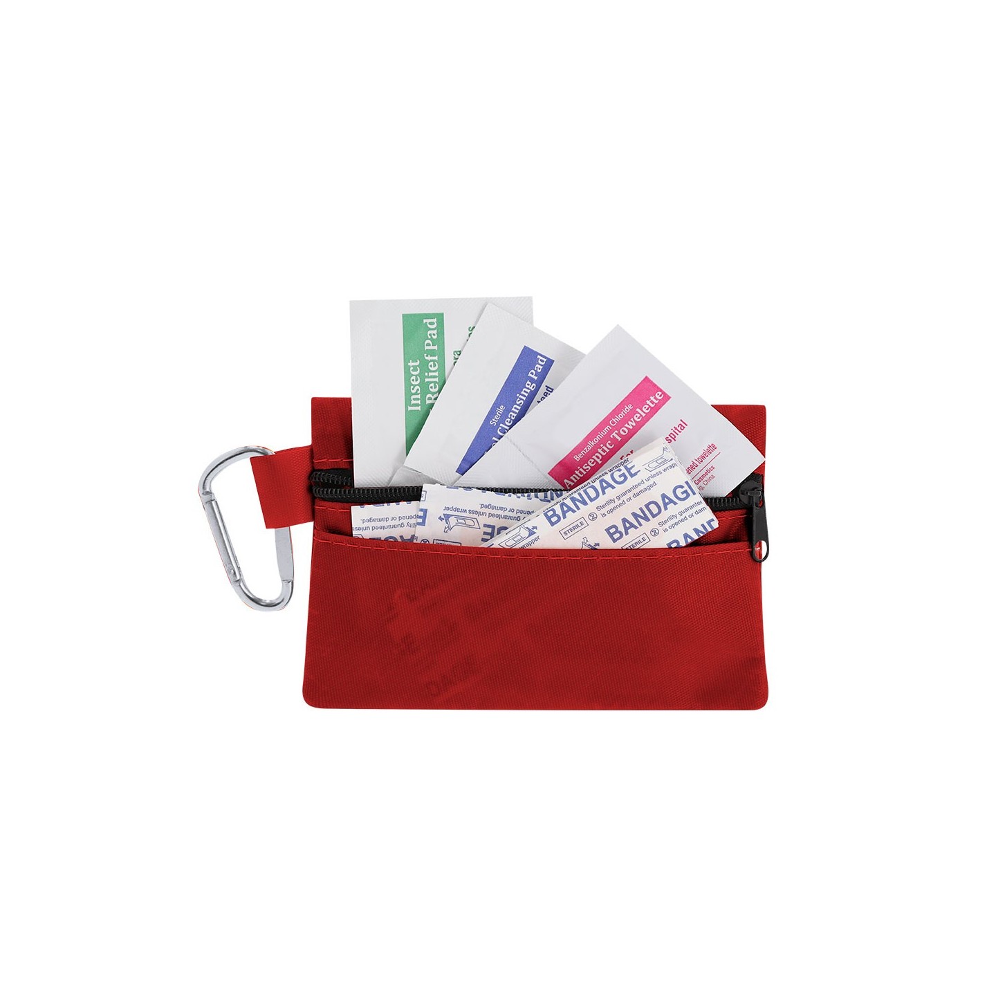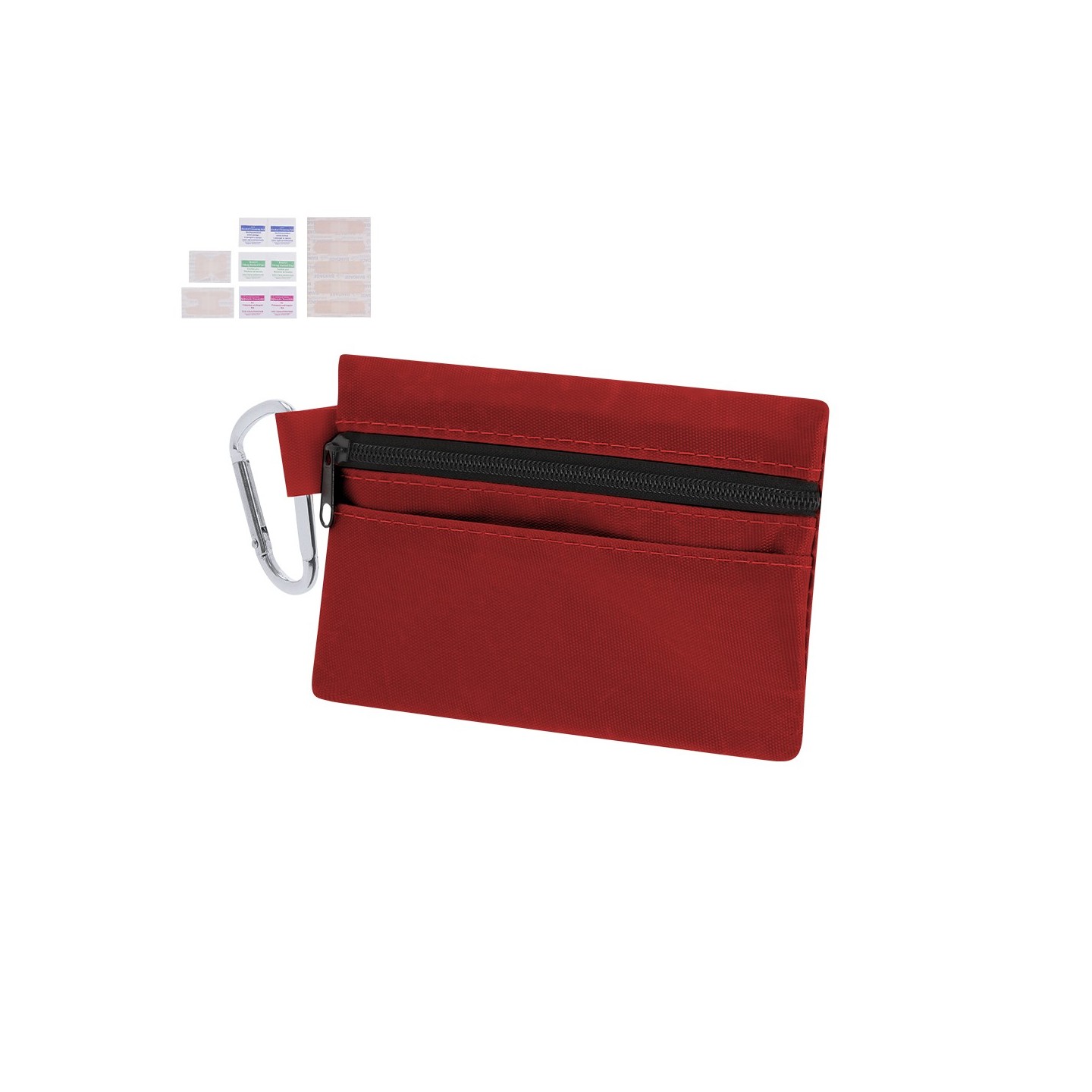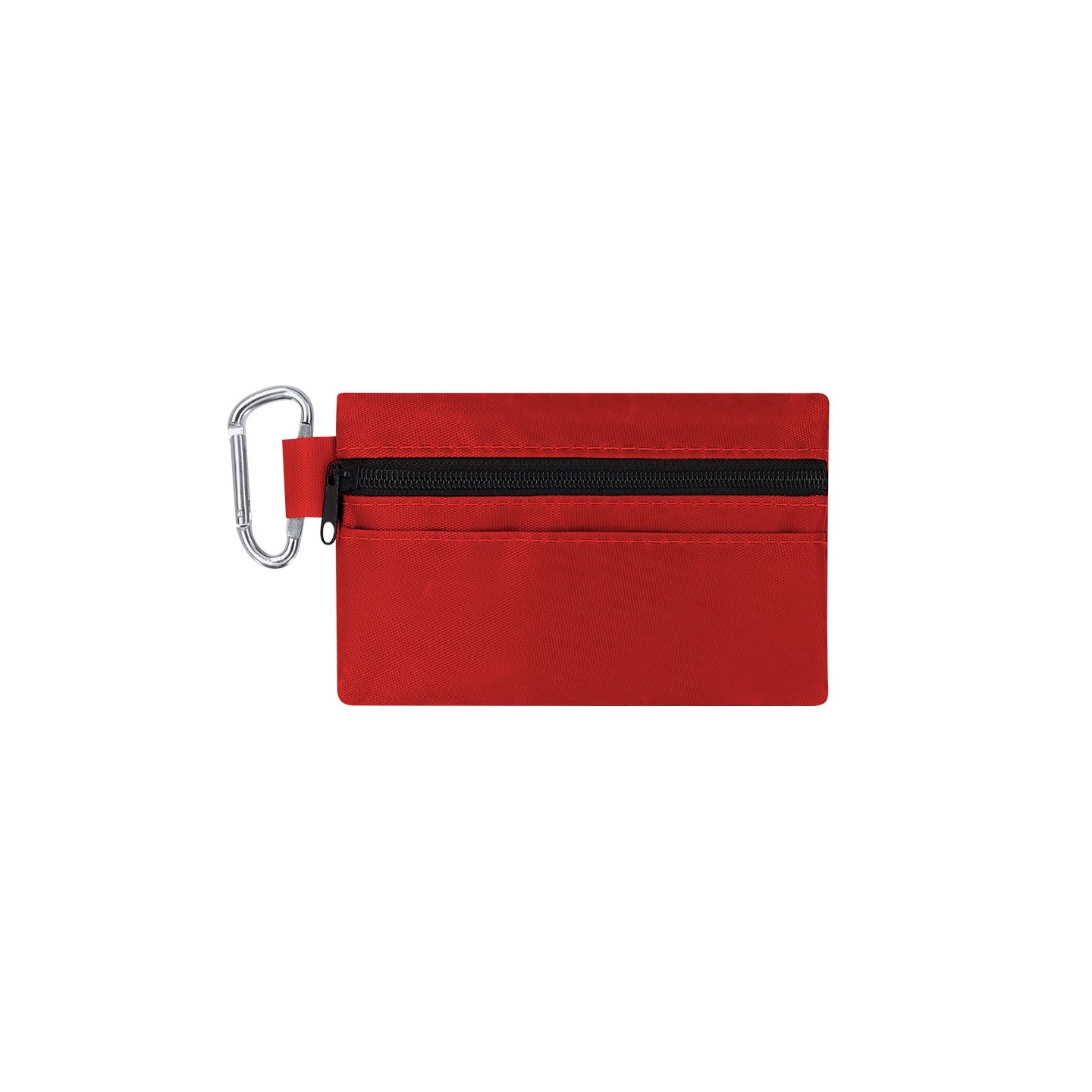 Kit Emergencia FREDEK con 14 accesorios esenciales, estuche de poliéster 600D con mosquetón y bolsillo frontal. Personalizable con tu logotipo.