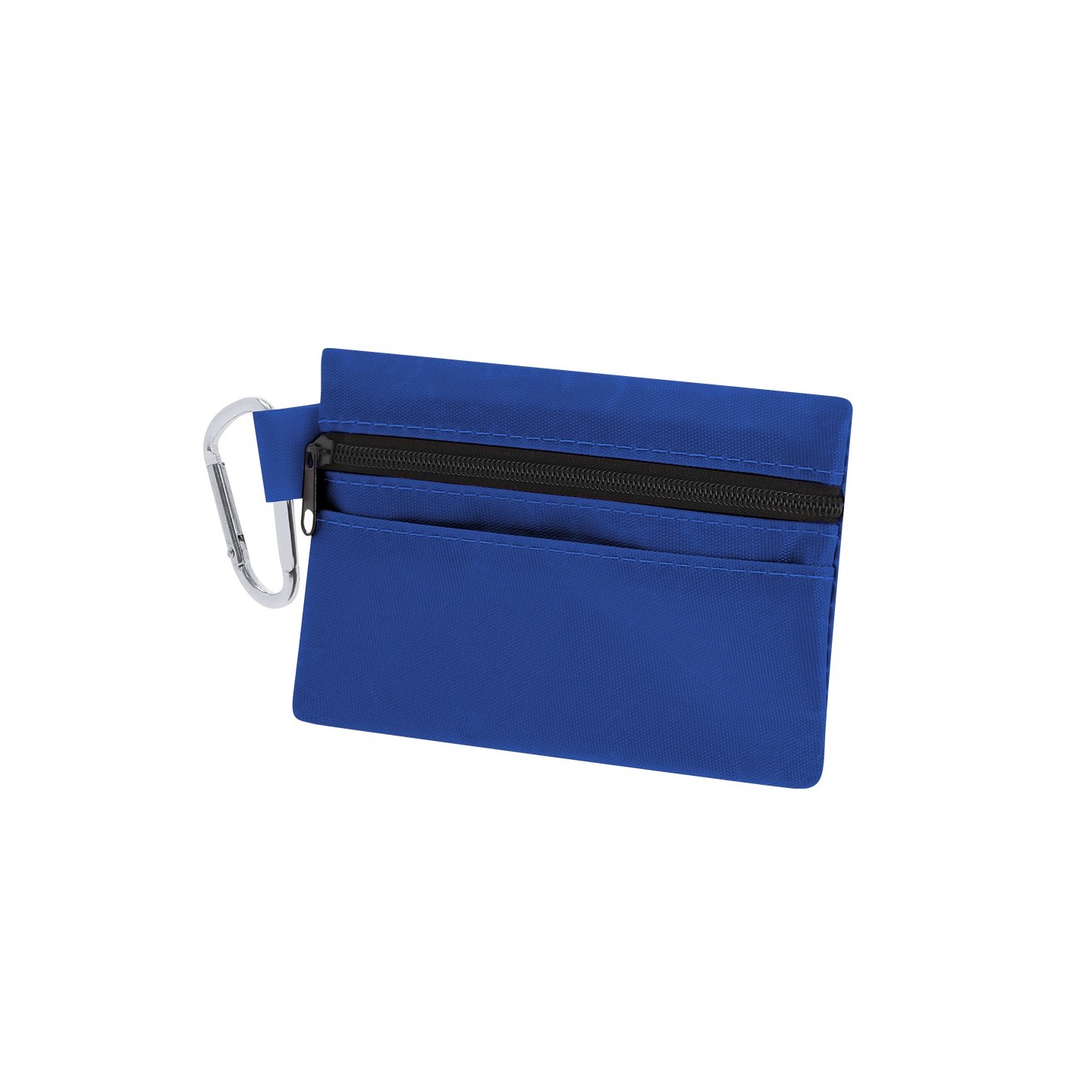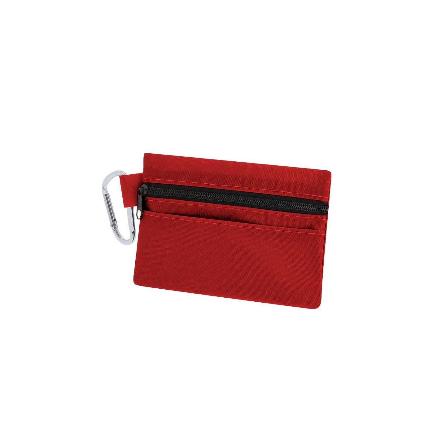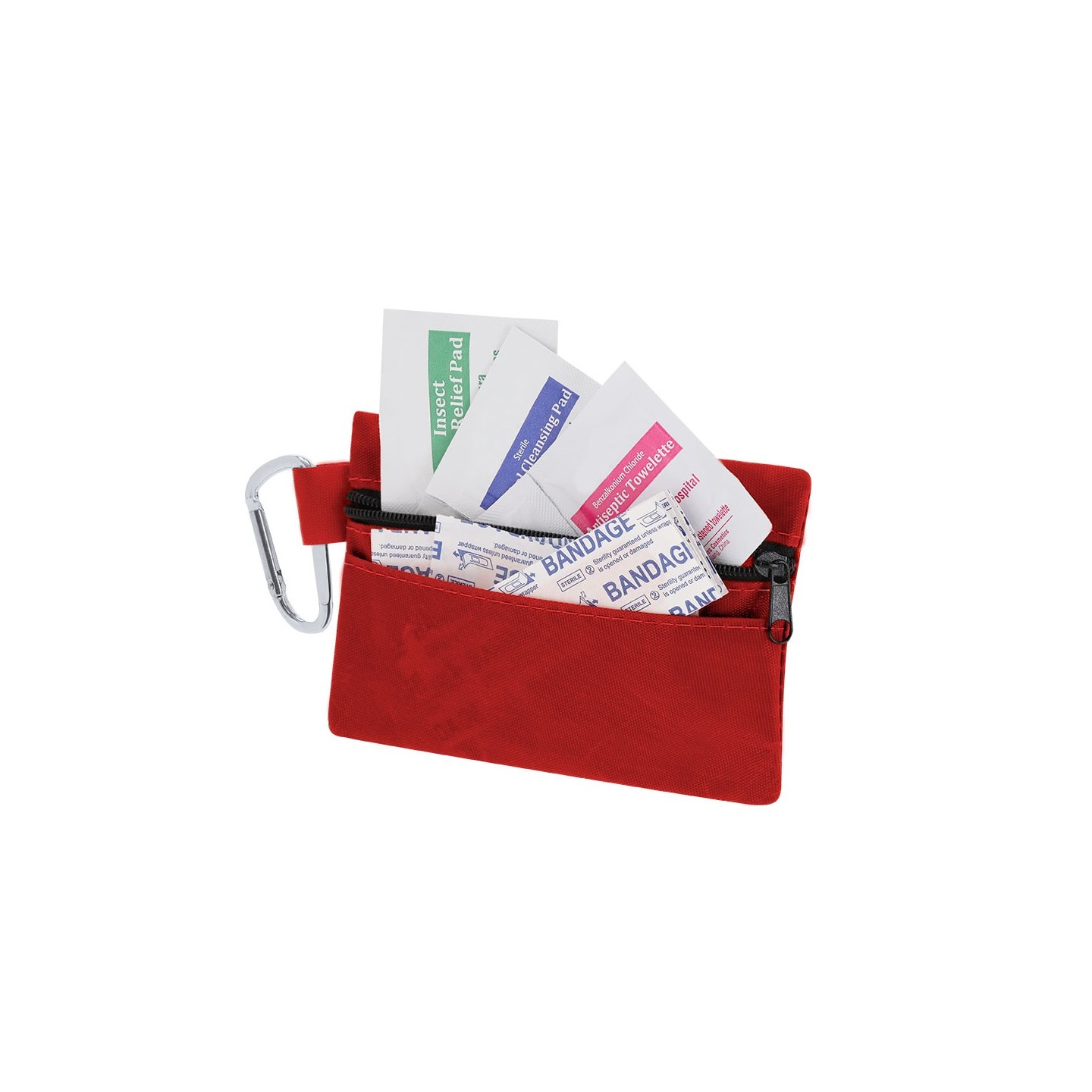 Kit Emergencia FREDEK con 14 accesorios esenciales, estuche de poliéster 600D con mosquetón y bolsillo frontal. Personalizable con tu logotipo.