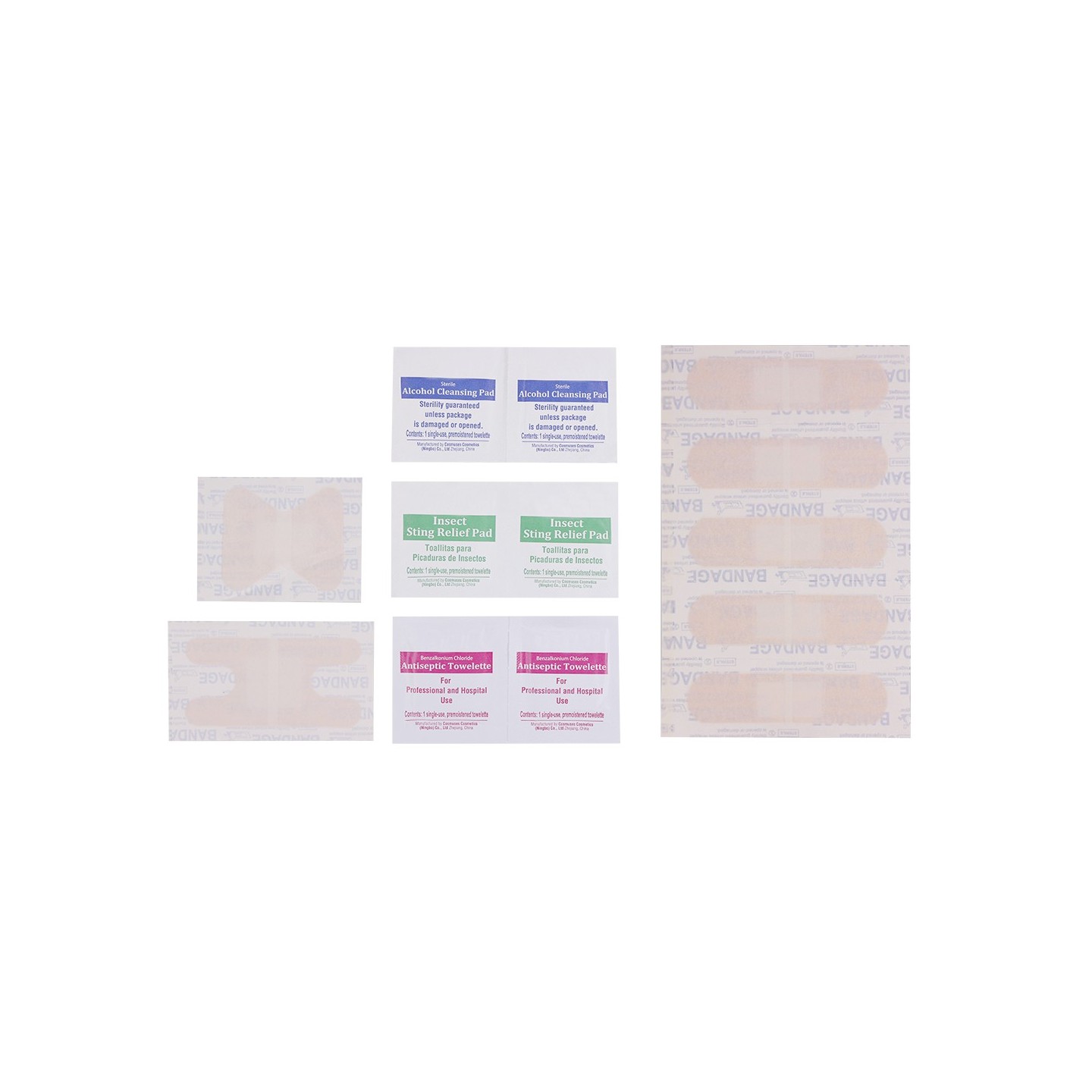 Este kit está compuesto por una selección de elementos clave que pueden ser de gran ayuda en situaciones de urgencia, tales como vendas, toallitas, toallas con alcohol y una toallita alivia picaduras. Con todo esto, estarás listo para afrontar pequeños accidentes o imprevistos de manera rápida y eficiente, asegurando tu bienestar y el de quienes te rodean.