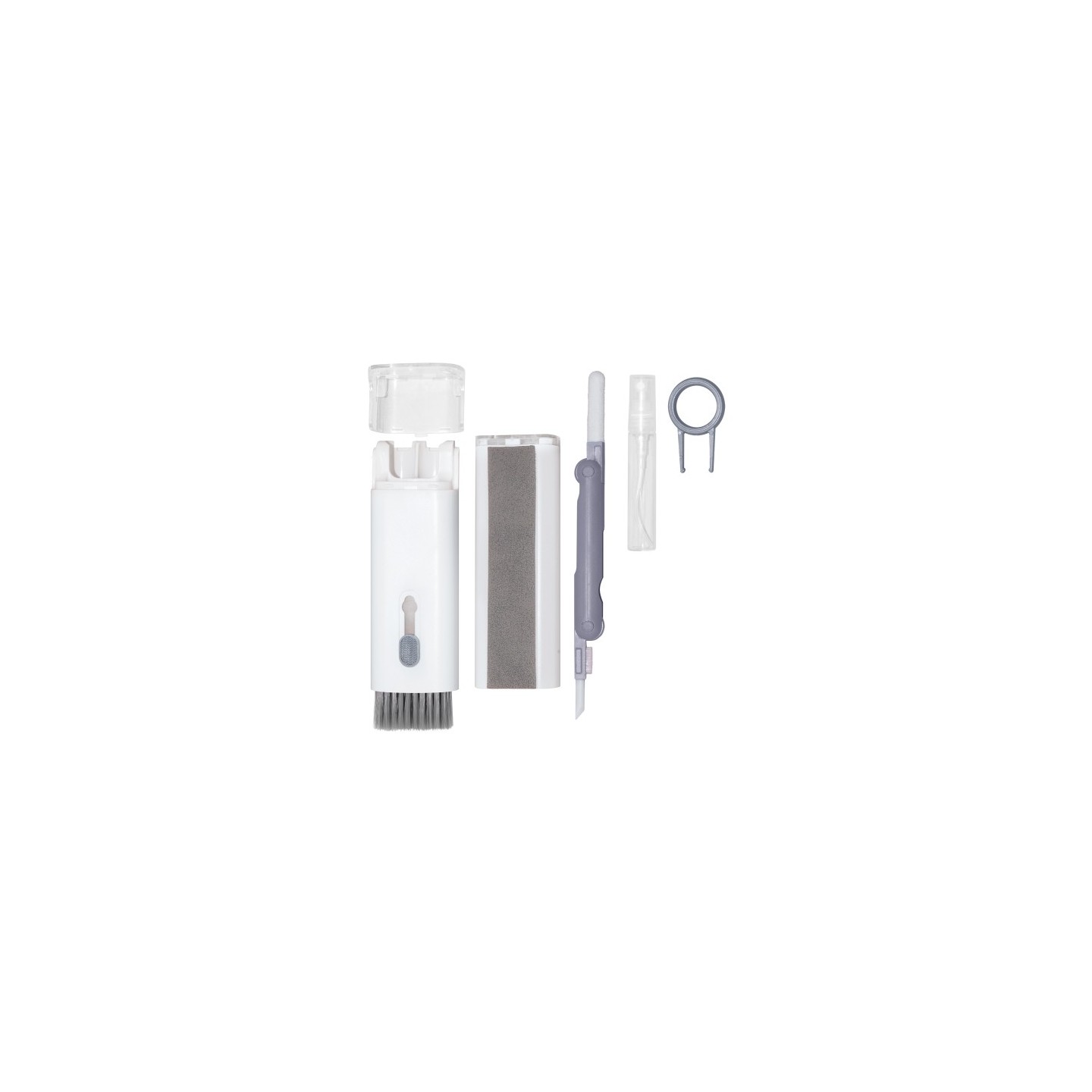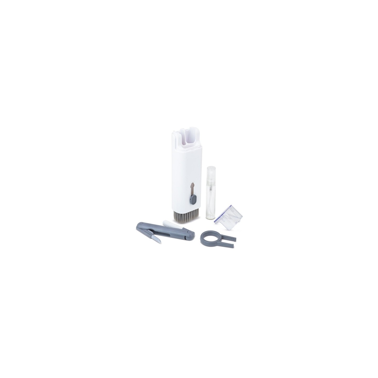 Kit 7 en 1 para limpiar teclados, auriculares y pantallas. Incluye cepillos, gamuza, punta silicona, gancho extractor teclas y botella spray