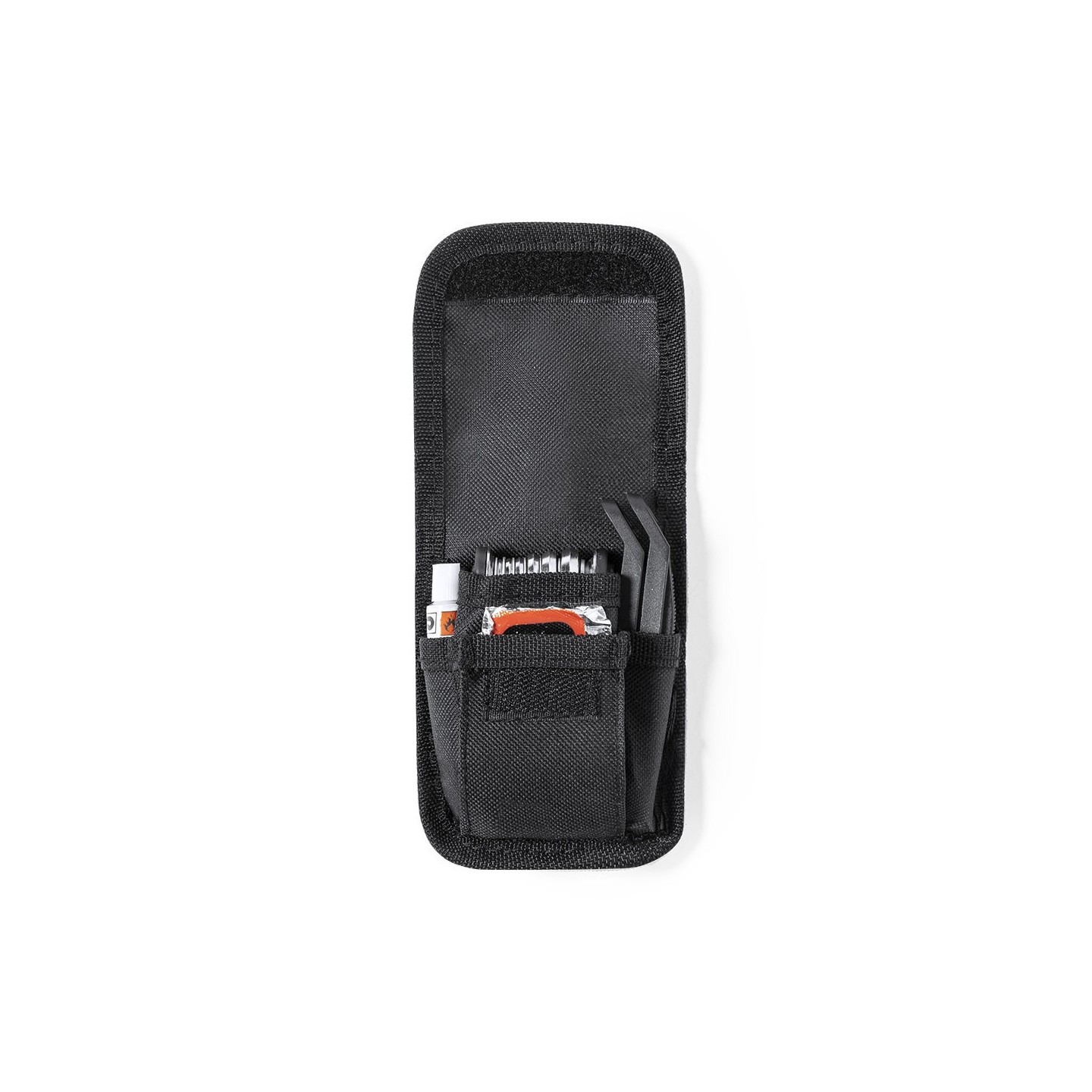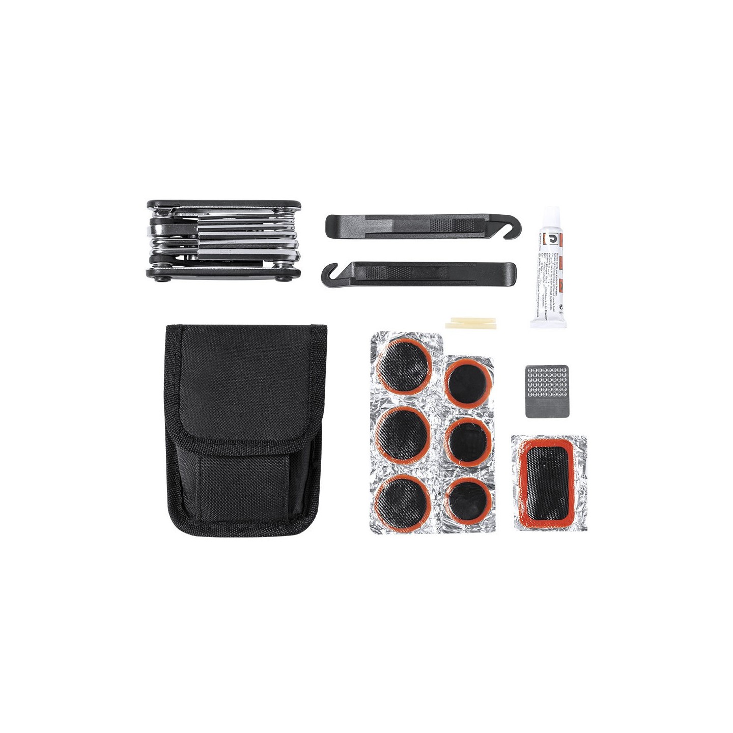 Kit Reparación Bici Gerald: Completo y resistente. Incluye 14 accesorios esenciales para reparaciones en el camino. Práctico estuche de poliéster 600D. ¡Disfruta del ciclismo sin preocupaciones!