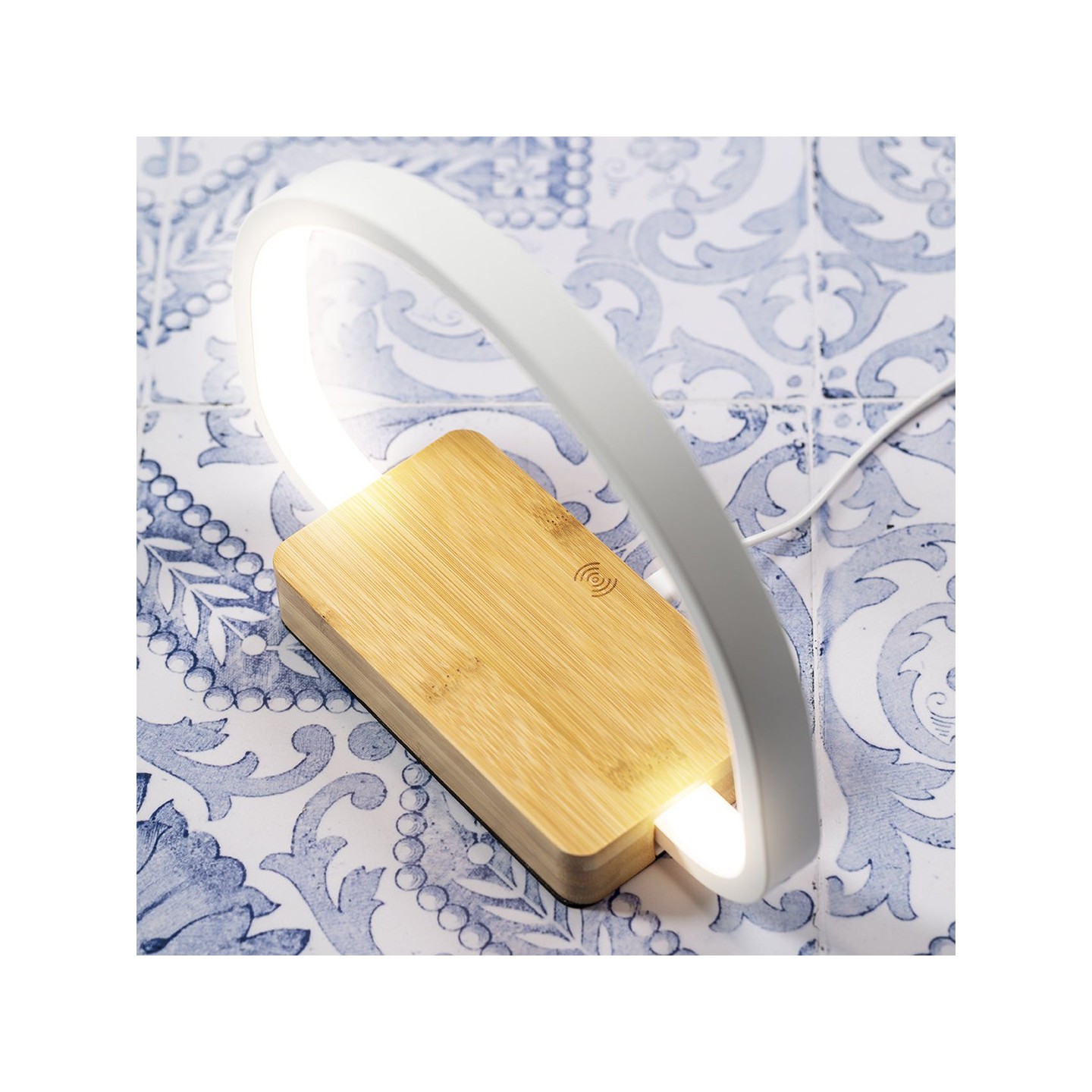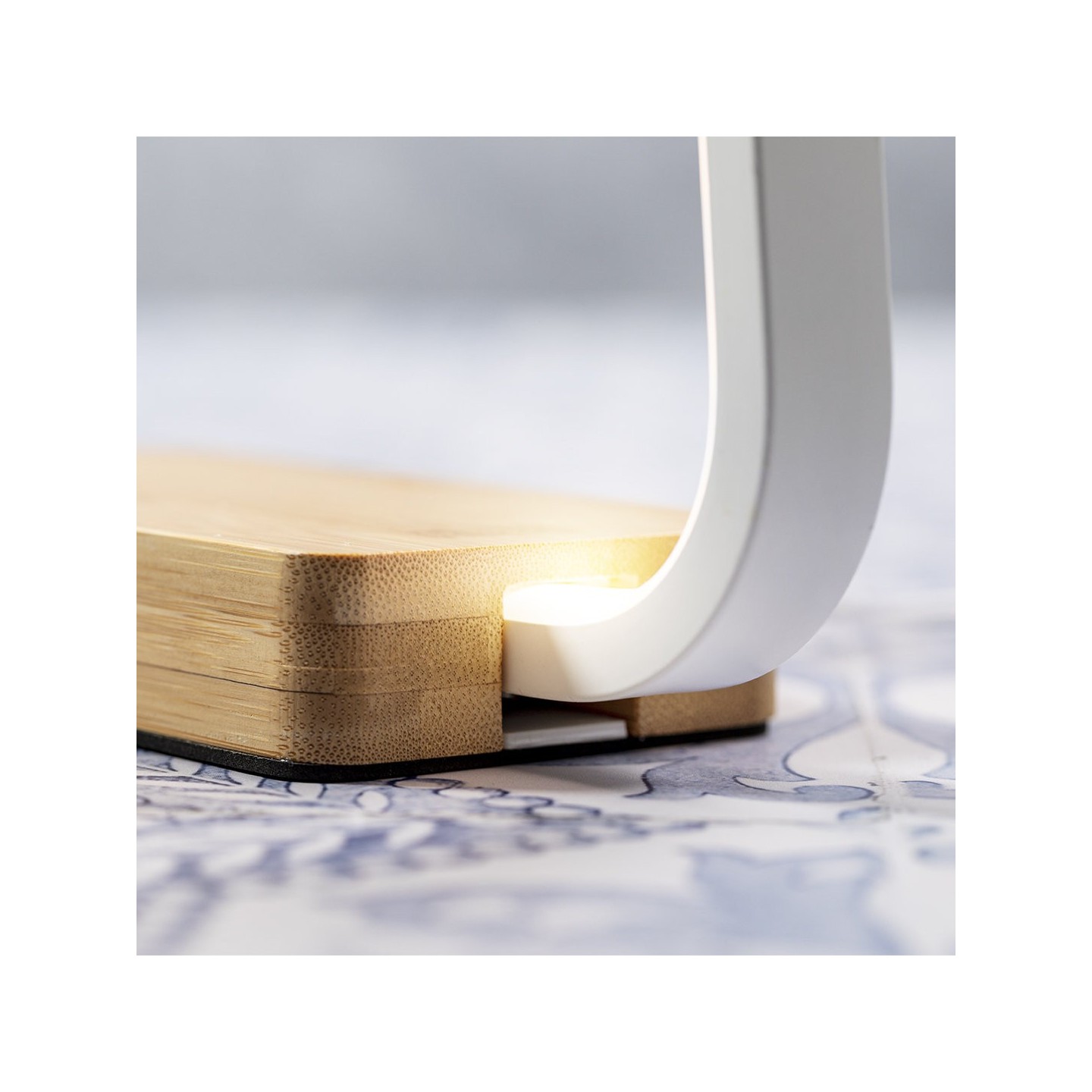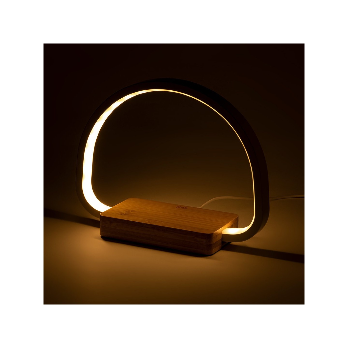 La Lámpara Cargador Labrum viene con diseño eco en bambú con cargador inalámbrico, 52 LEDs y regulación de intensidad. Ideal para regalo o decoración sostenible.