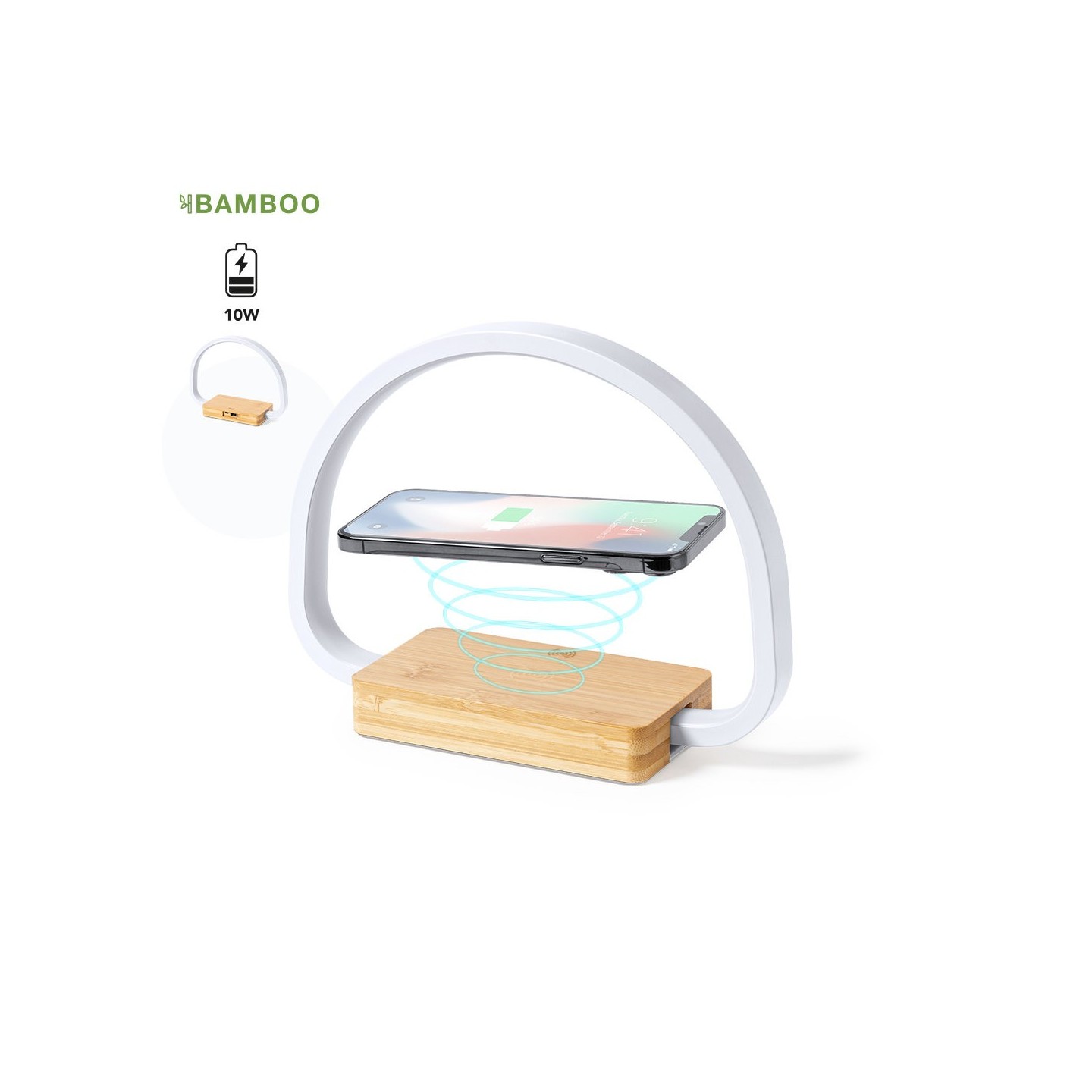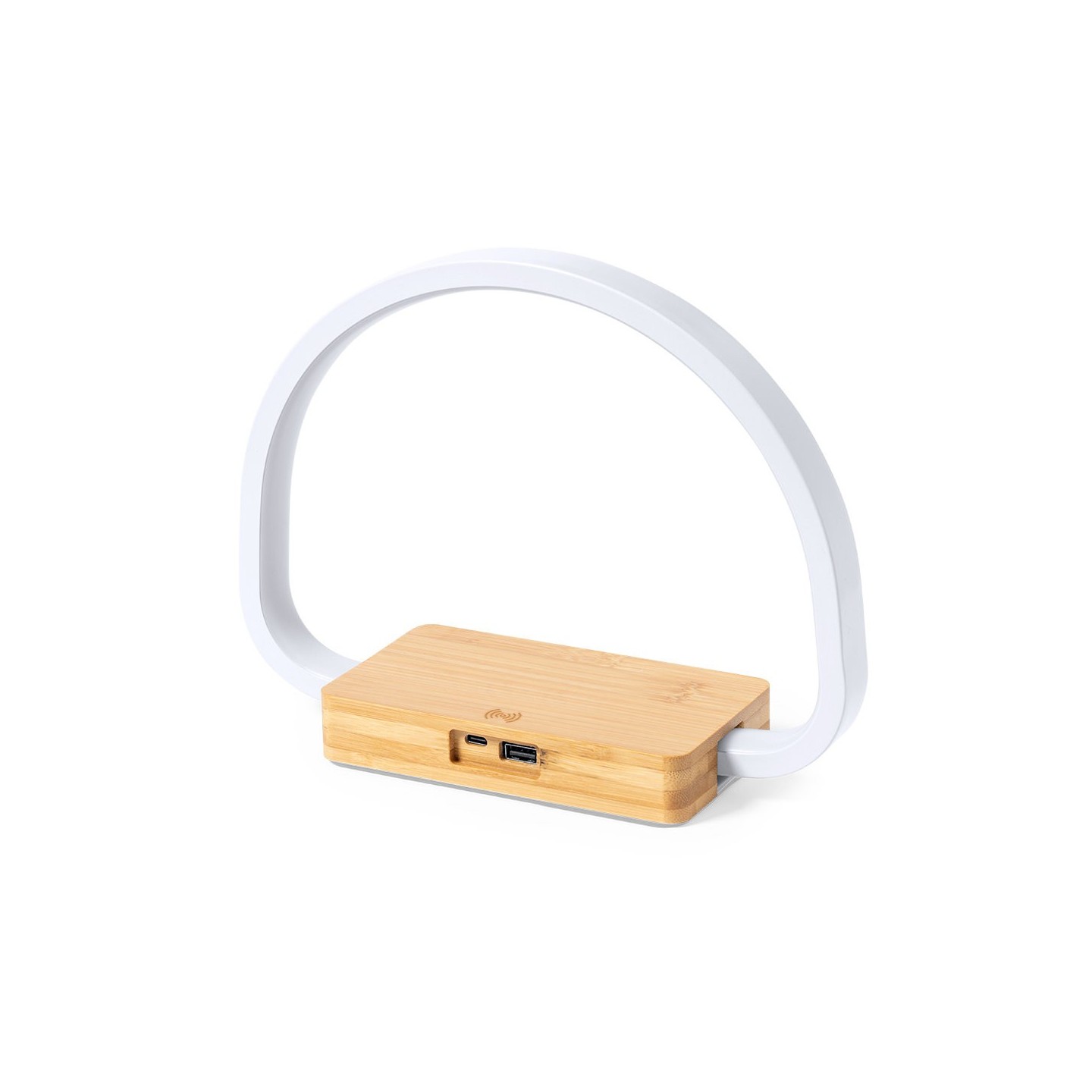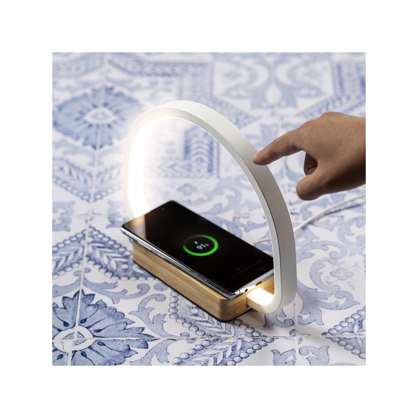 La Lámpara Cargador Labrum viene con diseño eco en bambú con cargador inalámbrico, 52 LEDs y regulación de intensidad. Ideal para regalo o decoración sostenible.
