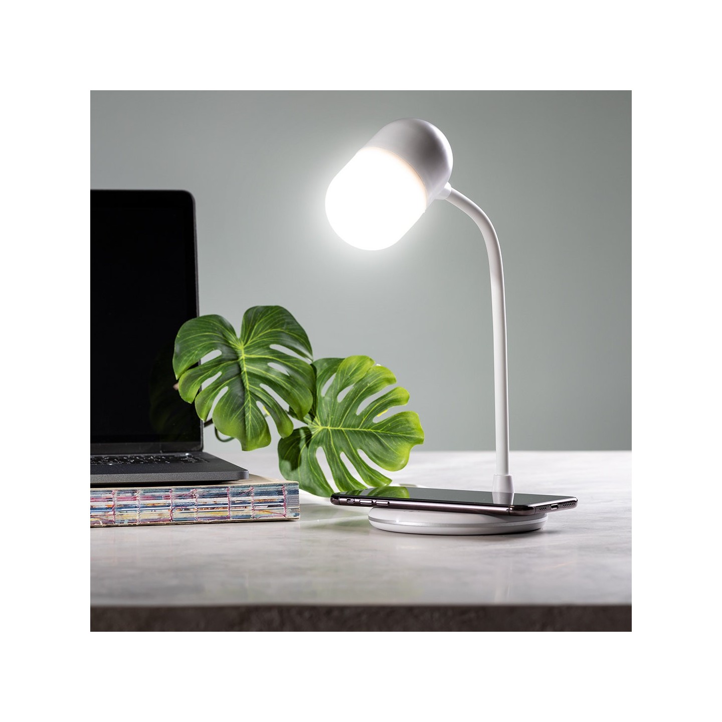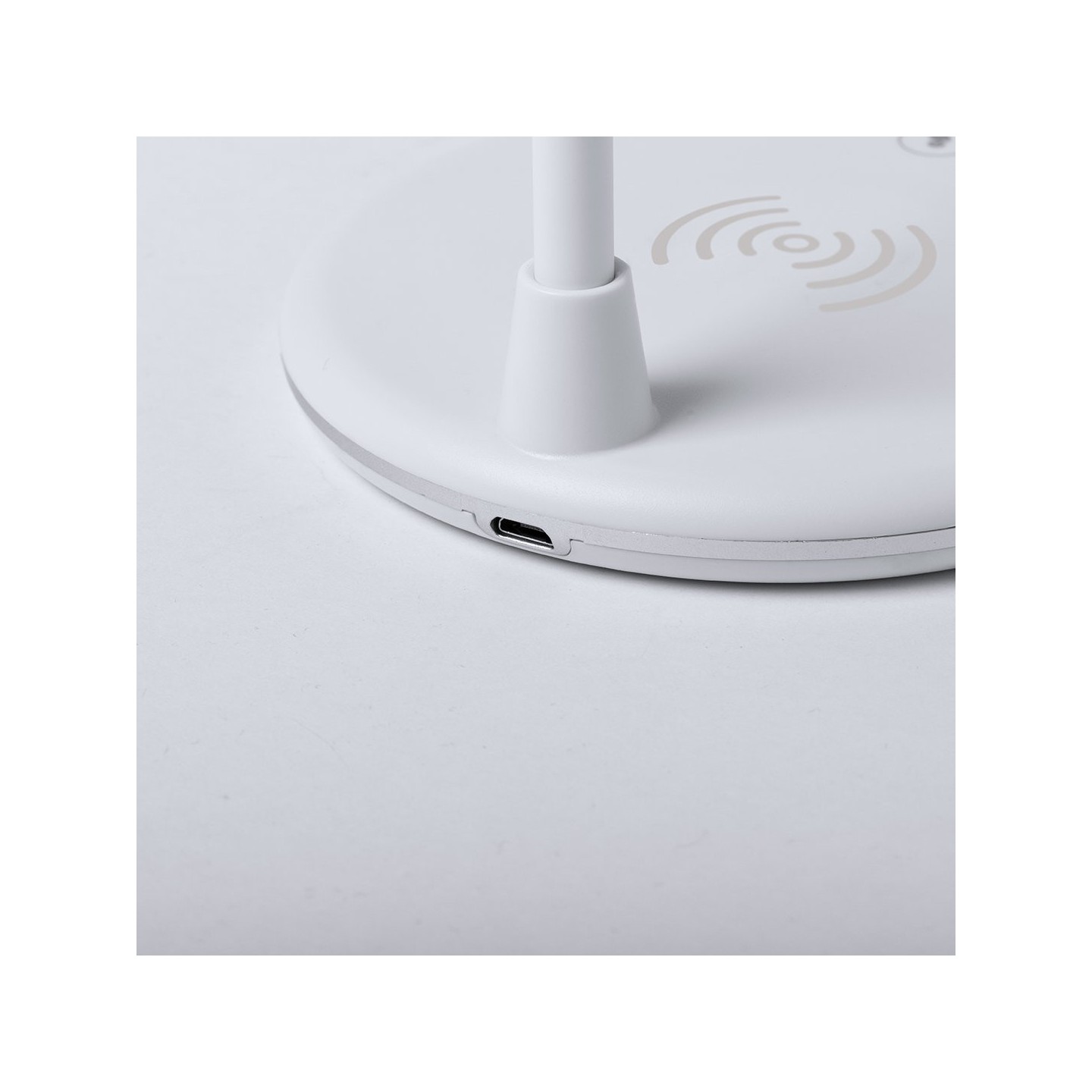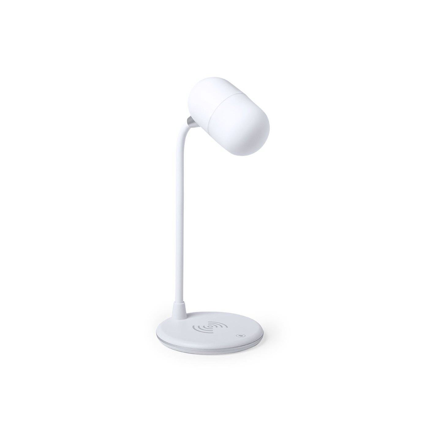 La Lámpara Multifunción Lerex ofrce un altavoz bluetooth, cargador inalámbrico y ajuste de iluminación. Un dispositivo versátil y elegante en acabado blanco.