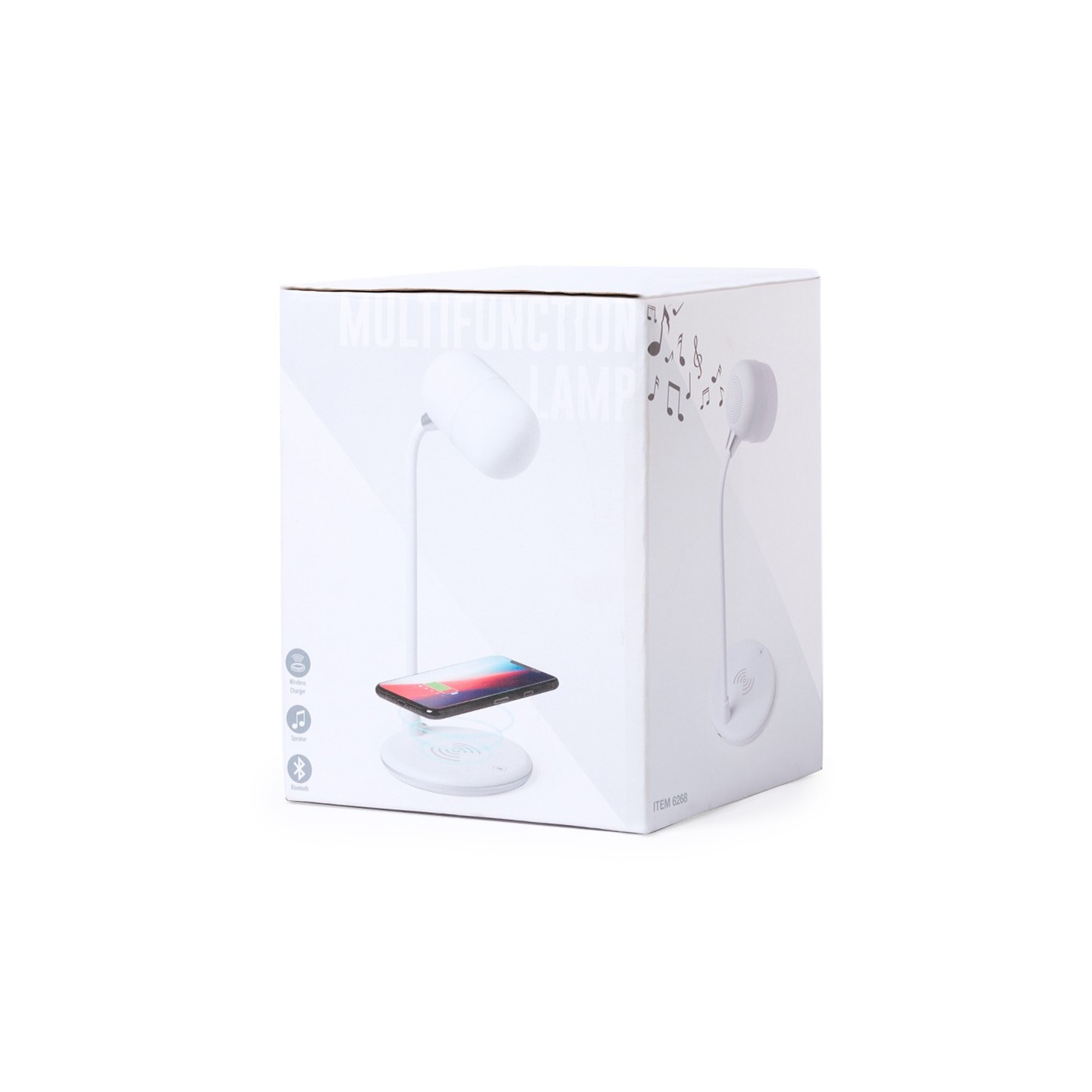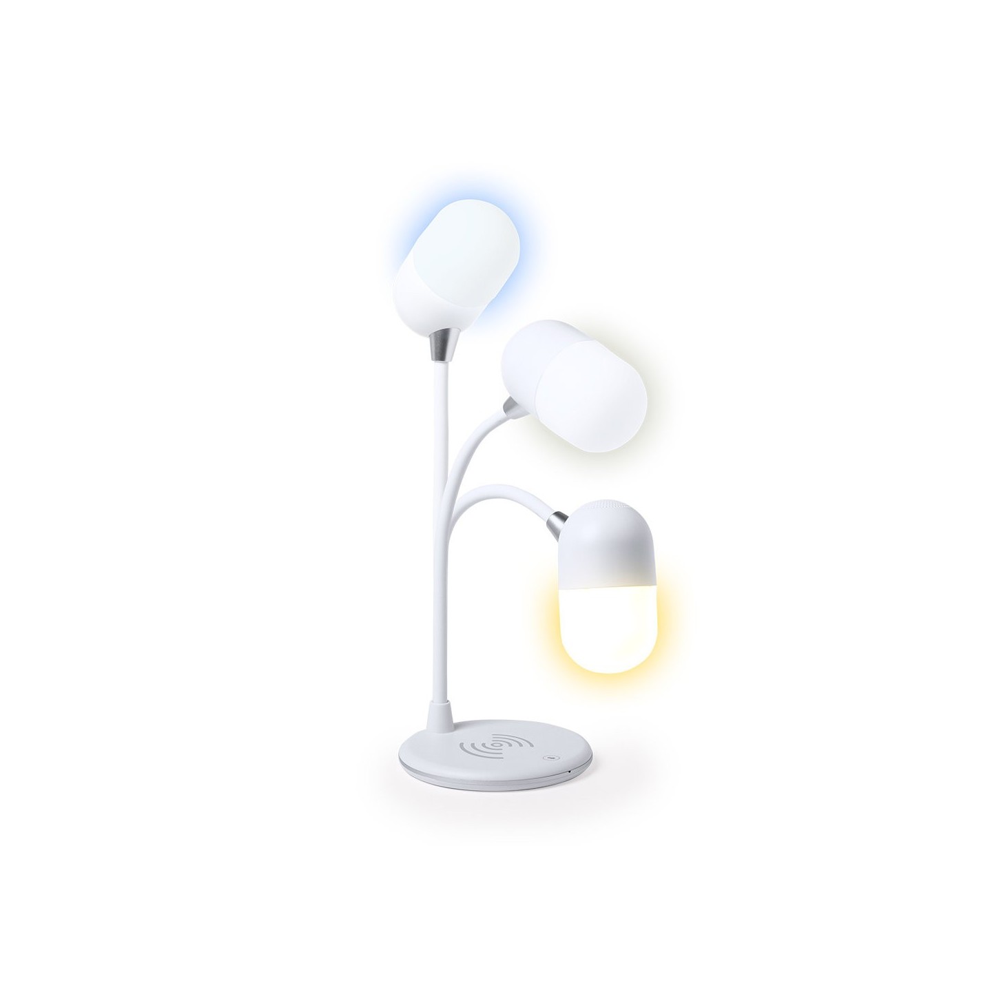 La Lámpara Multifunción Lerex es un dispositivo versátil y elegante con altavoz bluetooth, cargador inalámbrico y ajuste de iluminación. Perfecto para cualquier ambiente.