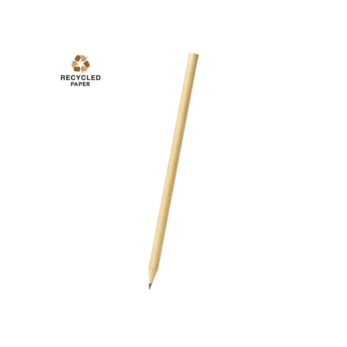 El Lápiz Dengal, fabricado en resistente papel reciclado de color kraft, es un regalo personalizado ideal para empresas. Mina negra y diseño eco-friendly.