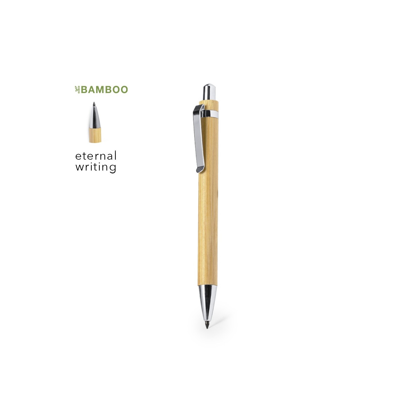 Descubre el lápiz eterno Chidex, una verdadera joya en el mundo de la escritura sostenible. Este lápiz innovador está confeccionado con bambú de alta calidad y adornado con elegantes accesorios cromados. Su diseño reutilizable y con escritura infinita redefine la durabilidad y practicidad, permitiéndote utilizar el mismo lápiz de manera continua, reduciendo así la generación de residuos.