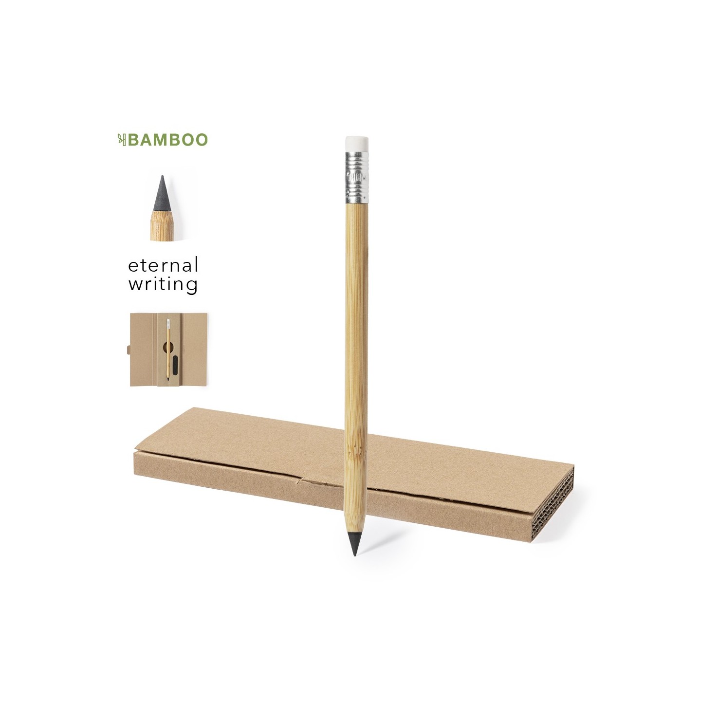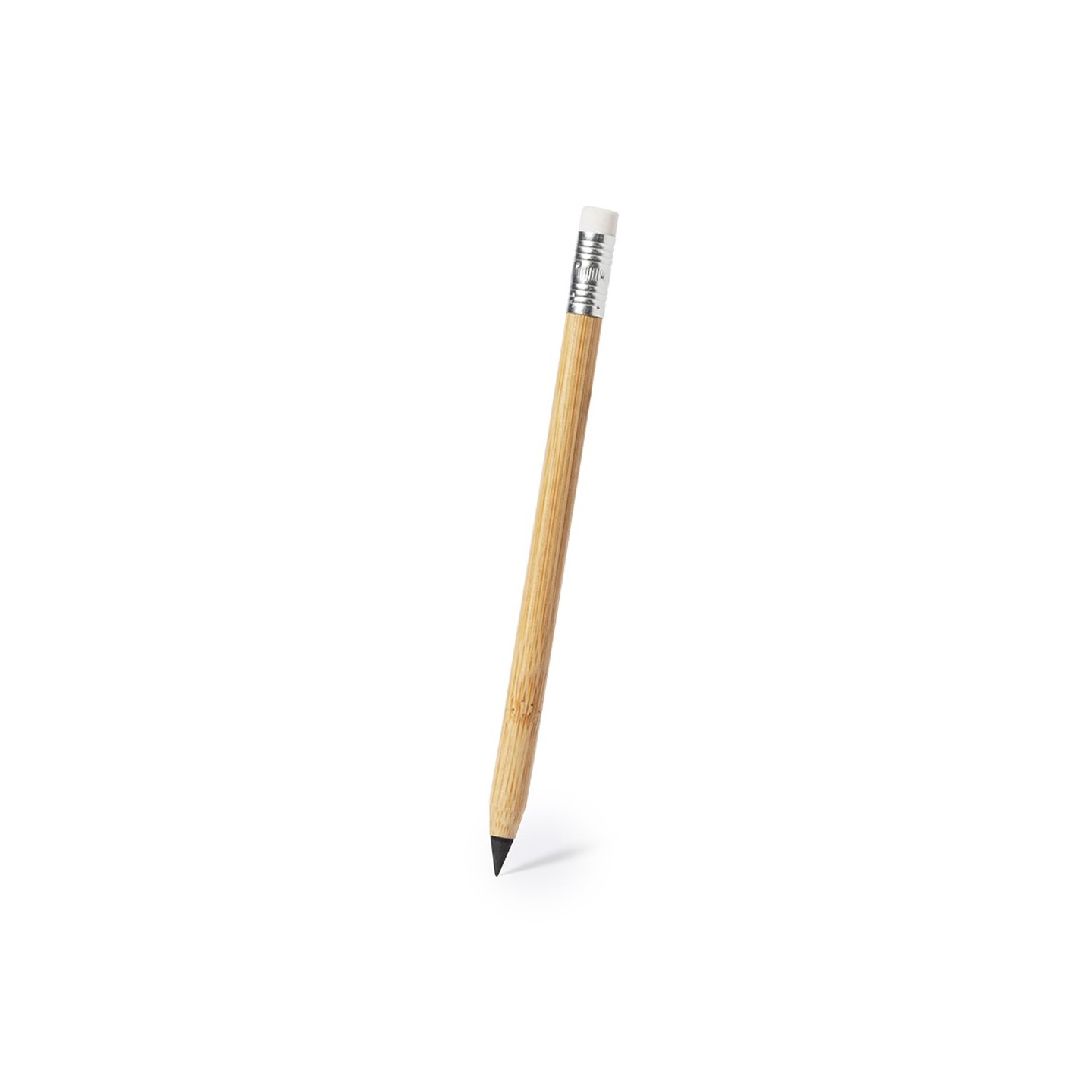 Lápiz eterno Seryi fabricado en bambú, con escritura infinita para un uso sin residuos. Incorpora una goma de borrar en la parte superior.