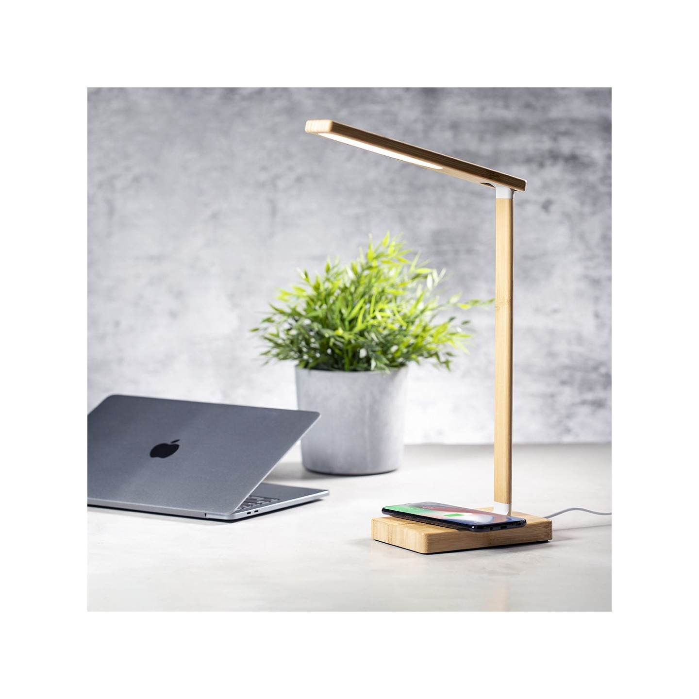 La Lámpara Cargador Sleya es una lámpara plegable de bambú con cargador inalámbrico integrado, 25 LEDs y 3 posiciones de iluminación. Funciona como cargador y lámpara de ambiente. ¡Un accesorio versátil y elegante para tu espacio!