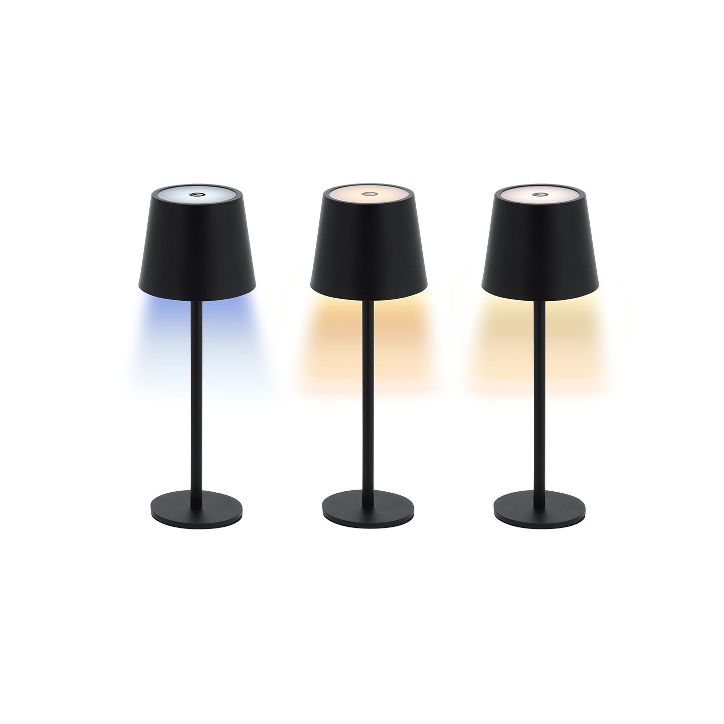 La Lámpara Tanik en negro cromado ofrece 3 modos de luz y regulación táctil. Personalizable con tu logotipo, ideal para cualquier espacio y ocasión.