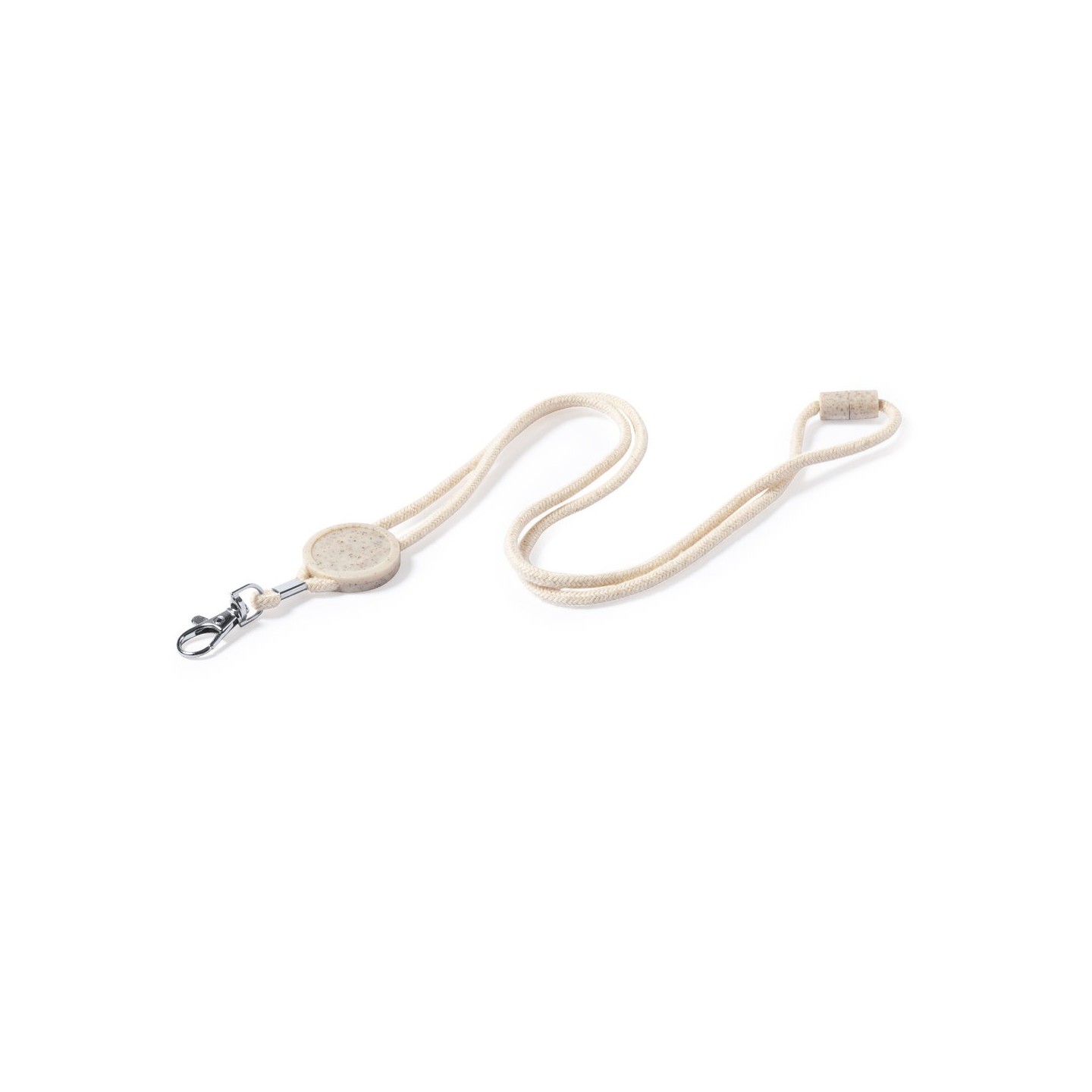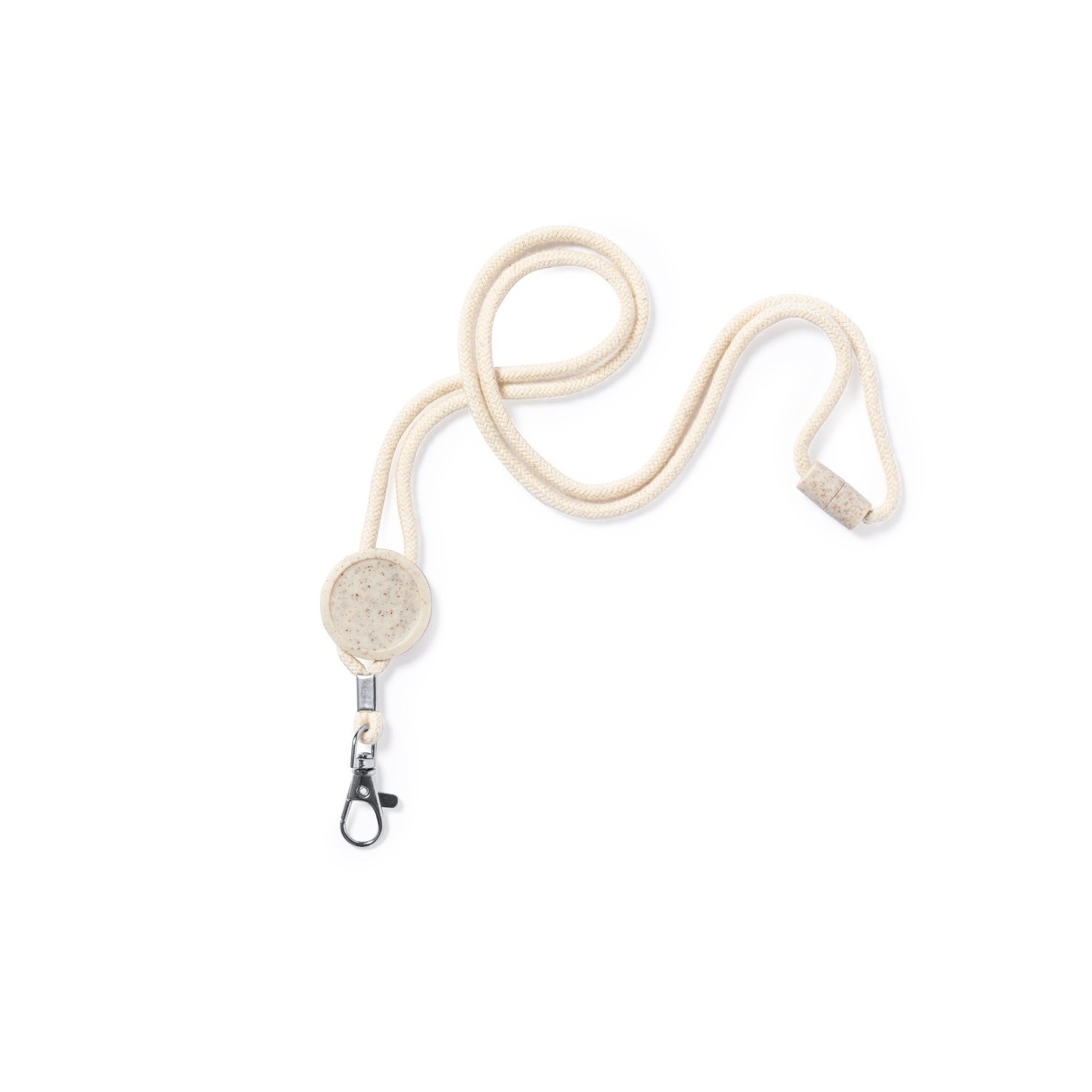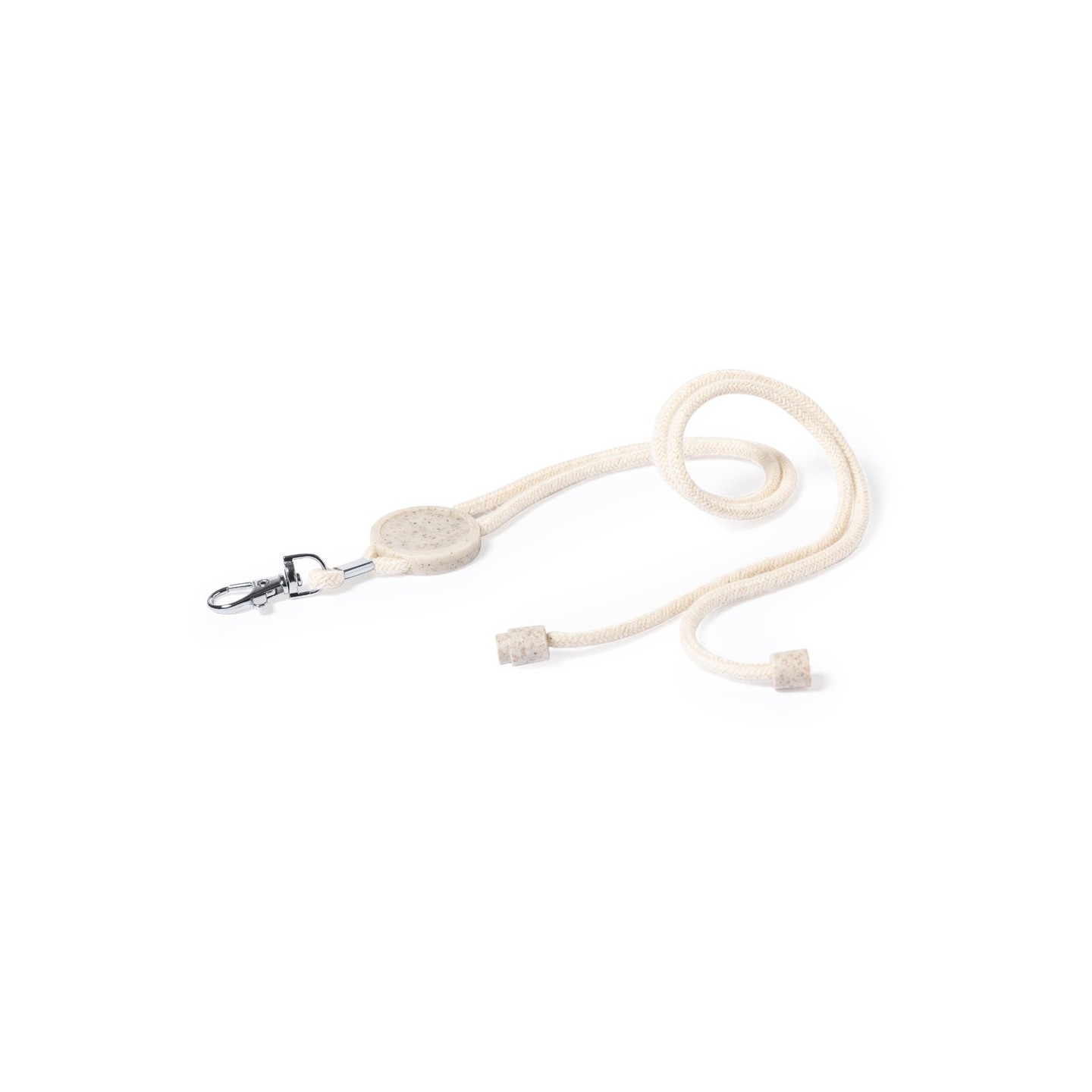 El Lanyard Denain es sostenible y funcional, fabricado en algodón resistente y detalles de caña de trigo. Personalización con tu logo disponible.