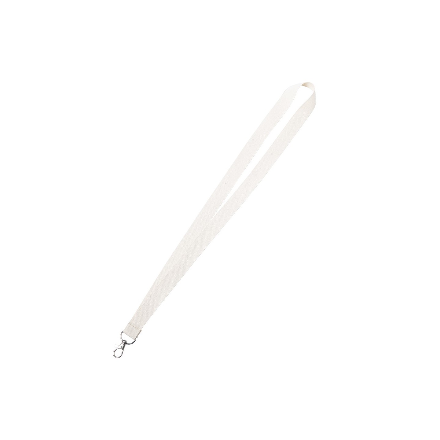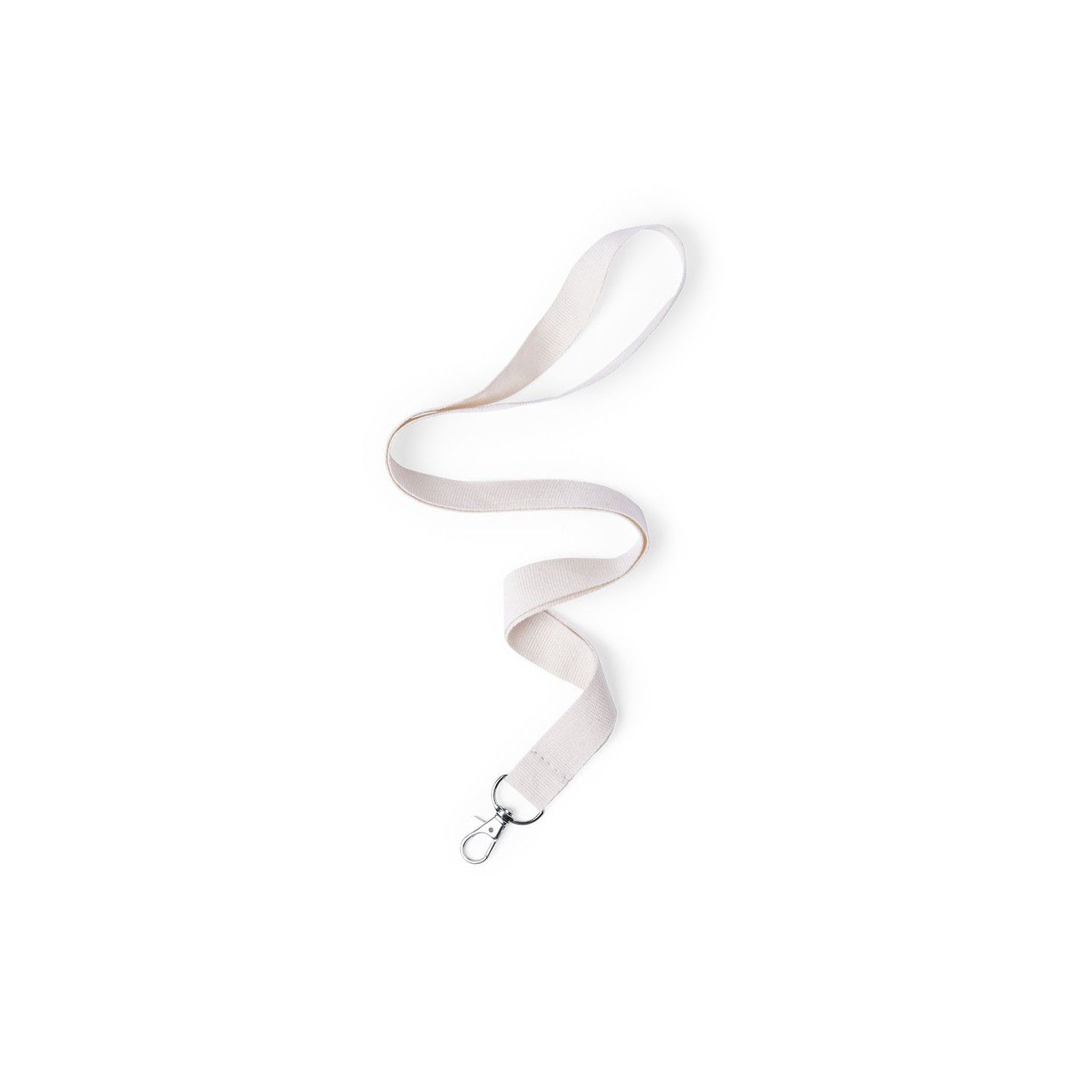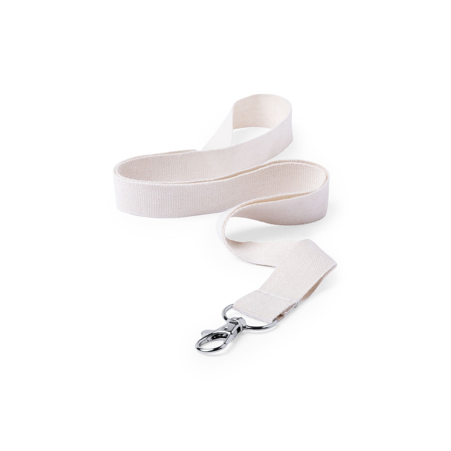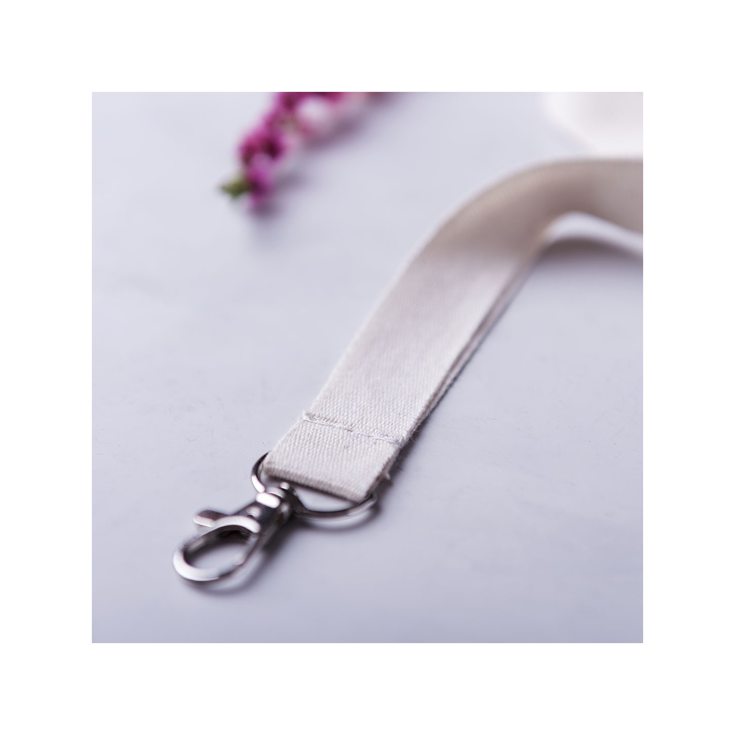 El Lanyard Mirok es 100% algodón, color crudo y mosquetón metálico. Resalta tu marca con elegancia sostenible.