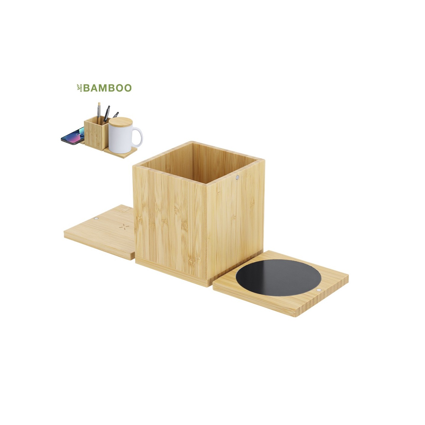 El Lapicero Multifunción DEBLIK es una innovadora herramienta diseñada para aquellos que buscan funcionalidad y estilo en su escritorio. Fabricado en bambú, un material natural que promueve la sostenibilidad, este lapicero no solo cumple con su propósito original de organizar tus bolígrafos y lápices, sino que también incorpora dos funciones adicionales muy útiles. Cuenta con un calentador de tazas integrado, que permite mantener tus bebidas calientes durante todo el día, y un cargador inalámbrico de 15W para cargar dispositivos compatibles simultáneamente, lo que lo convierte en una opción perfecta para la oficina o el hogar.