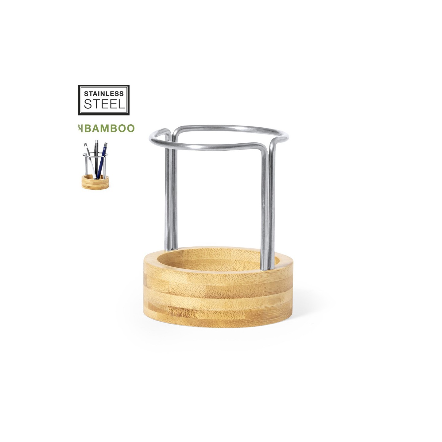 Original lapicero de diseño, confeccionado con bambú barnizado y resistente acero inoxidable. Presentado en caja individual de diseño kraft.