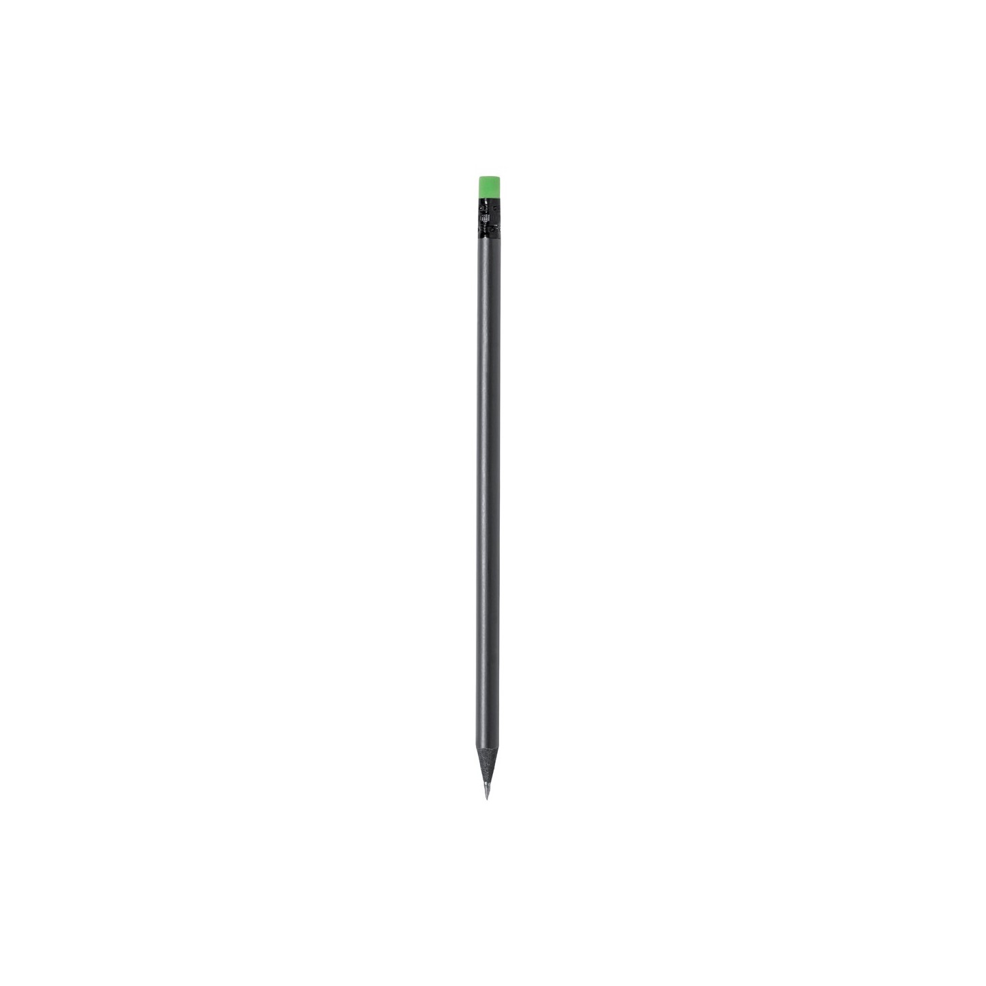 Elegante lápiz de color negro fabricado en madera natural, con práctica goma y disponible en diversos colores. Con mina negra y punta afilada.