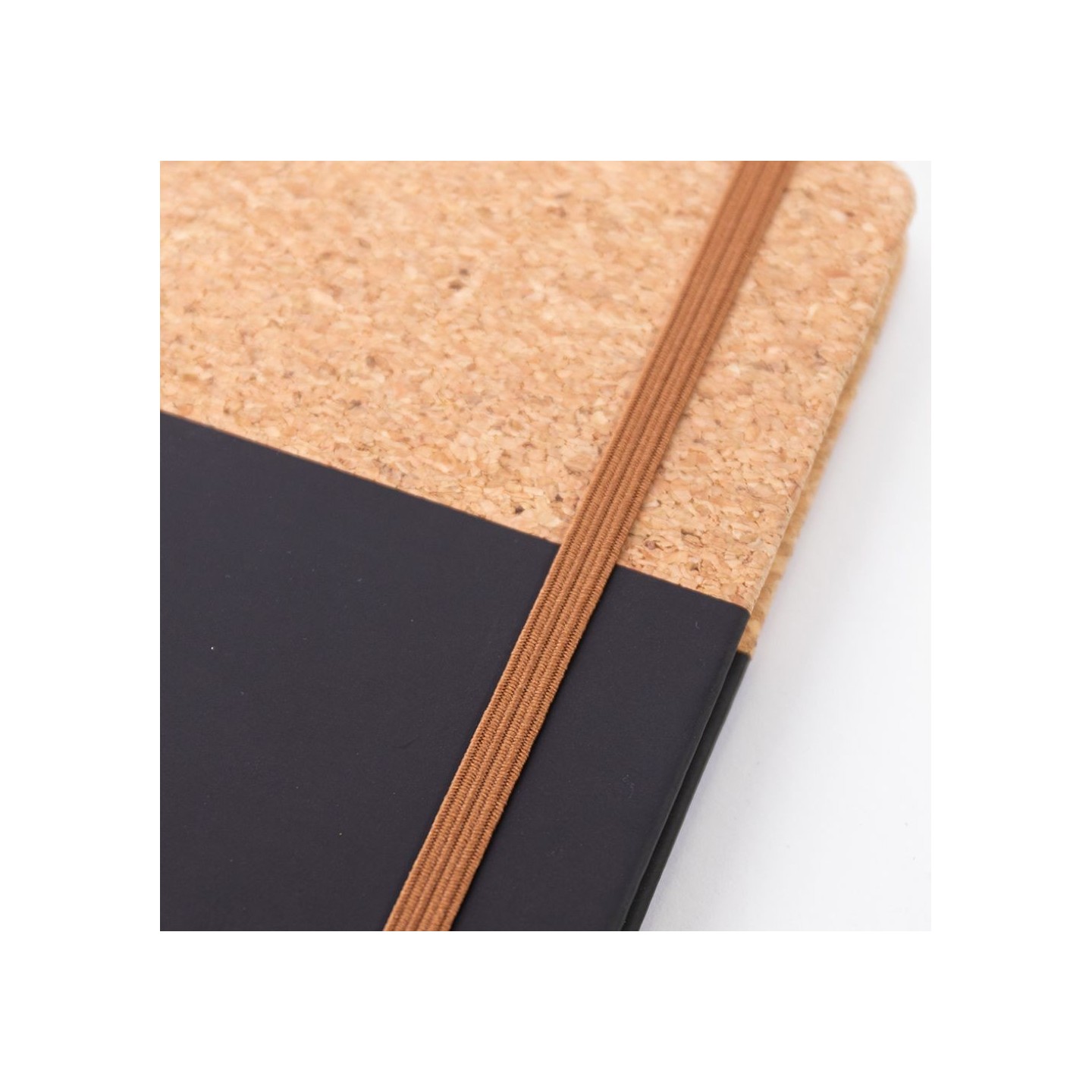 La Libreta A5 Bound es una fusión de elegancia y sostenibilidad. Tapa dura de PU y corcho, cierre elástico, marca páginas. Ideal para personalización láser y digital.
