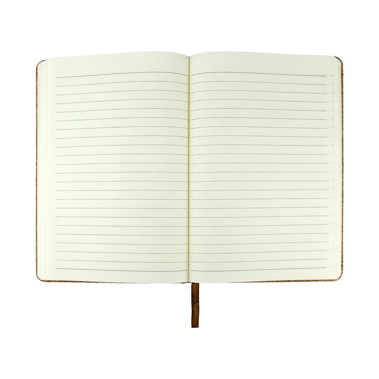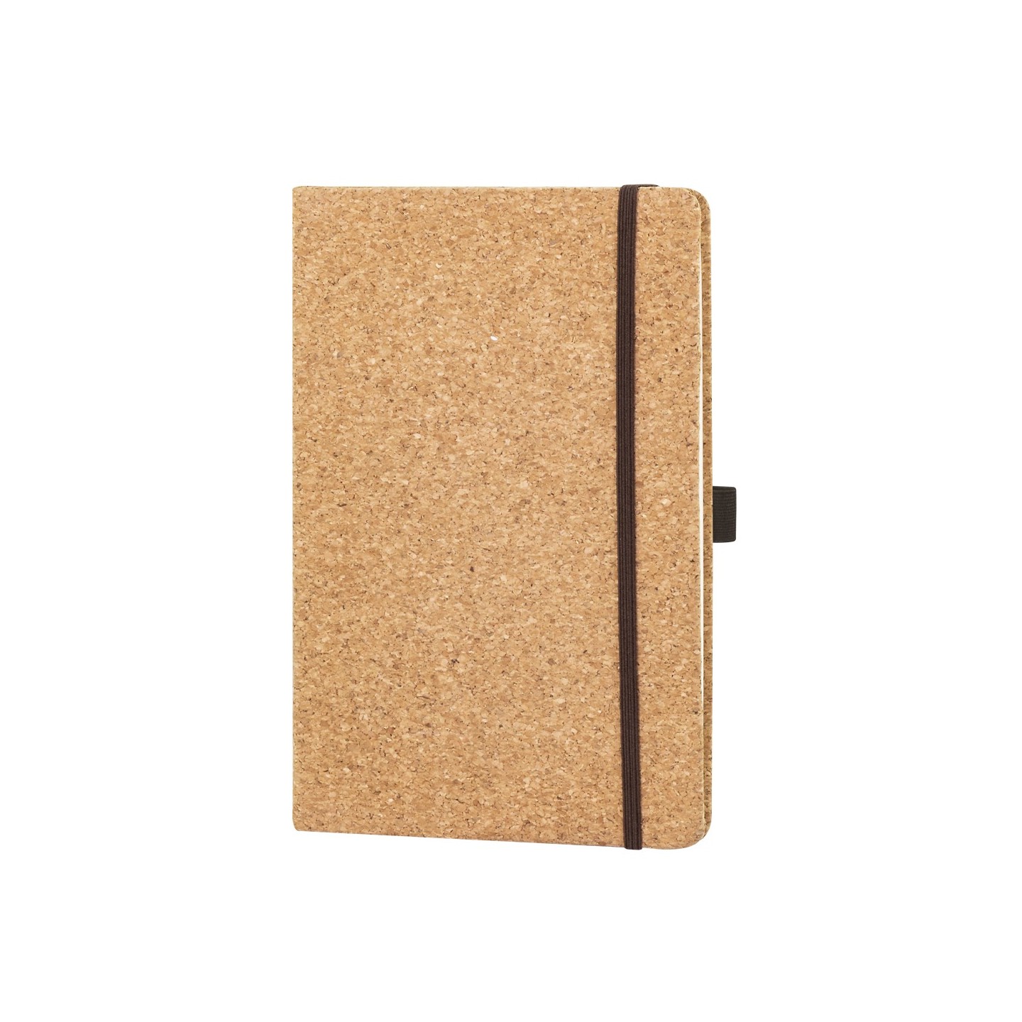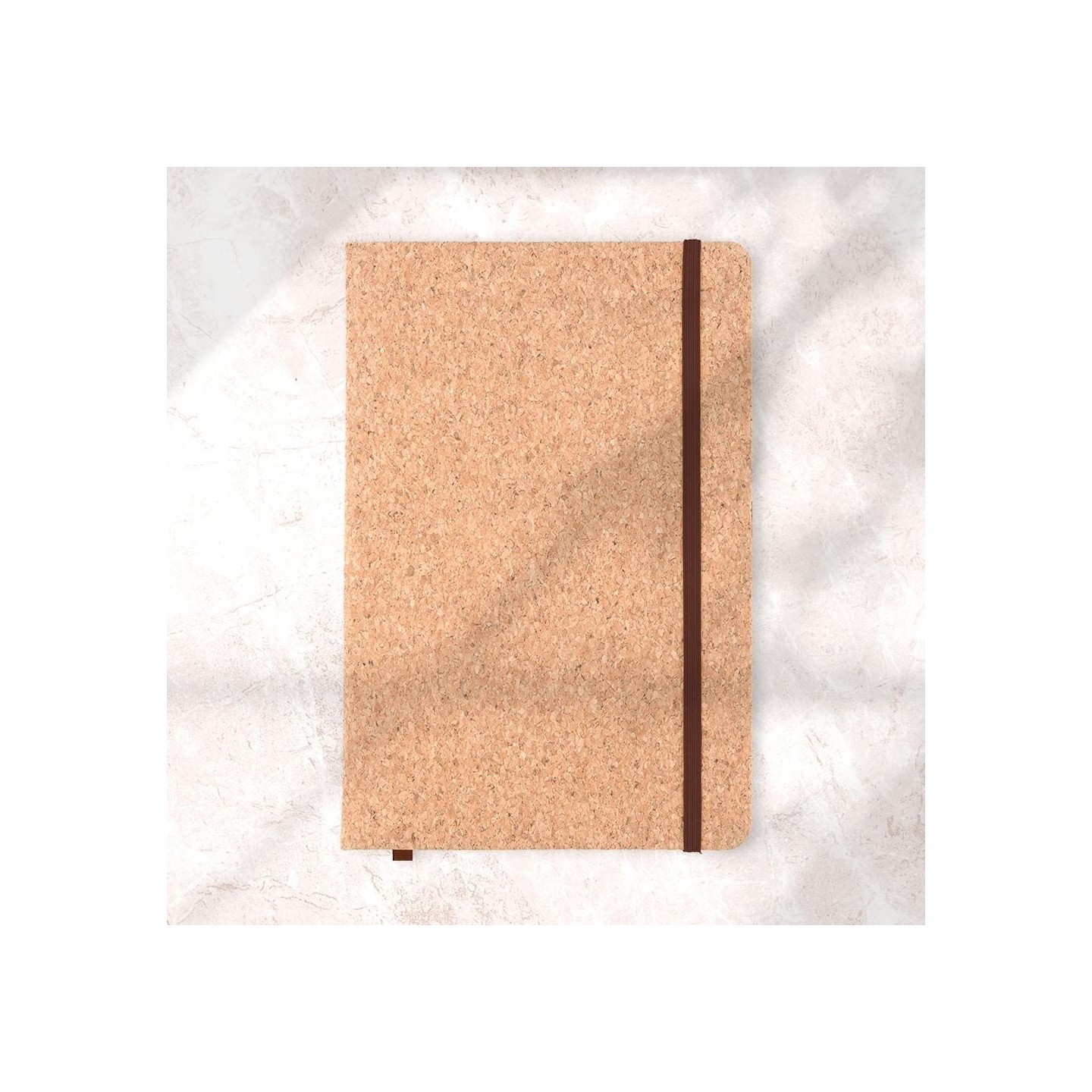 La Libreta A5 Cork es elegante, sostenible y funcional. Tapa de corcho, 80 hojas rayadas, marca páginas y cierre elástico. Certificación FSC
