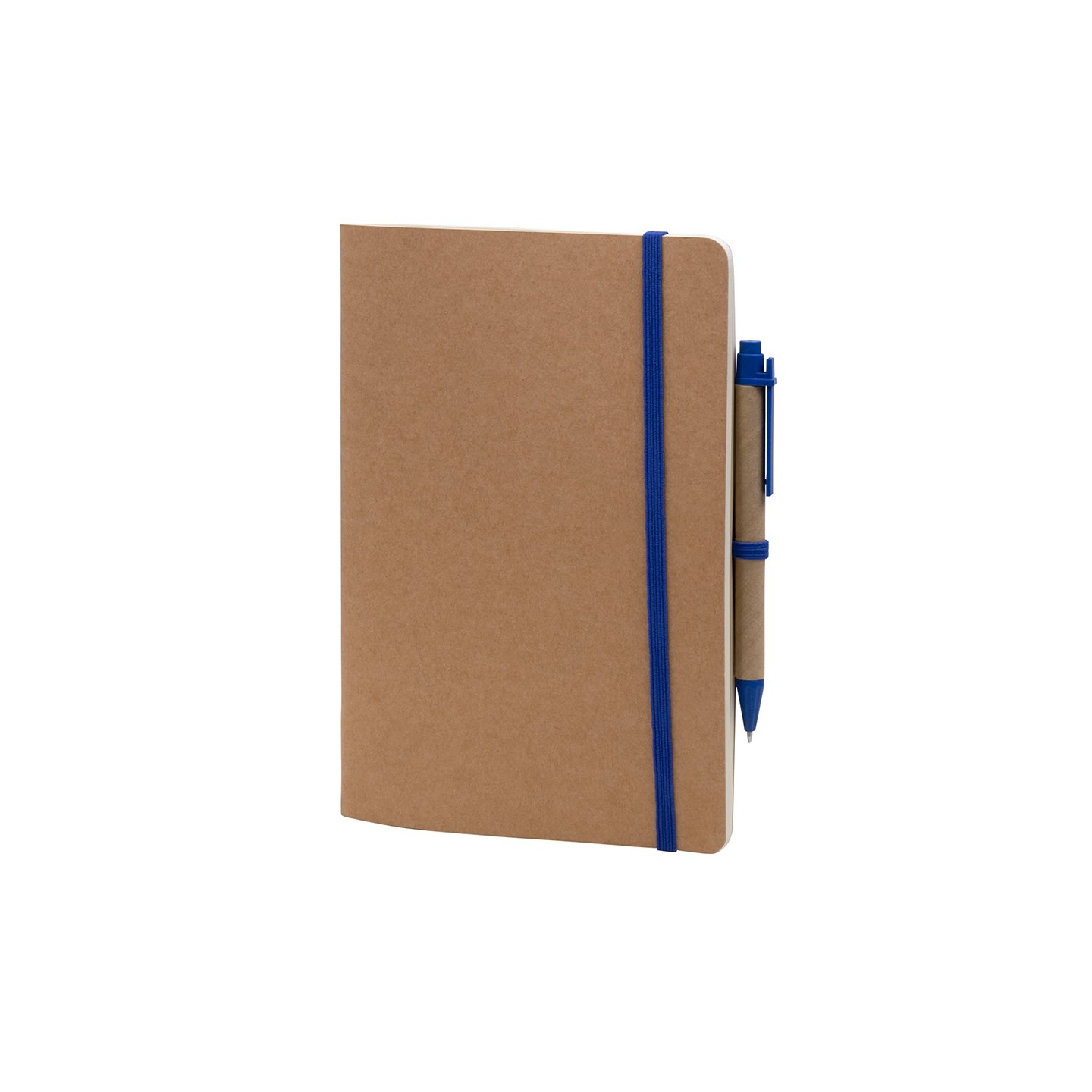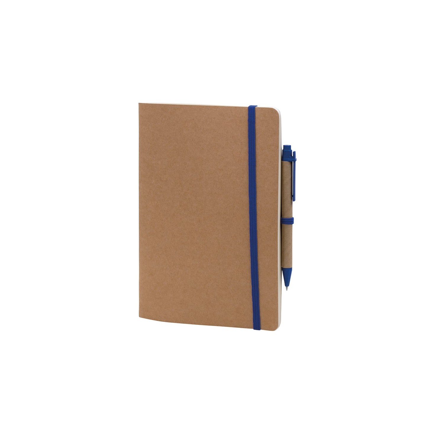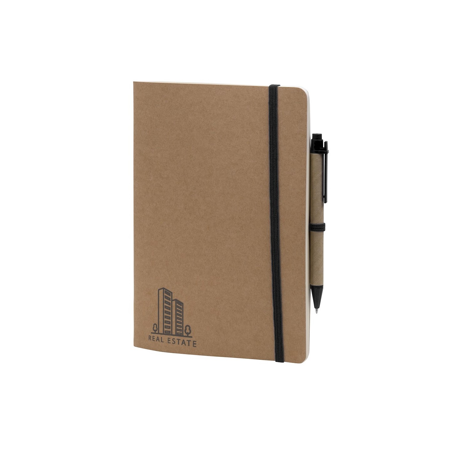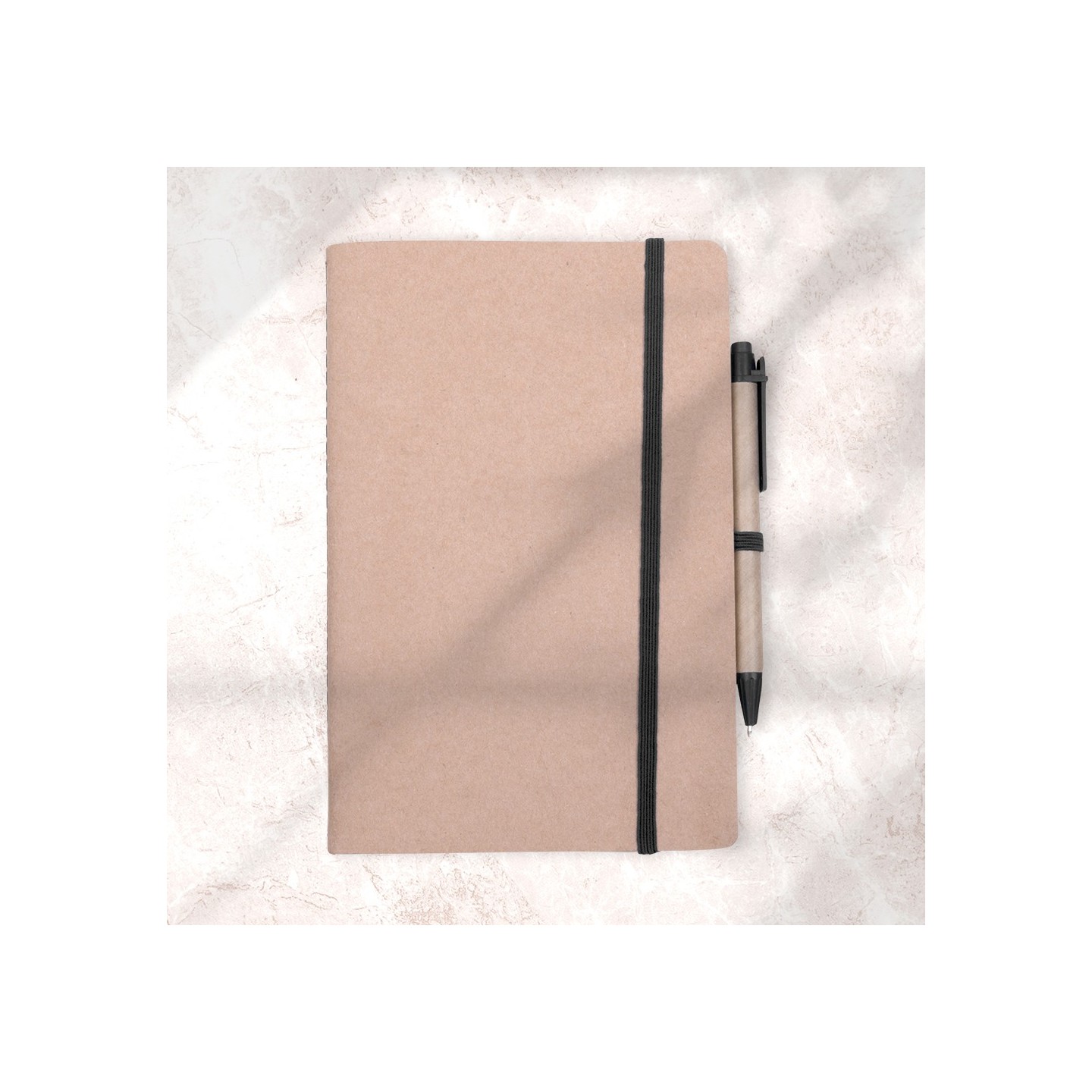 La Libreta A5 Loft combina sostenibilidad y funcionalidad. Tapa de cartón kraft, 60 hojas lisas, banda elástica, bolígrafo ecológico. Medida: 14 x 22 cm.