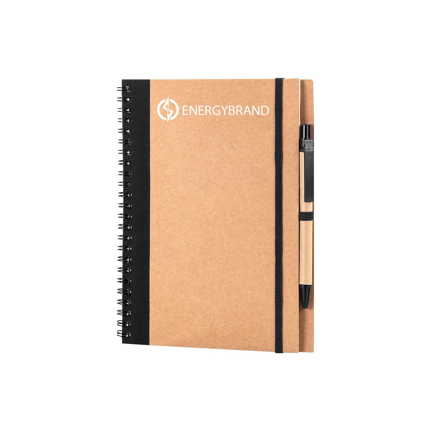 La Libreta A5 Recikla es ecológica y práctica, cartón reciclado, bolígrafo incluido, 60 páginas lisas, certificado FSC. Ideal para la oficina y regalos sostenibles.