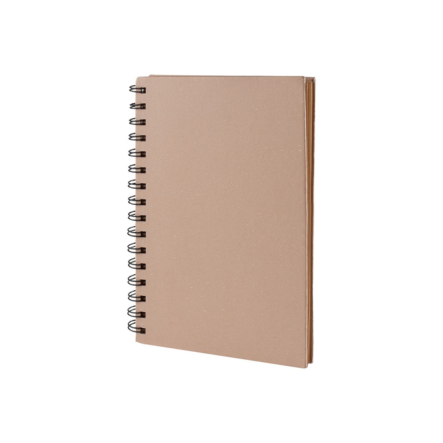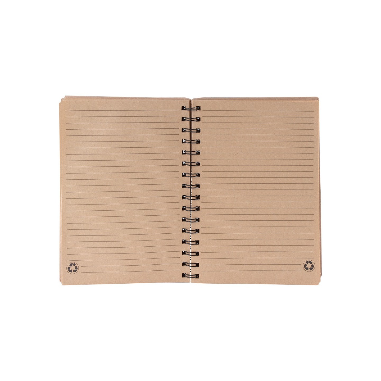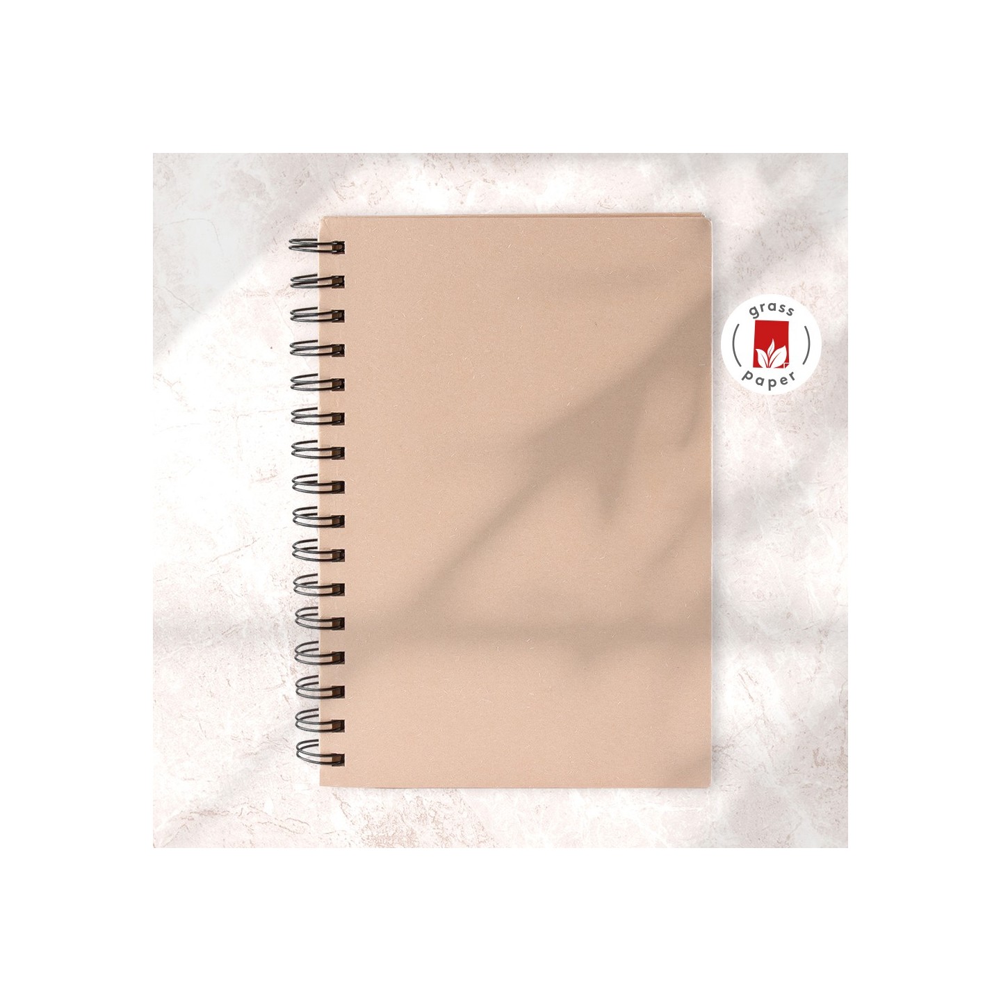 La Libreta A5 Sistelo derrocha innovación sostenible. Espiral metálica, tapas de papel de hierba, 80 hojas rayadas kraft. Medida: 14.5x21 cm