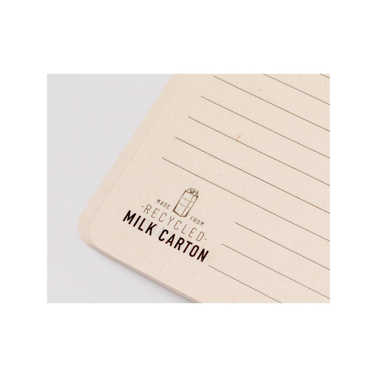 En la parte frontal y en cada una de las hojas interiores, encontrarás el logotipo Recycled Milk Carton, un símbolo de compromiso con la sostenibilidad y el reciclaje. Presentada en una bolsa individual reciclada, esta libreta es la opción ideal para empresas que buscan reducir su huella ambiental.