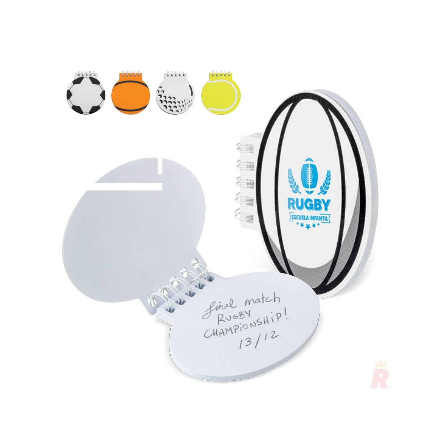 Libretas deportivas con la forma de un balón. Ideal para fanáticos del deporte, perfecta para personalizar con logotipo y como regalo original.