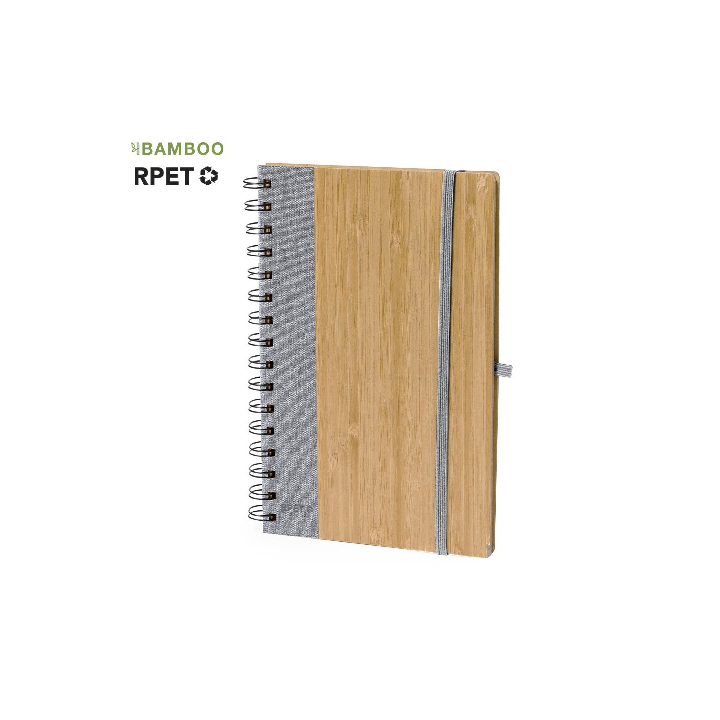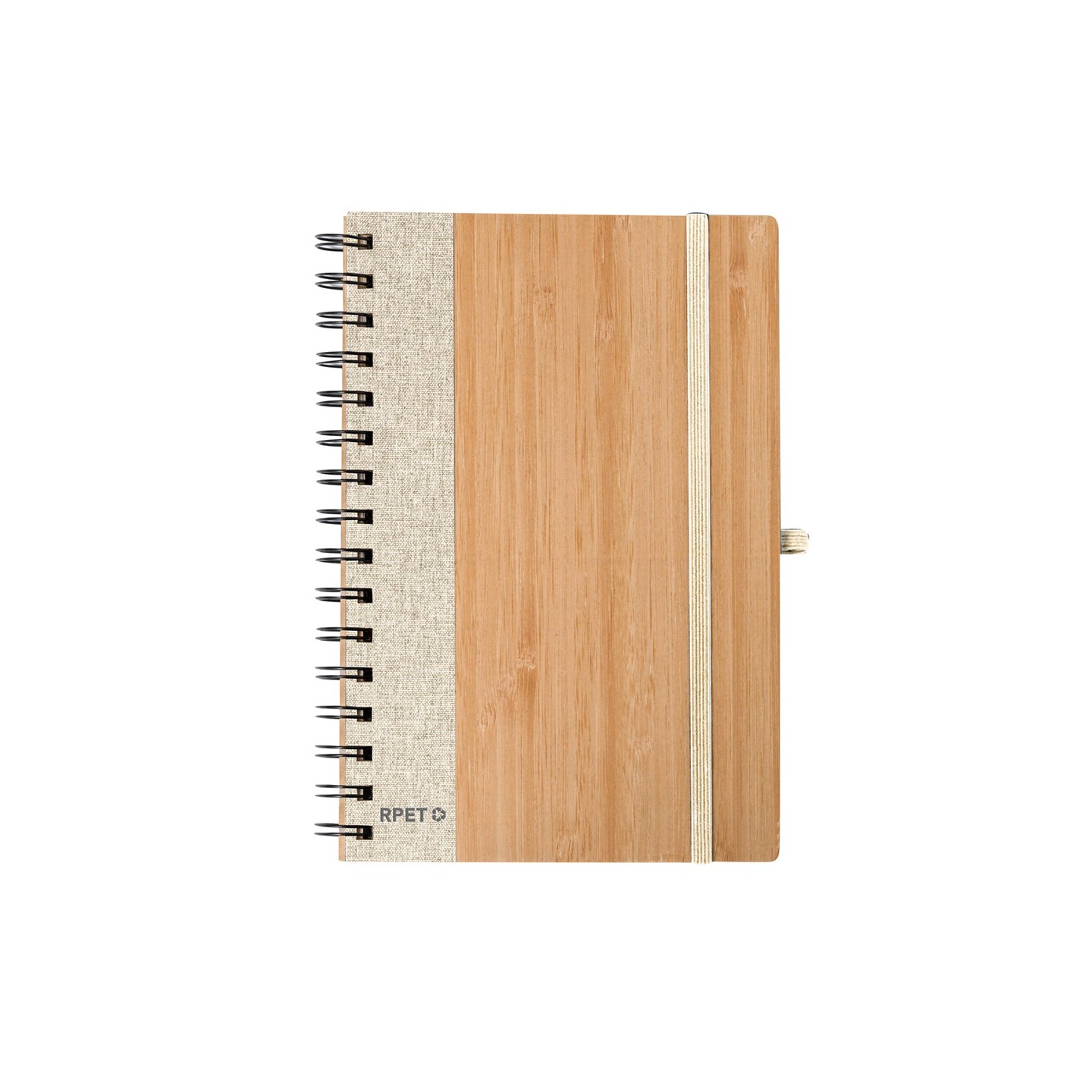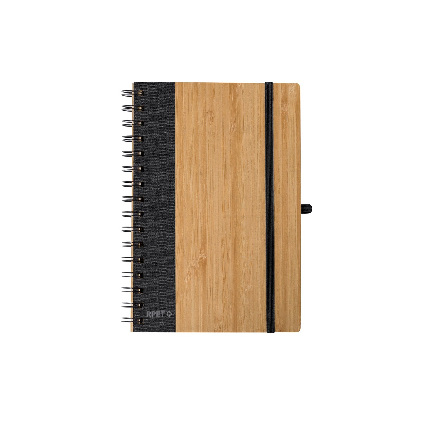Esta libreta de anillas ofrece un diseño elegante y funcional, con tapas rígidas fabricadas en bambú, un material sostenible que refleja nuestro compromiso con el medio ambiente.