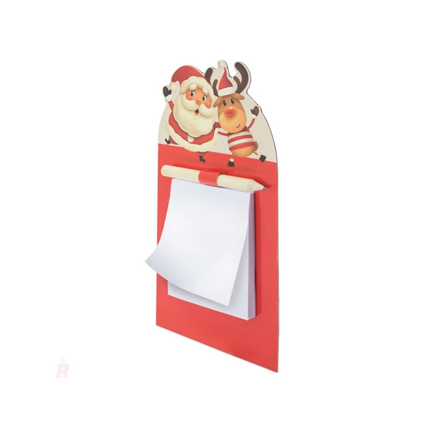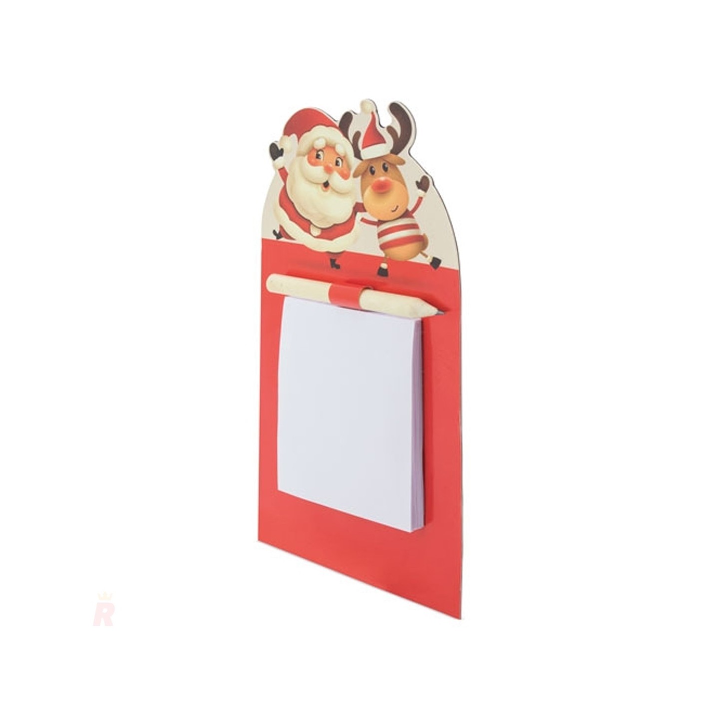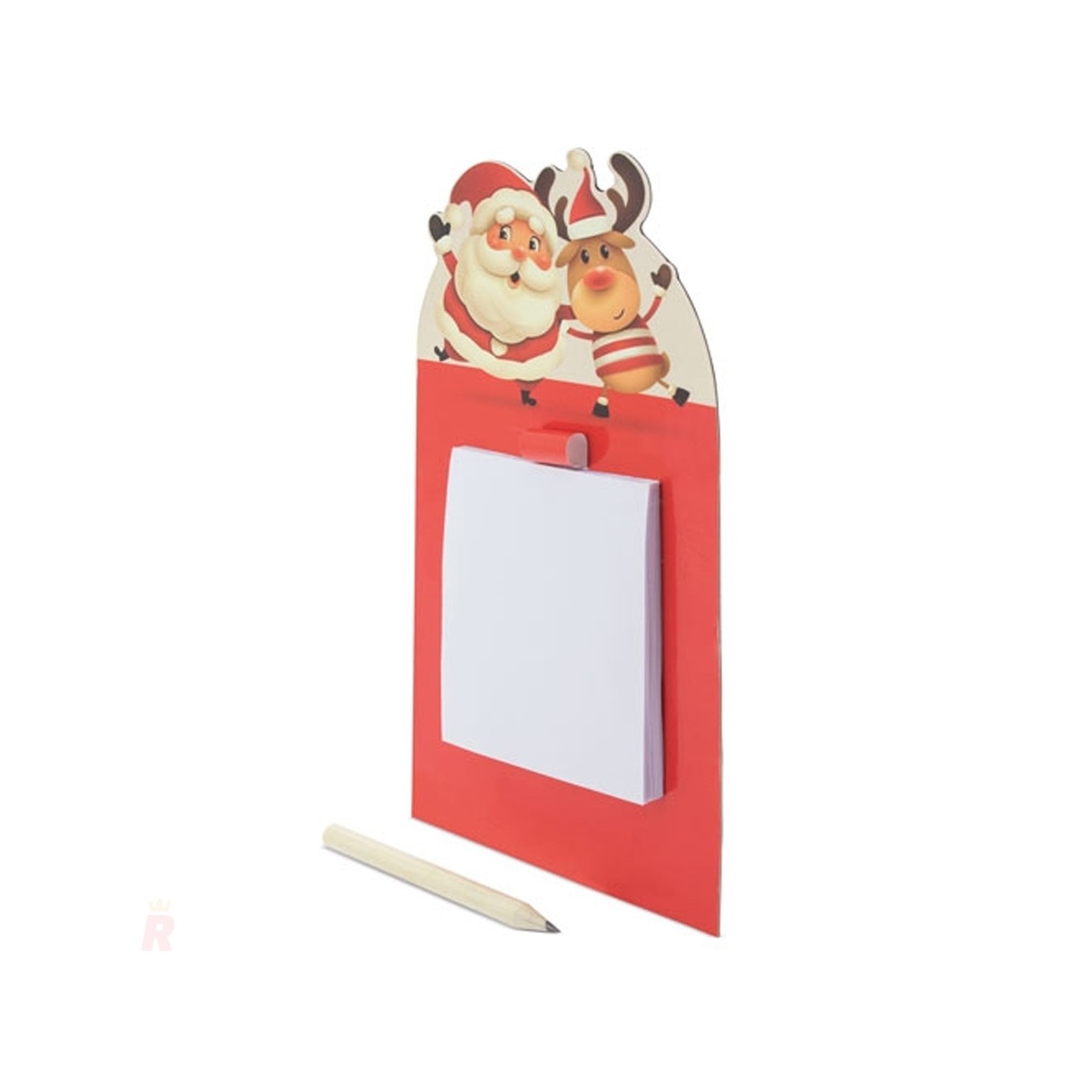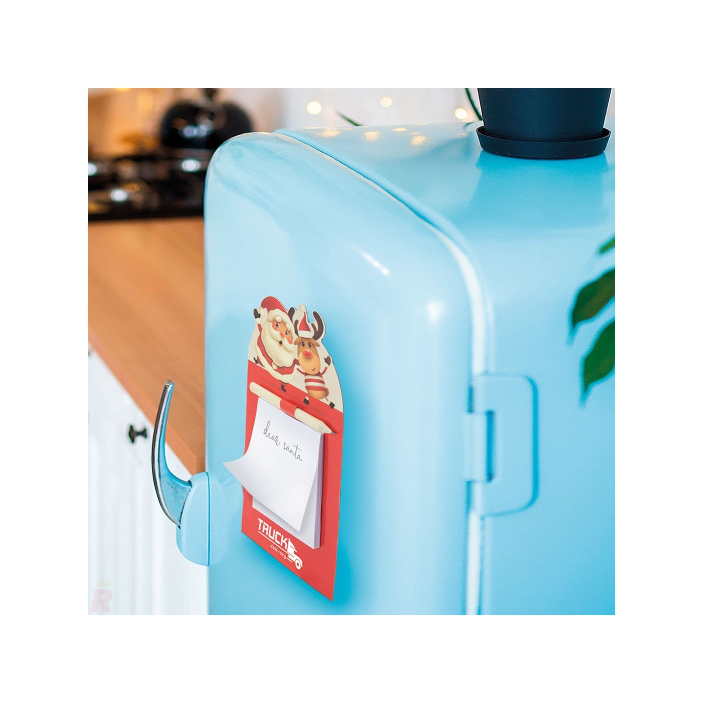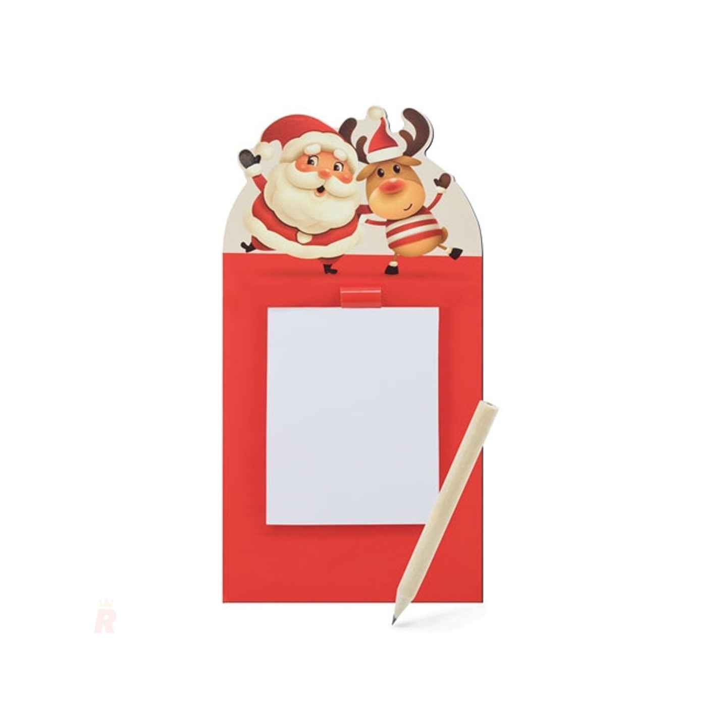 Celebra la Navidad con la libreta imantada SAMI, con un diseño festivo de Papá Noel y un reno. Incluye un bloc de 40 hojas y un lápiz. ¡Ideal para listas y notas!