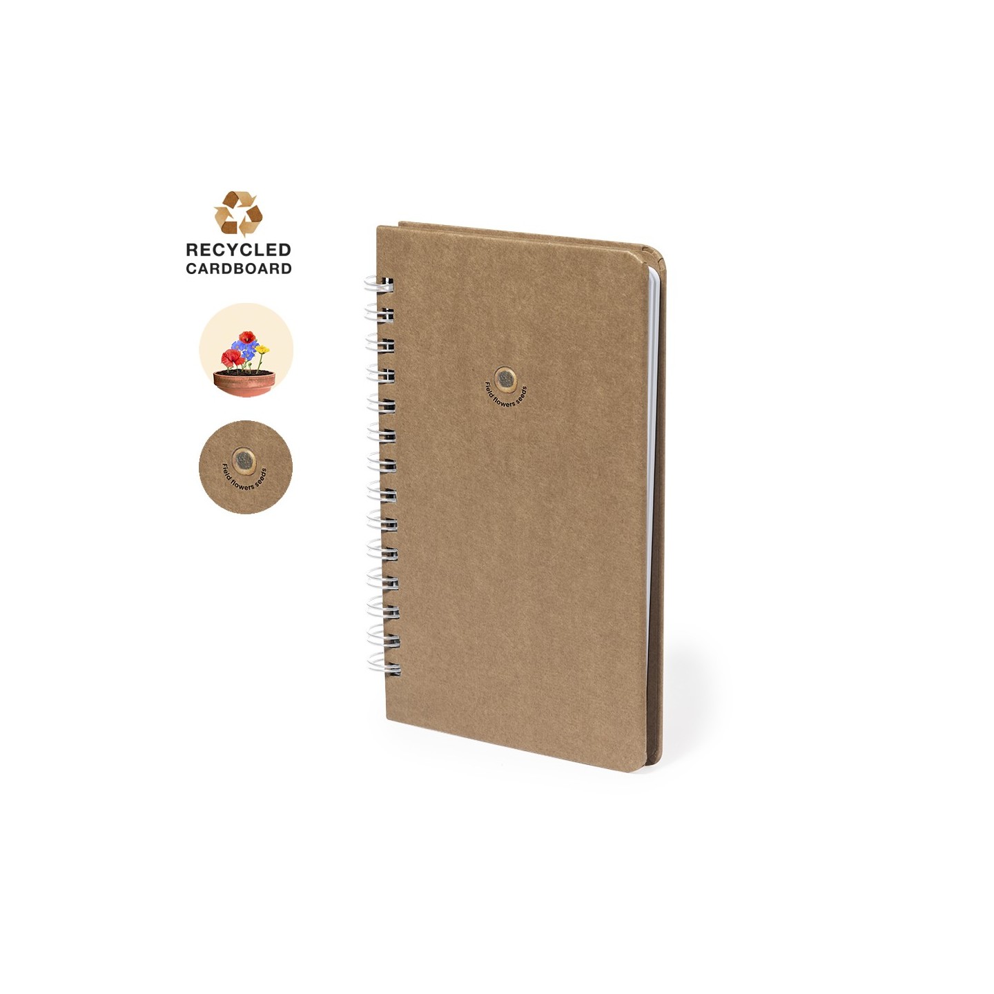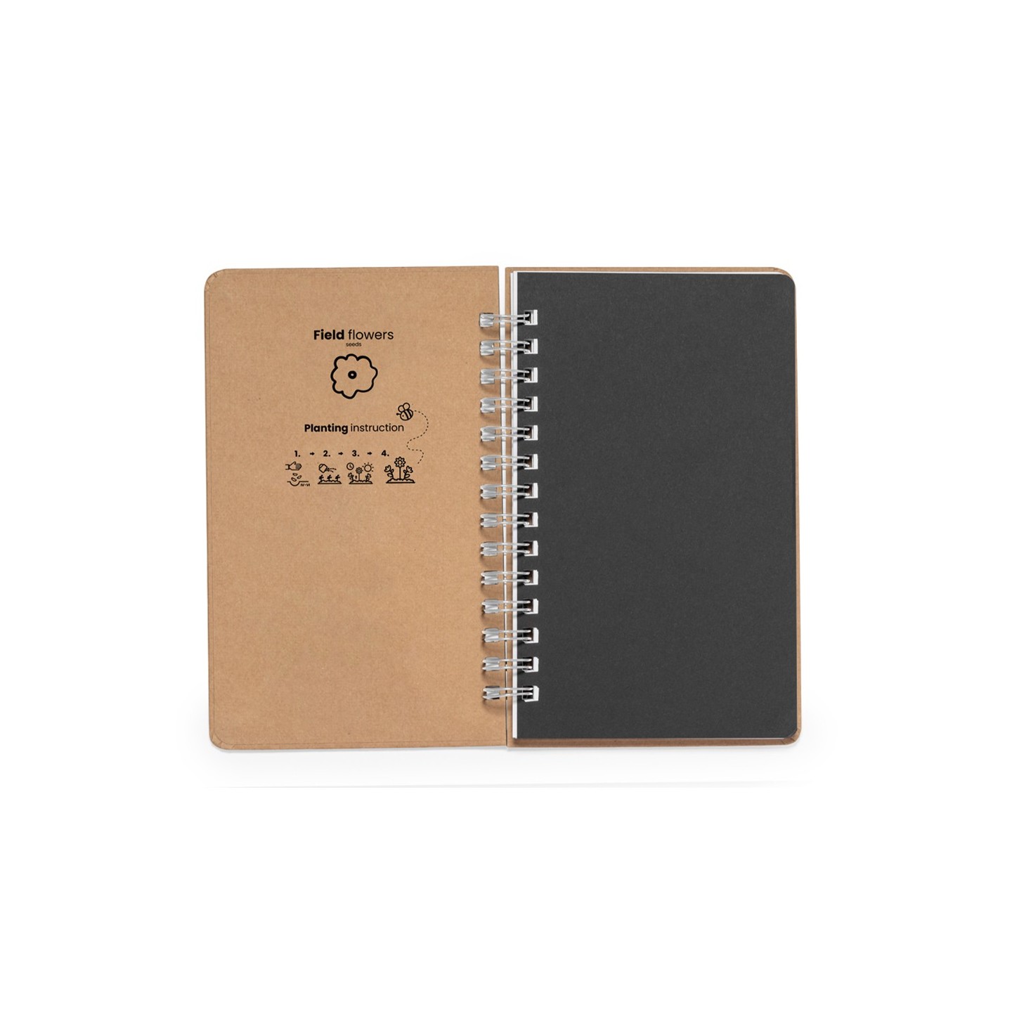 La Libreta Semillas Astrida tiene anillas, tapas rígidas de cartón reciclado, 80 hojas. Incluye cápsula de semillas. ¡Personalizable y eco-amigable!