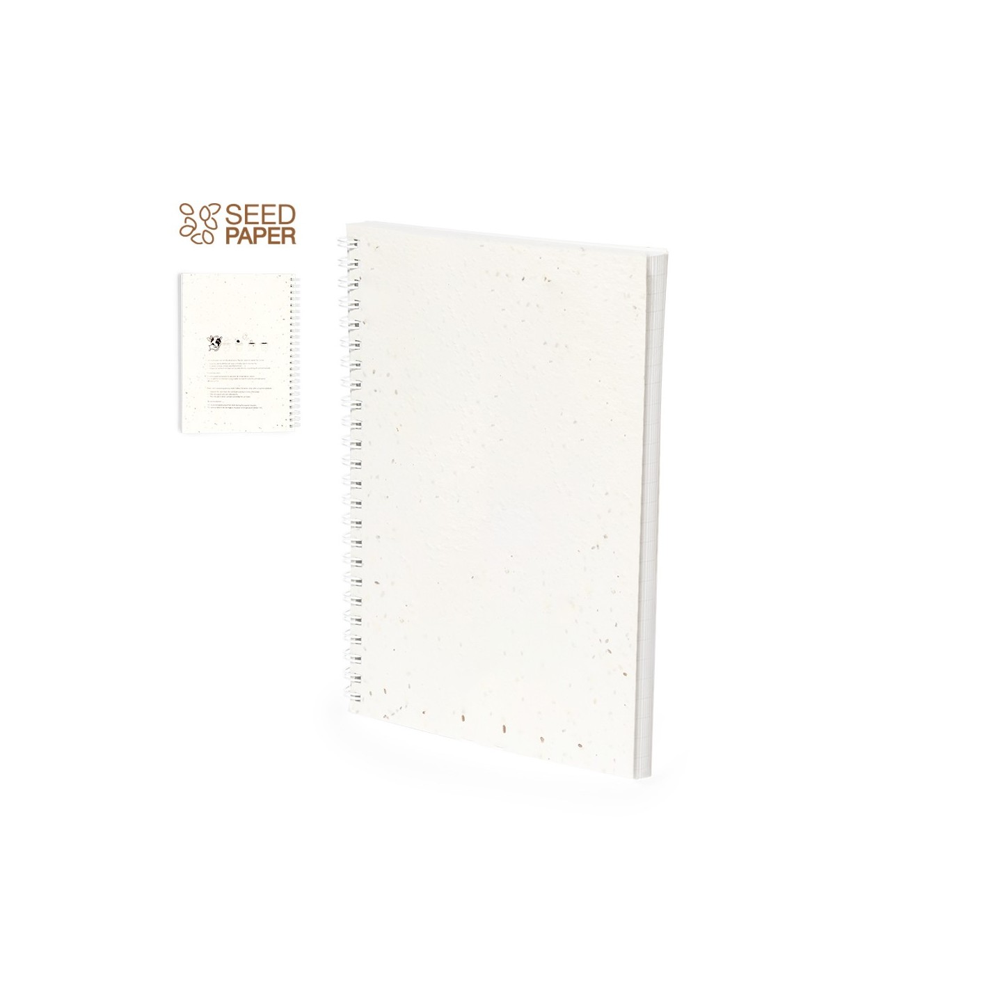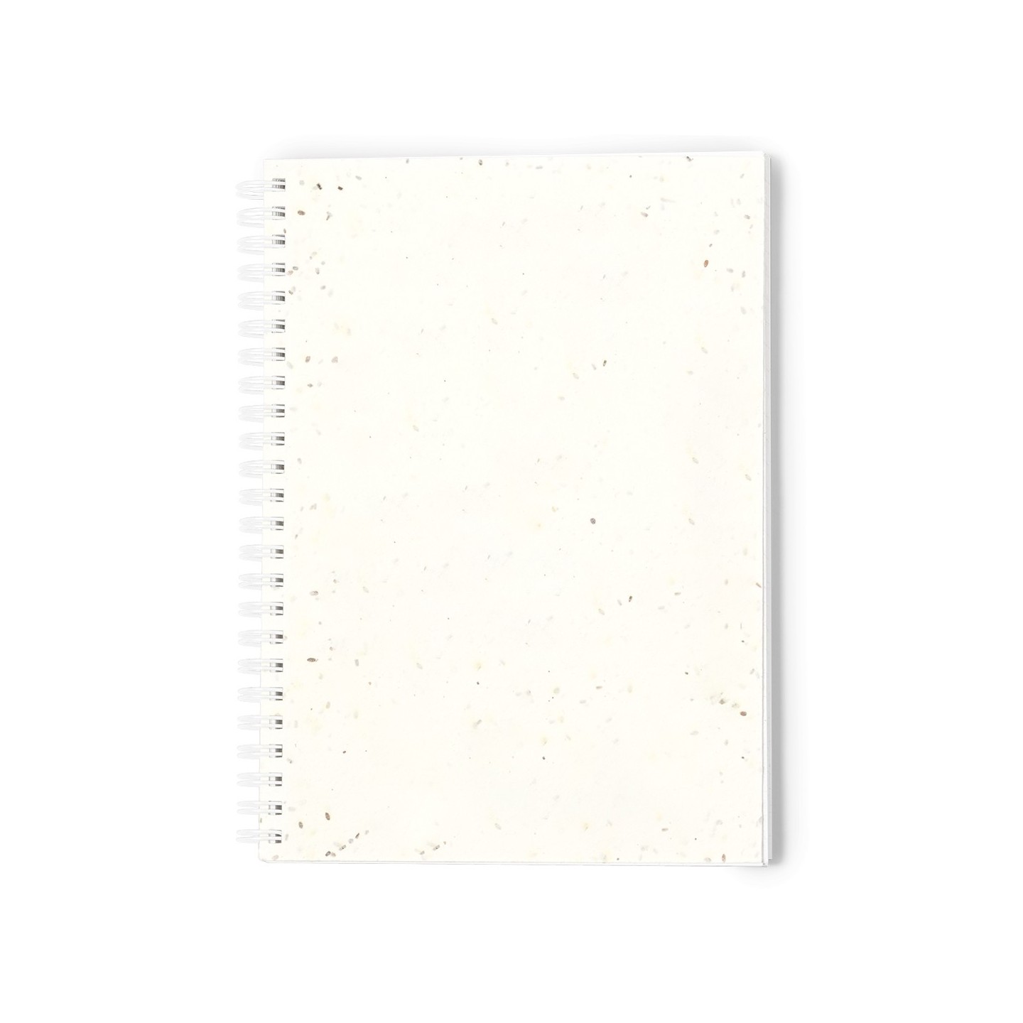 La Libreta Semillas Bitar es de anillas, tapas blandas de papel semilla, 80 hojas blancas. Personalizable y eco-amigable. ¡Siembra creatividad!