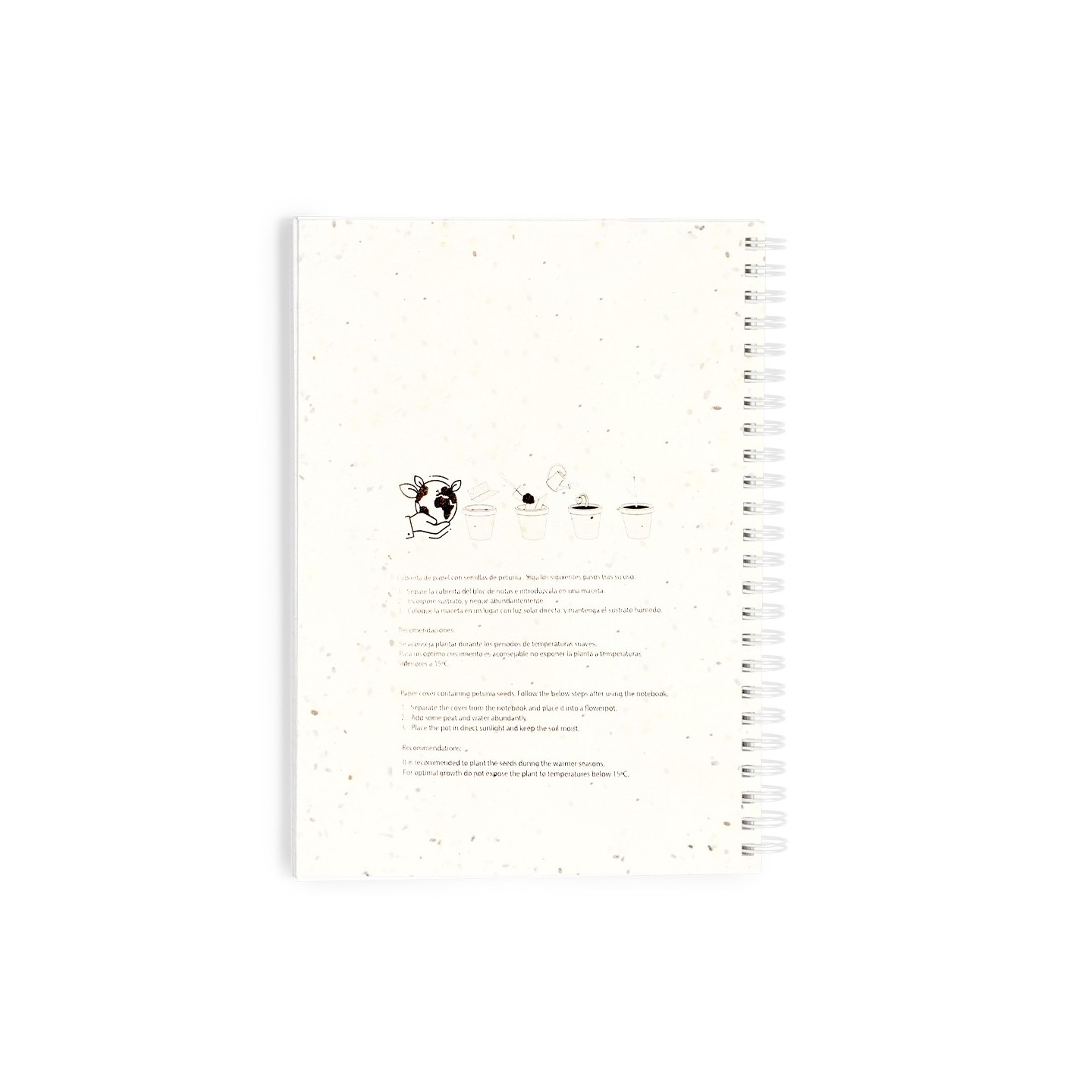 Con 80 hojas blancas lisas, esta libreta te ofrece espacio más que suficiente para tus notas, ideas y pensamientos. Además, las cubiertas de la libreta incluyen semillas de petunia, lo que significa que al final de su vida útil, en lugar de desecharlas, puedes plantarlas en la tierra y ver crecer hermosas flores. Las instrucciones de plantado en la cubierta trasera te guiarán en este proceso, convirtiendo esta libreta en un regalo verdaderamente especial y eco-amigable.